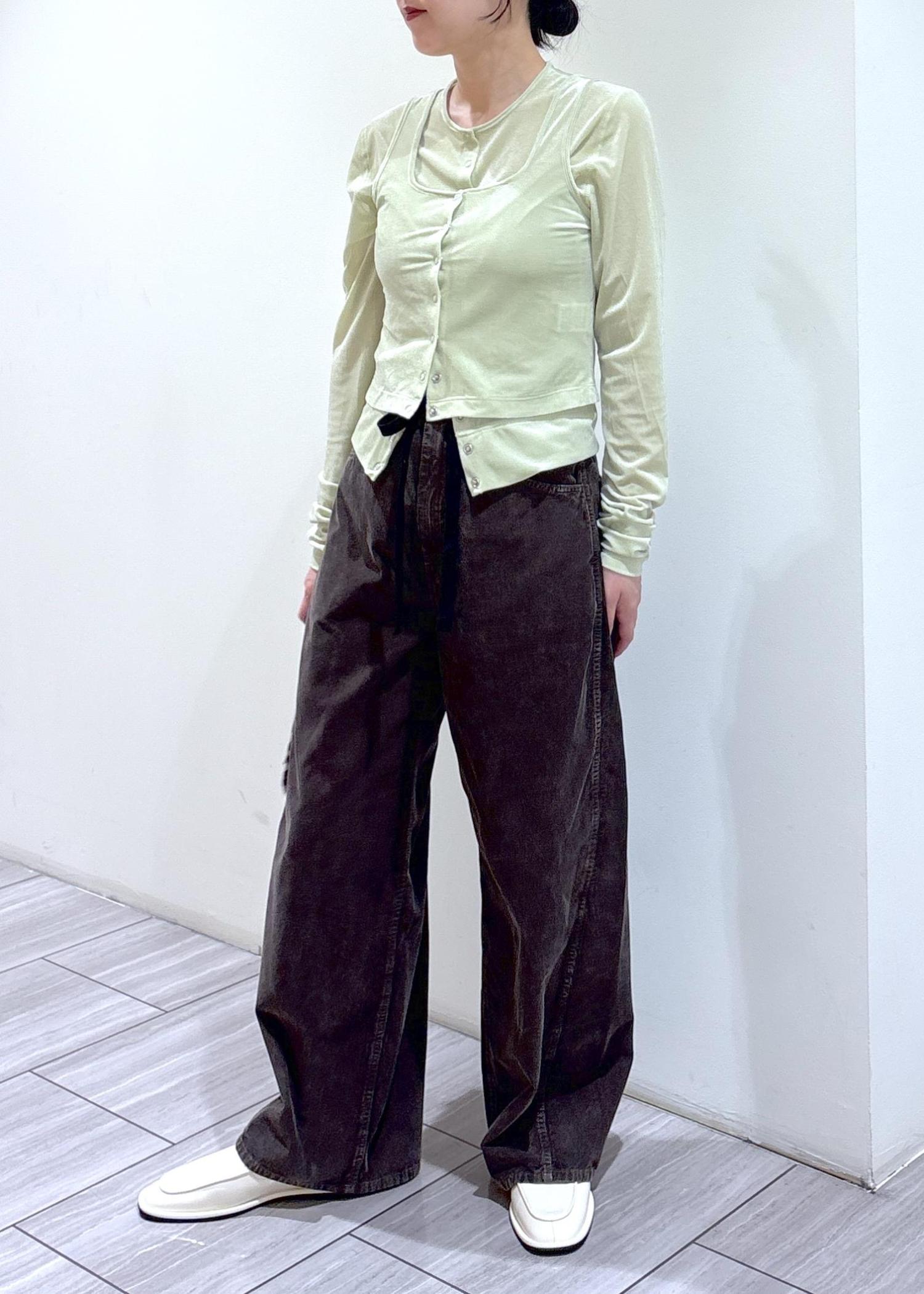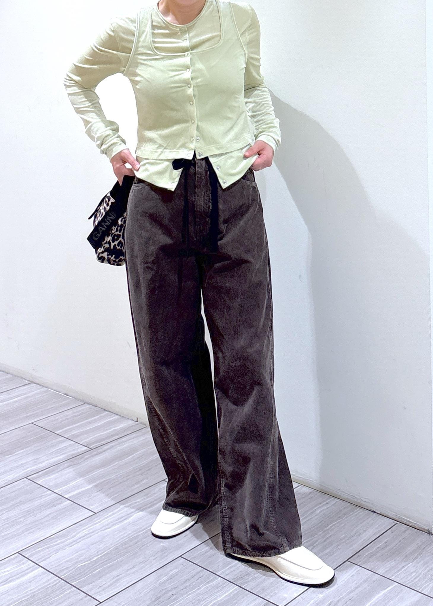 ADAM ET ROPÉ FEMME【新色追加】ガーメントダイコーデュロイパンツダークブラウン / 34¥19,800レビューウエストの紐をベルト代わりに使えば、ハイウエスト位置でも履けます!