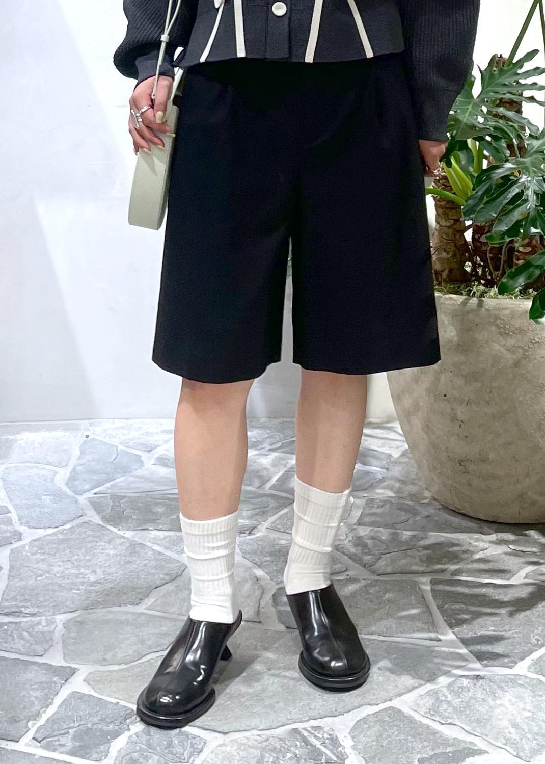 ハーフパンツでフェミニン感を抑えたスタイリングを組んでみました。