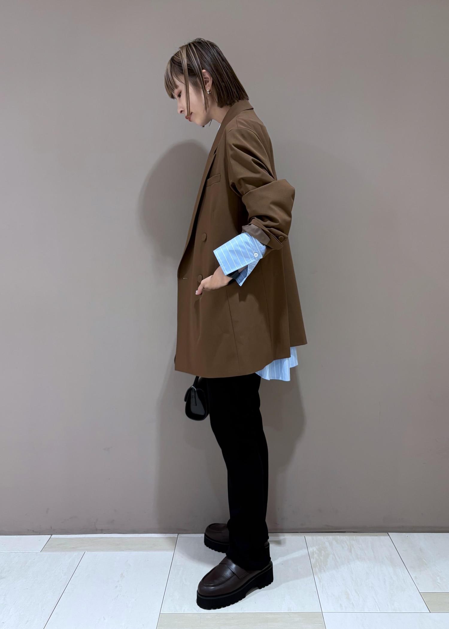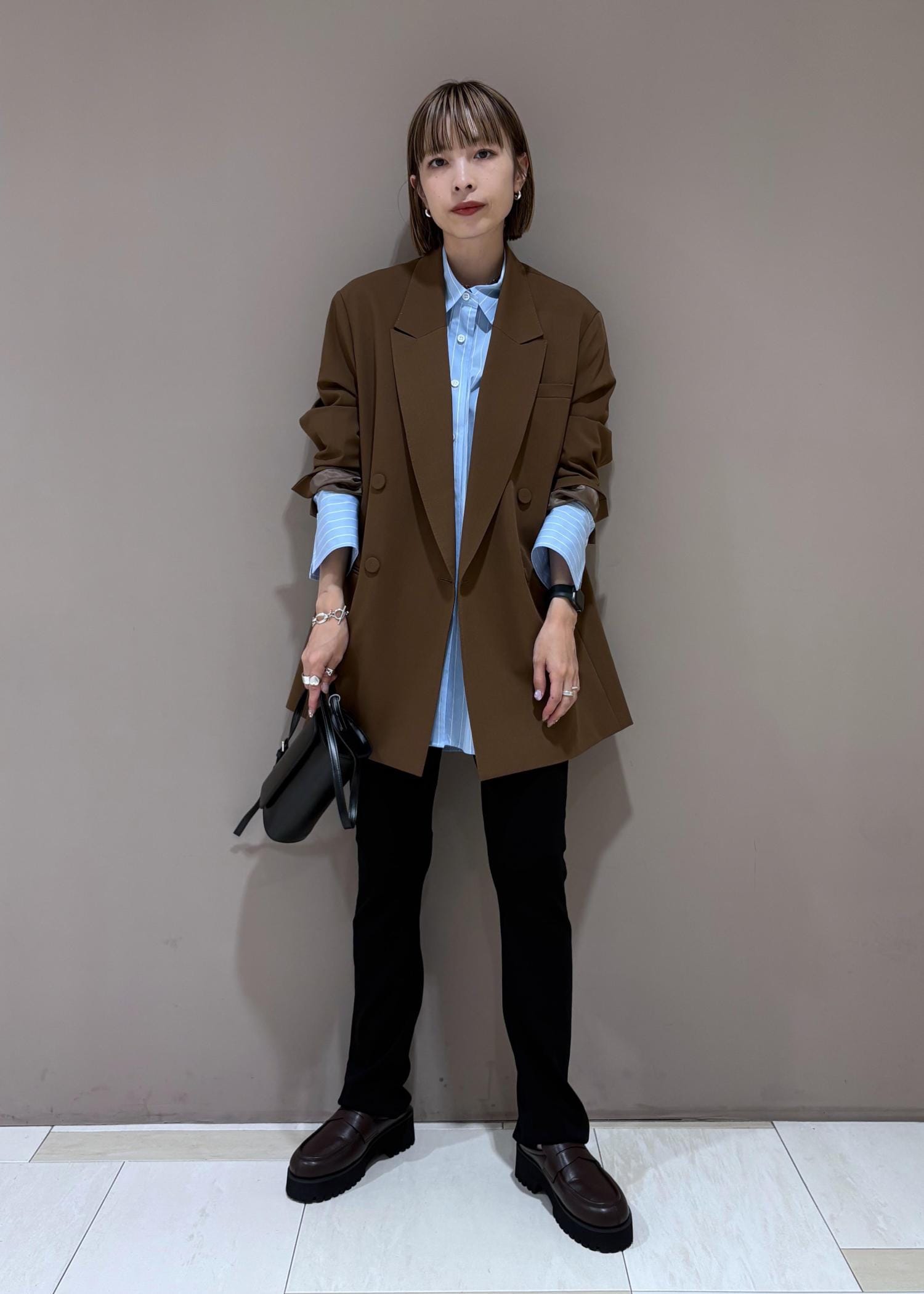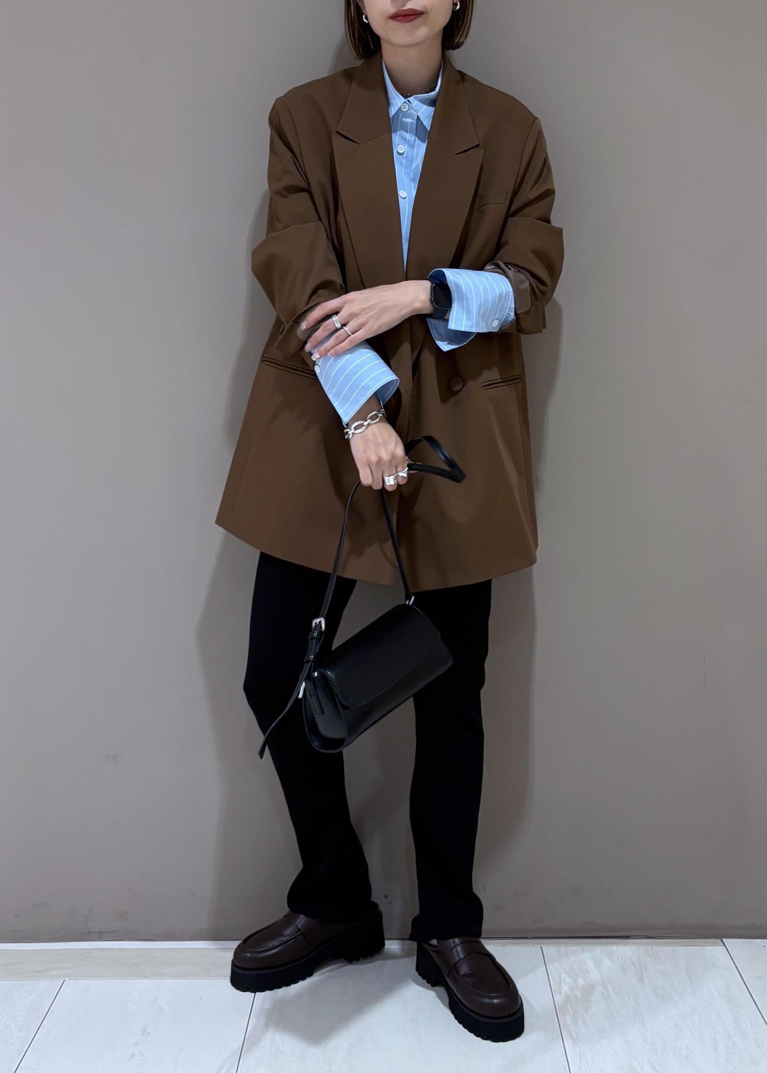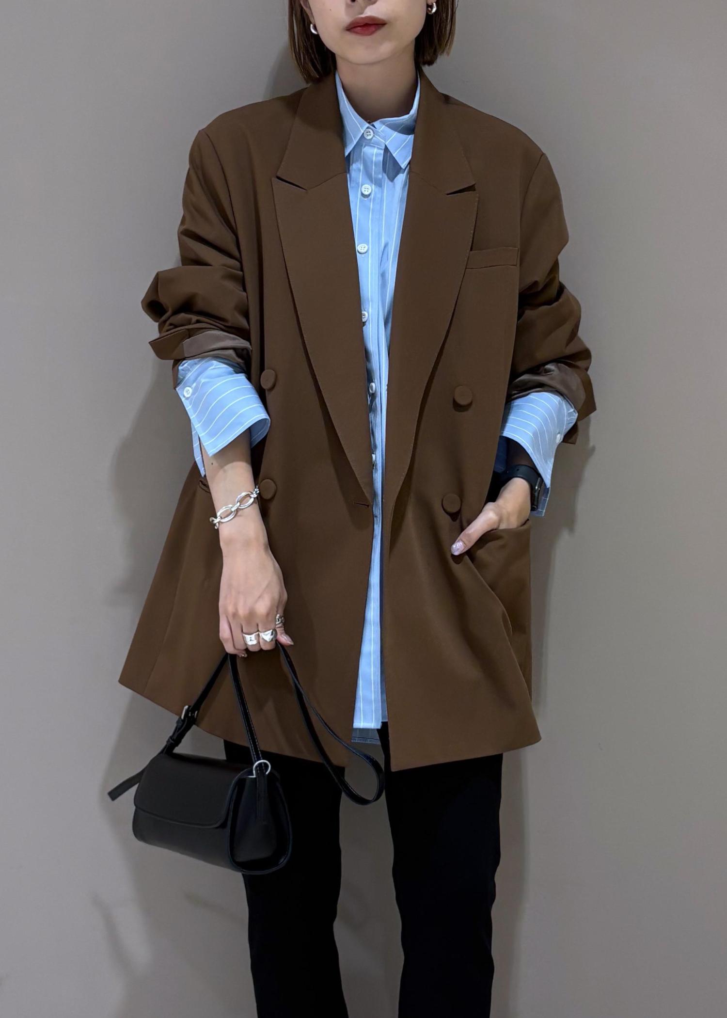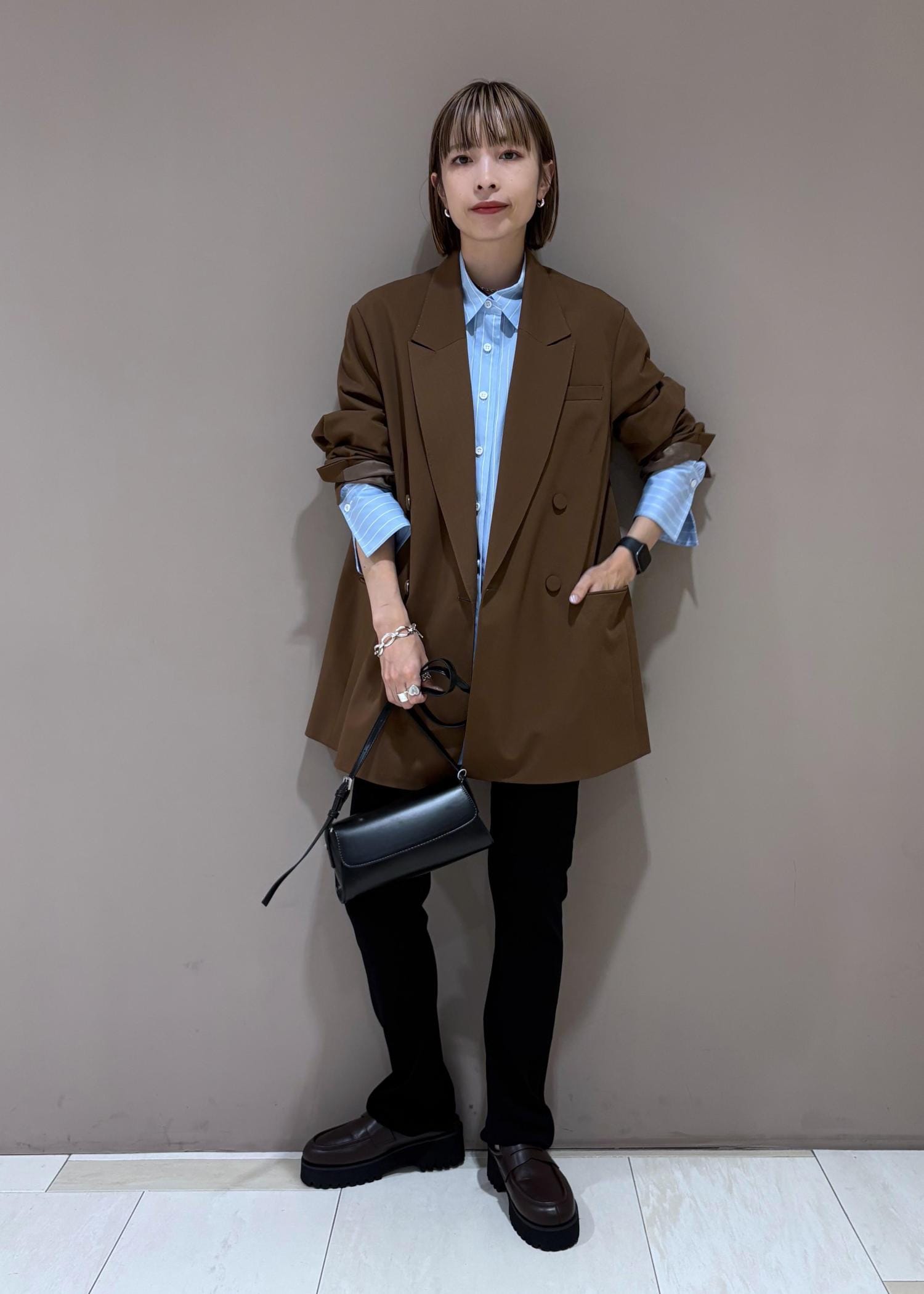 ADAM ET ROPÉ FEMME【サステナブル】ダブルブレストジャケットブラウン系 / 38¥29,700レビュー162cm、38サイズ着用。
