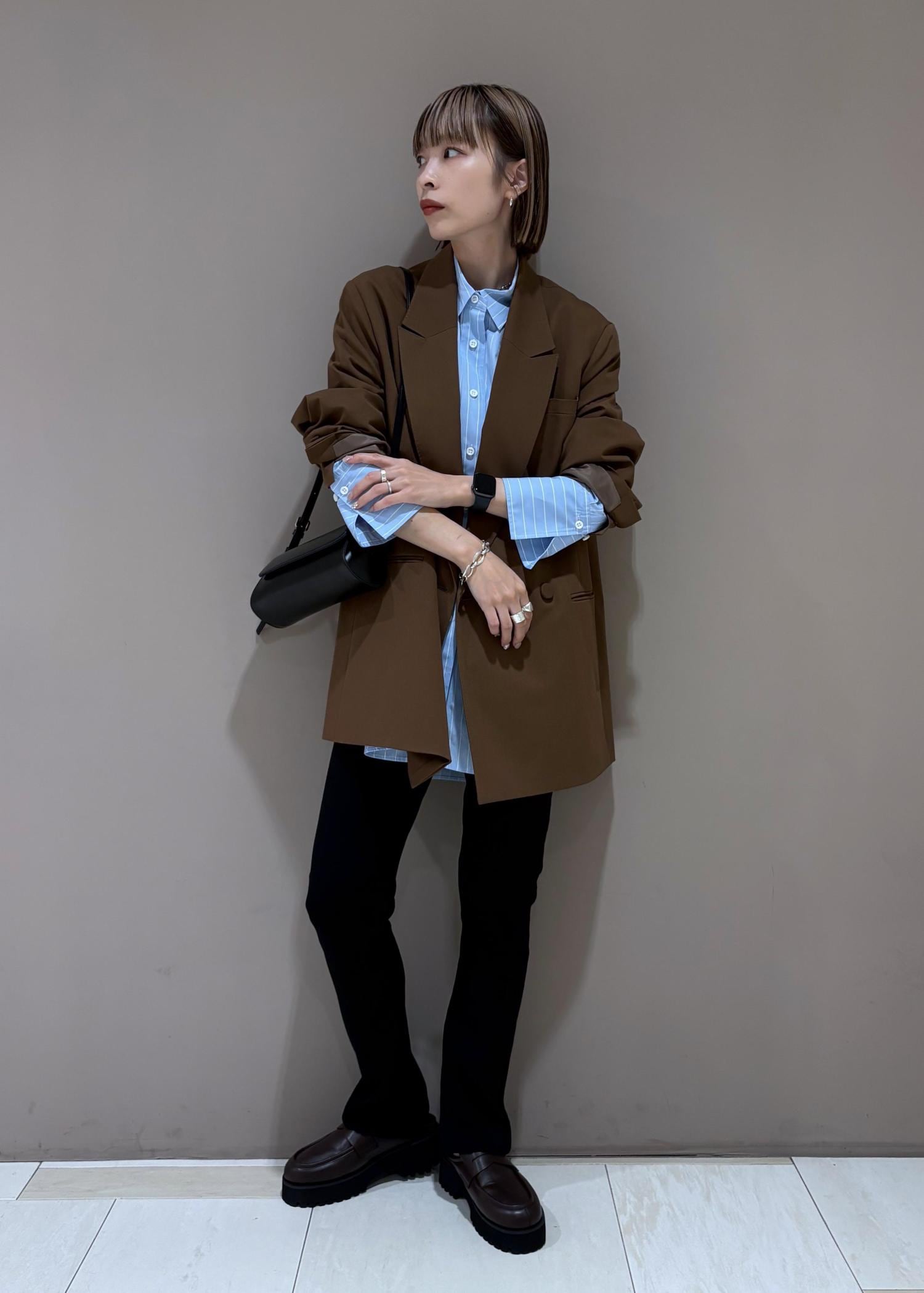 袖周りにも少しゆとりがあるので、中ものに厚手のニットも着込めるサイズ感◎