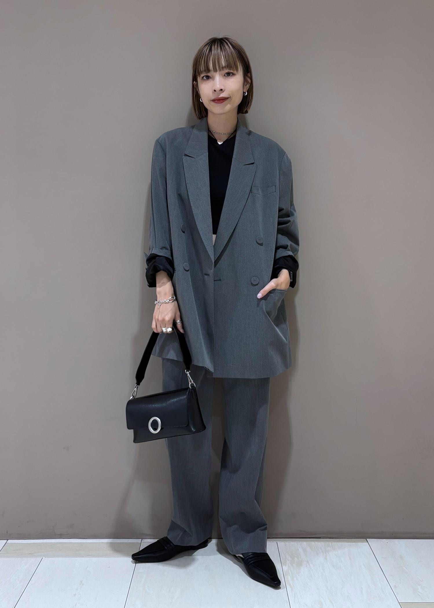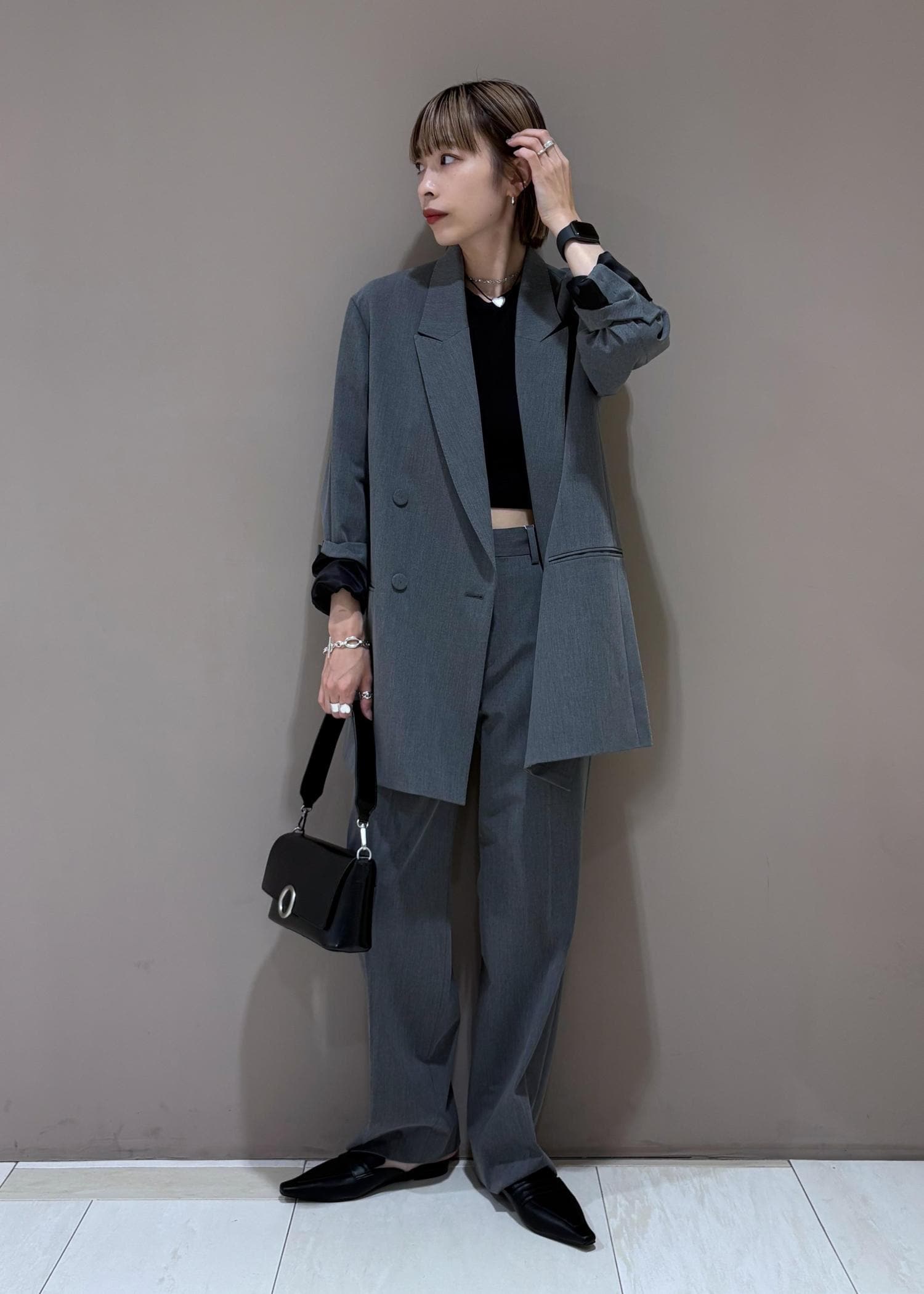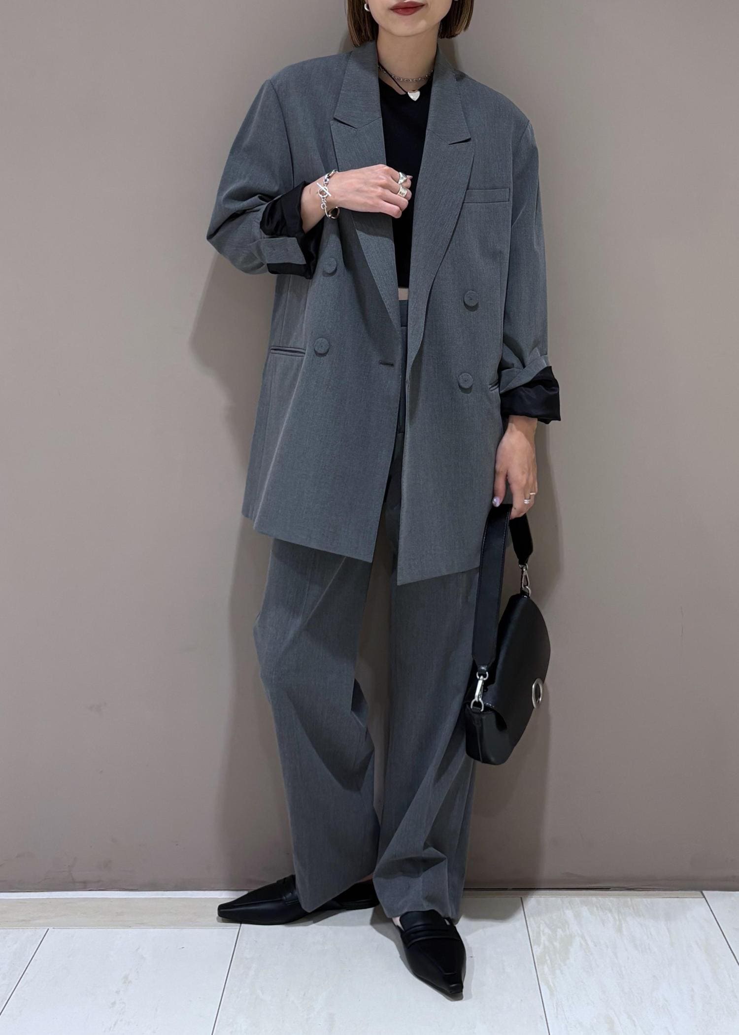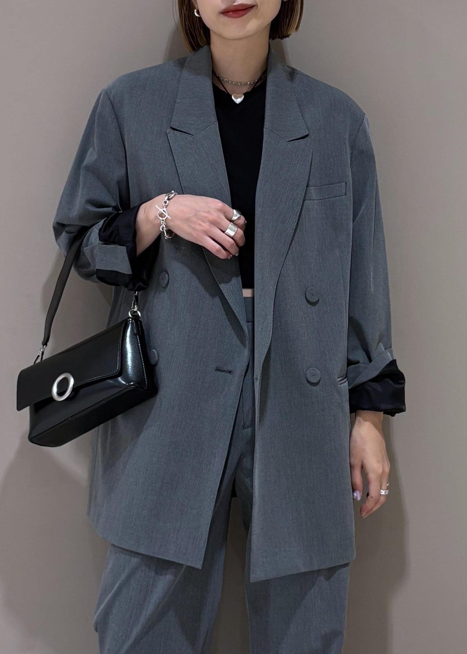 ADAM ET ROPÉ FEMME【サステナブル】ダブルブレストジャケットグレー / 38¥29,700レビュー162cm、38サイズ着用。