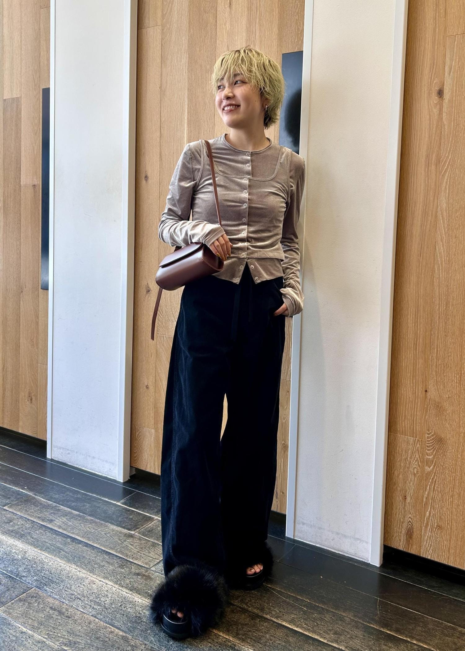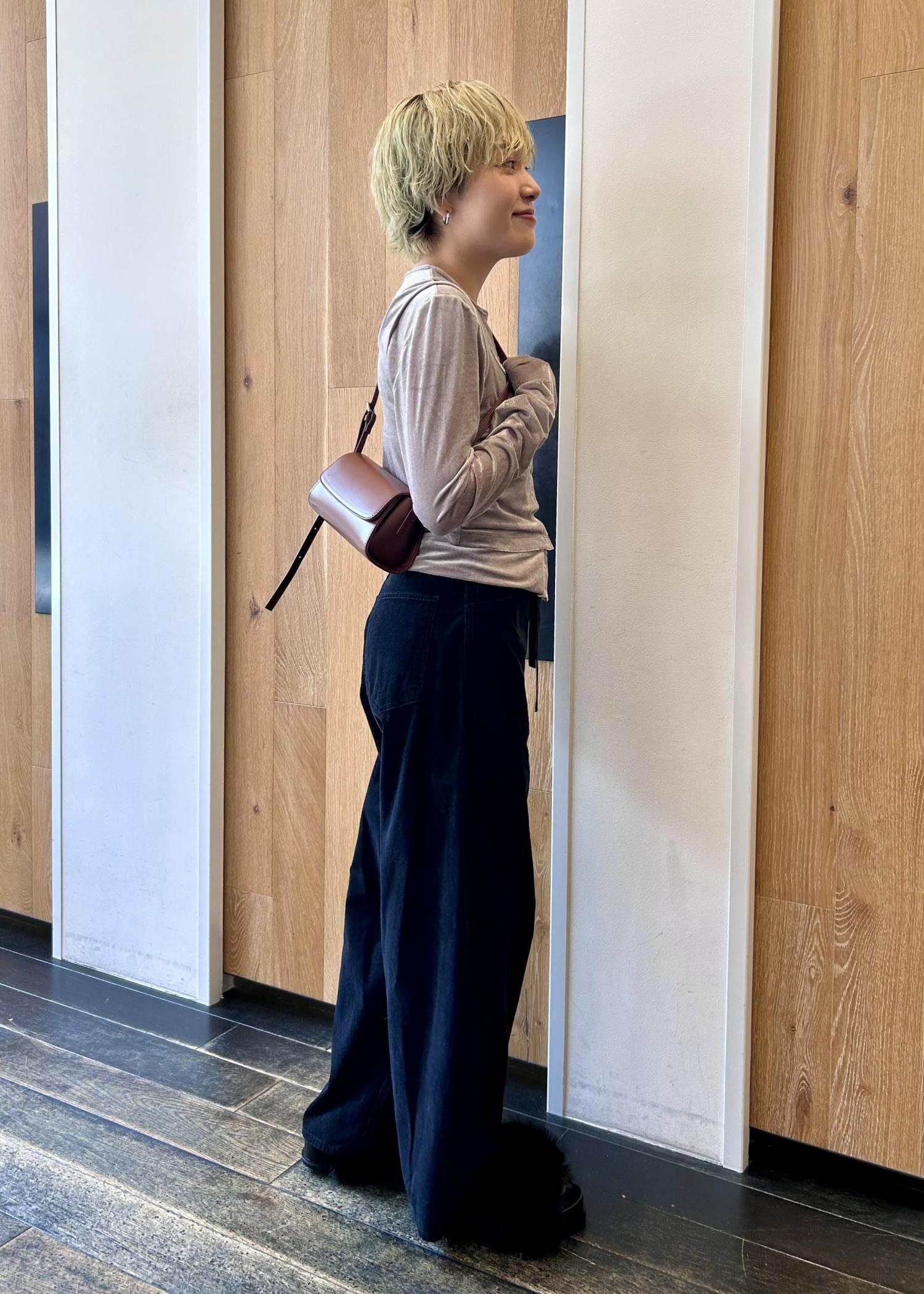 アウターでボリュームが出てくるこれからのスタイリングにヘルシーに馴染んでくれます。