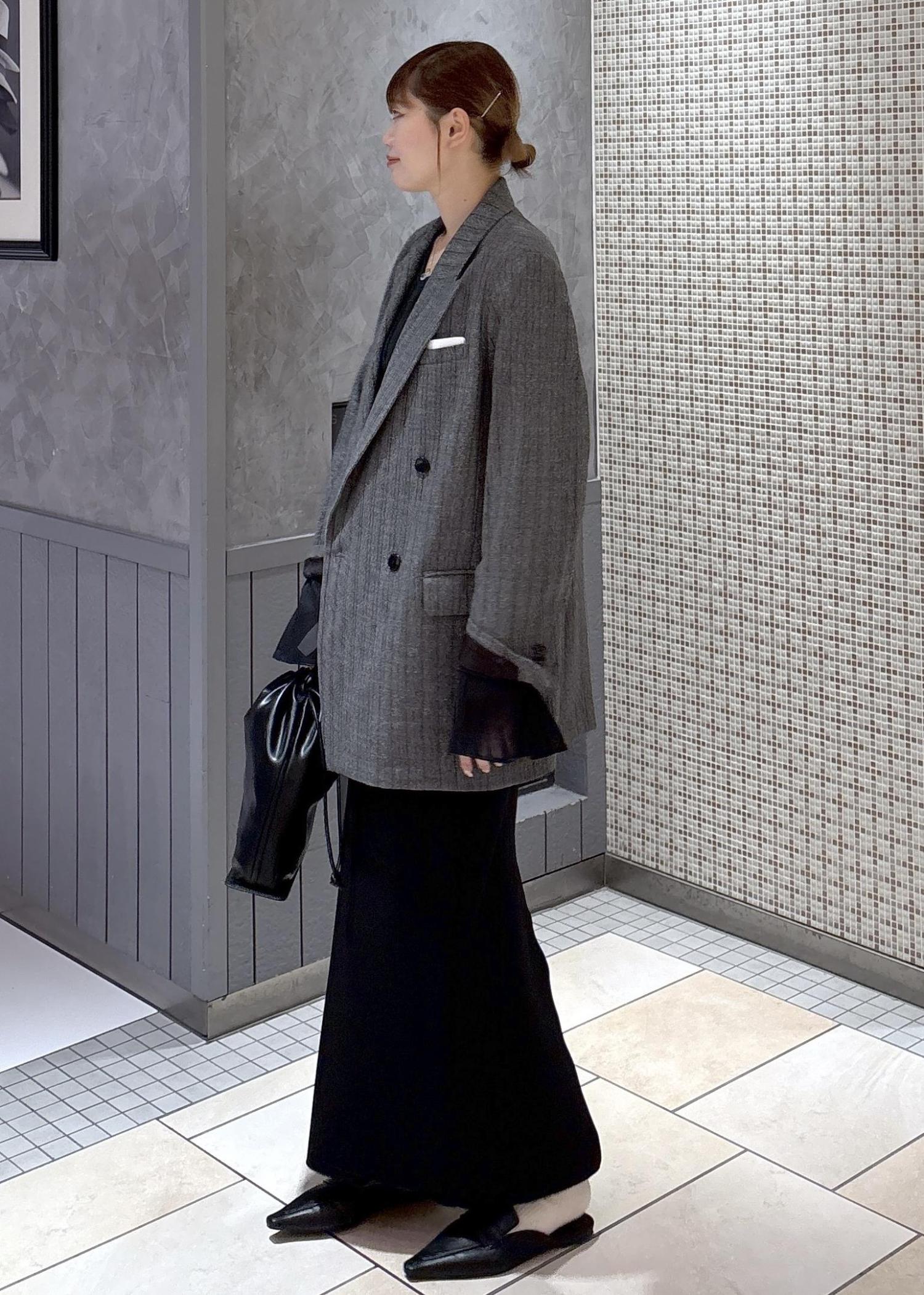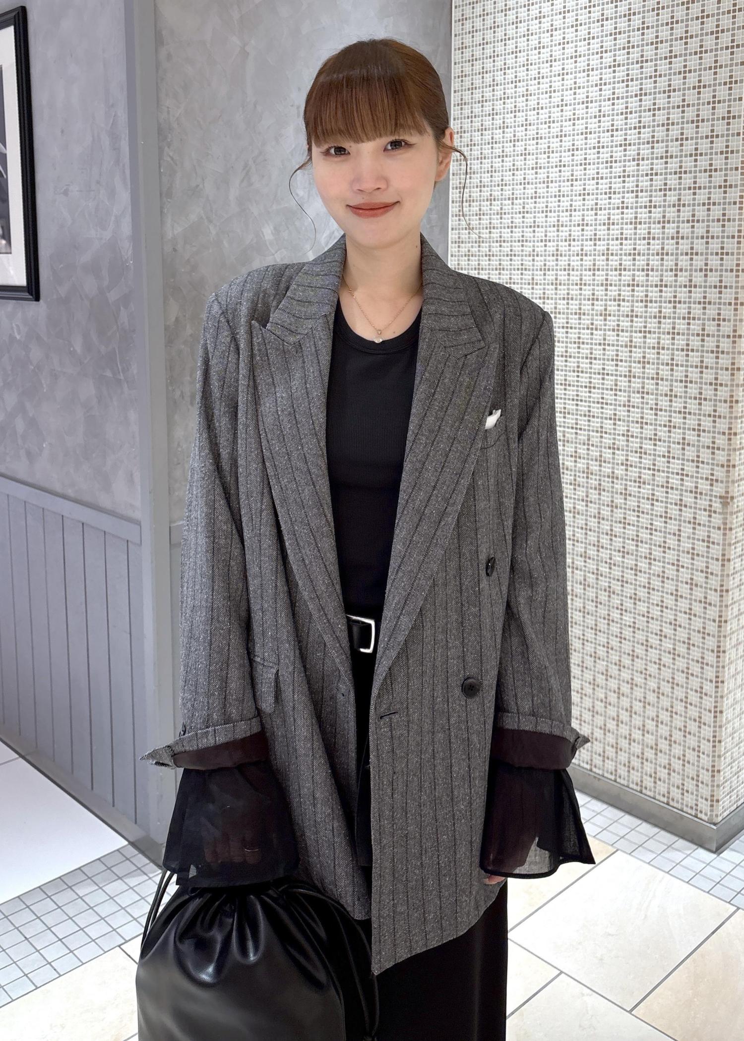 マニッシュな雰囲気で型落ちではなくジャケットらしいかっこいい感じで着れるのがポイントです!