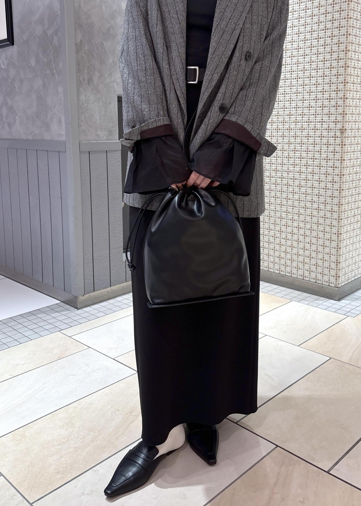 ADAM ET ROPÉ FEMME【サステナブル】アーティフシャルレザー巾着バッグブラック / F¥13,860レビュー巾着型で形可愛いのとマチがある為容量入ります