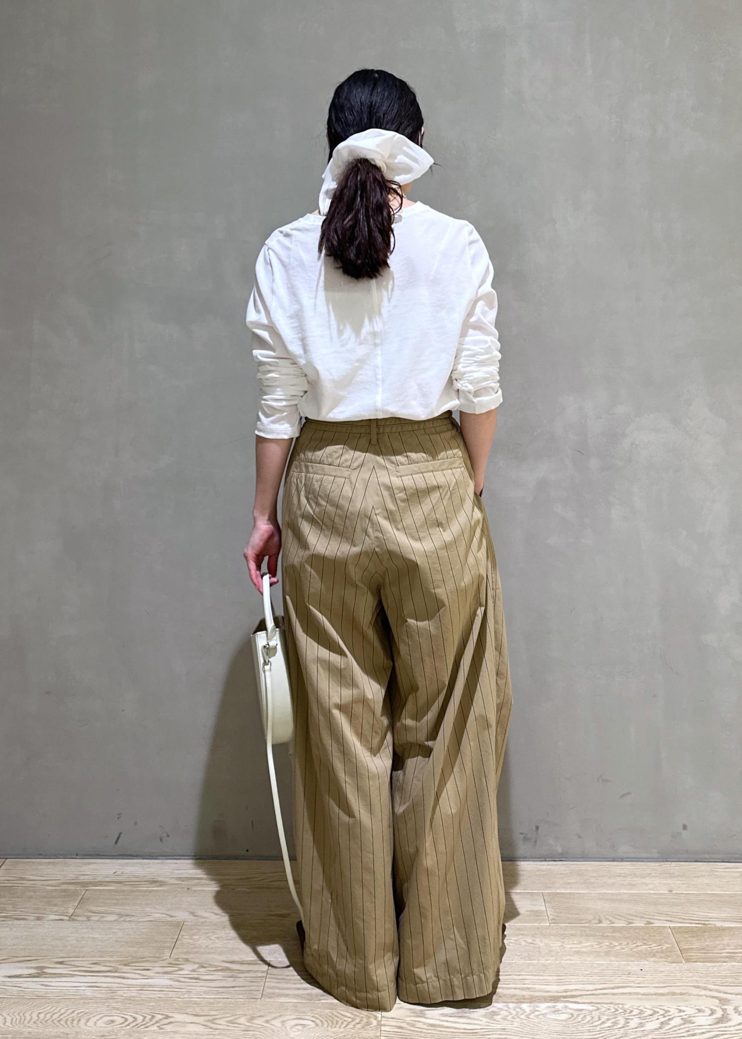 今回は新作のストライプパンツを