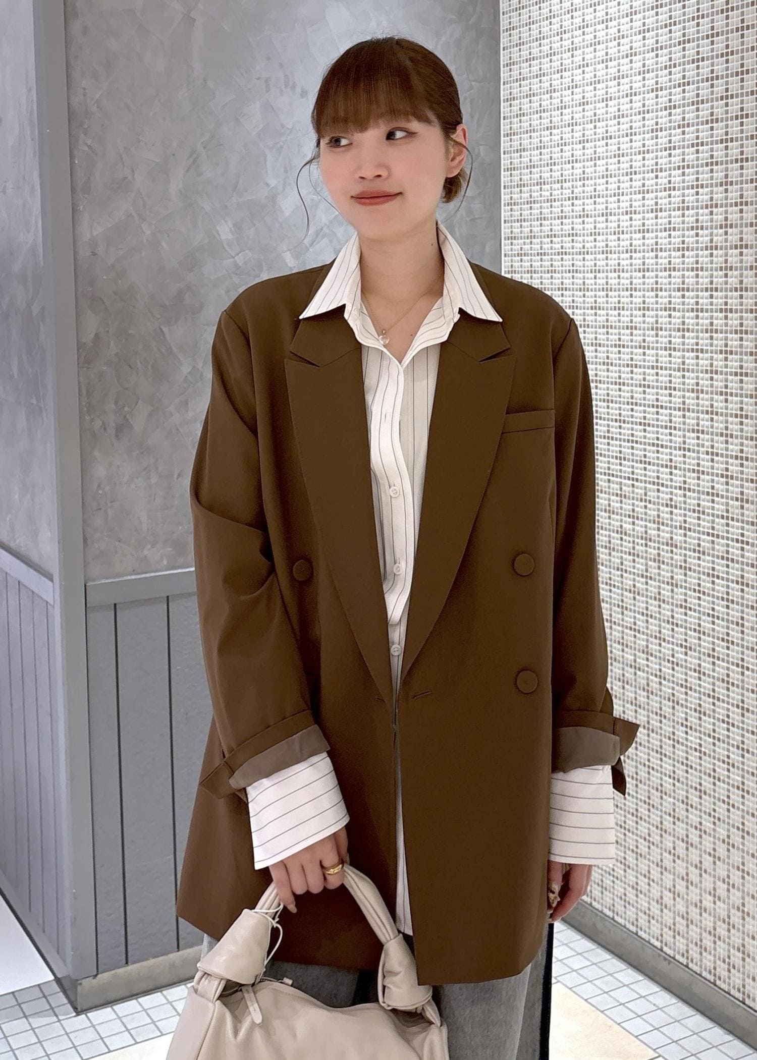 ADAM ET ROPÉ FEMME【サステナブル】ダブルブレストジャケットブラウン系 / 38¥29,700レビューさり気ないステッチが可愛いです!やや肩落ち