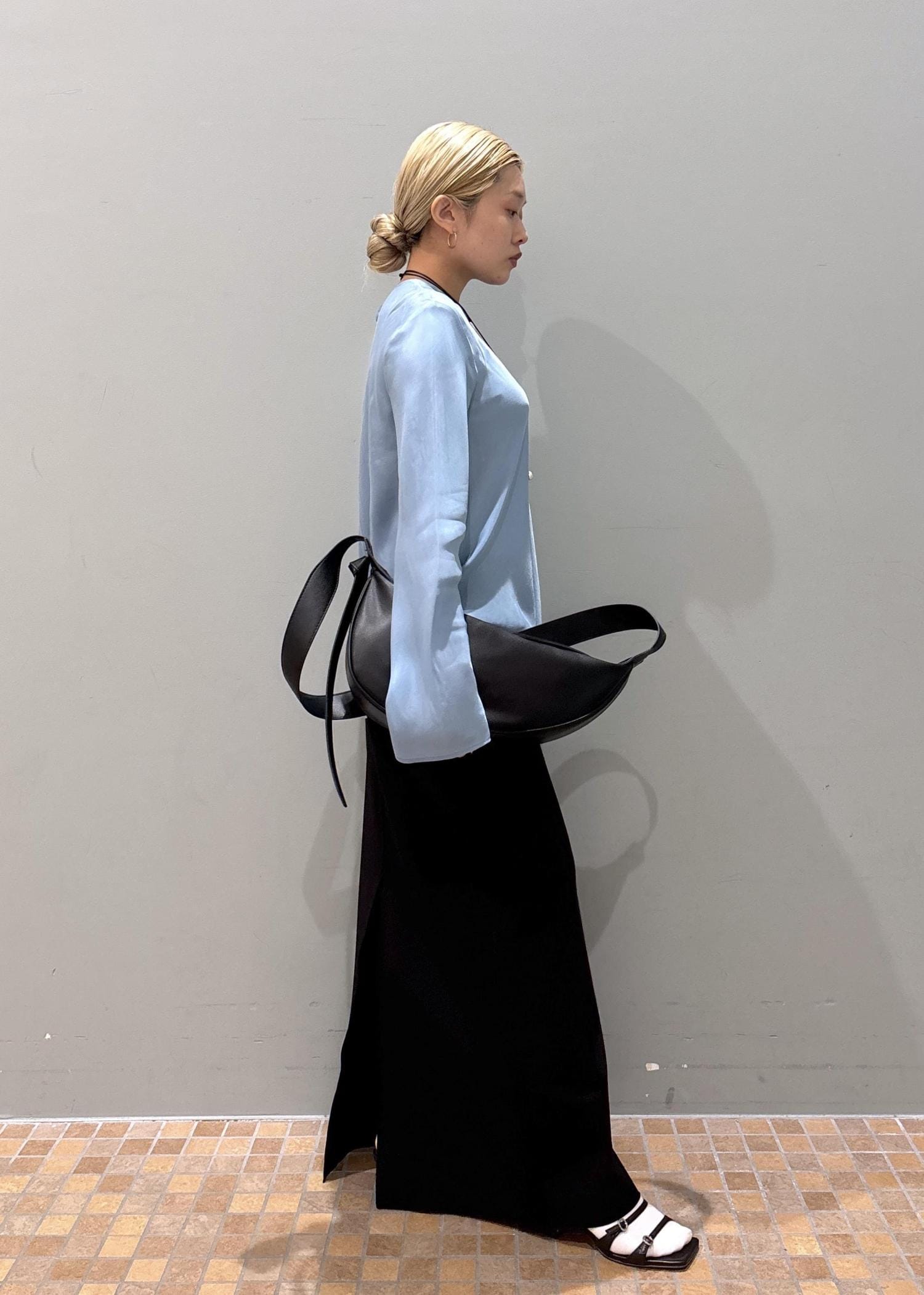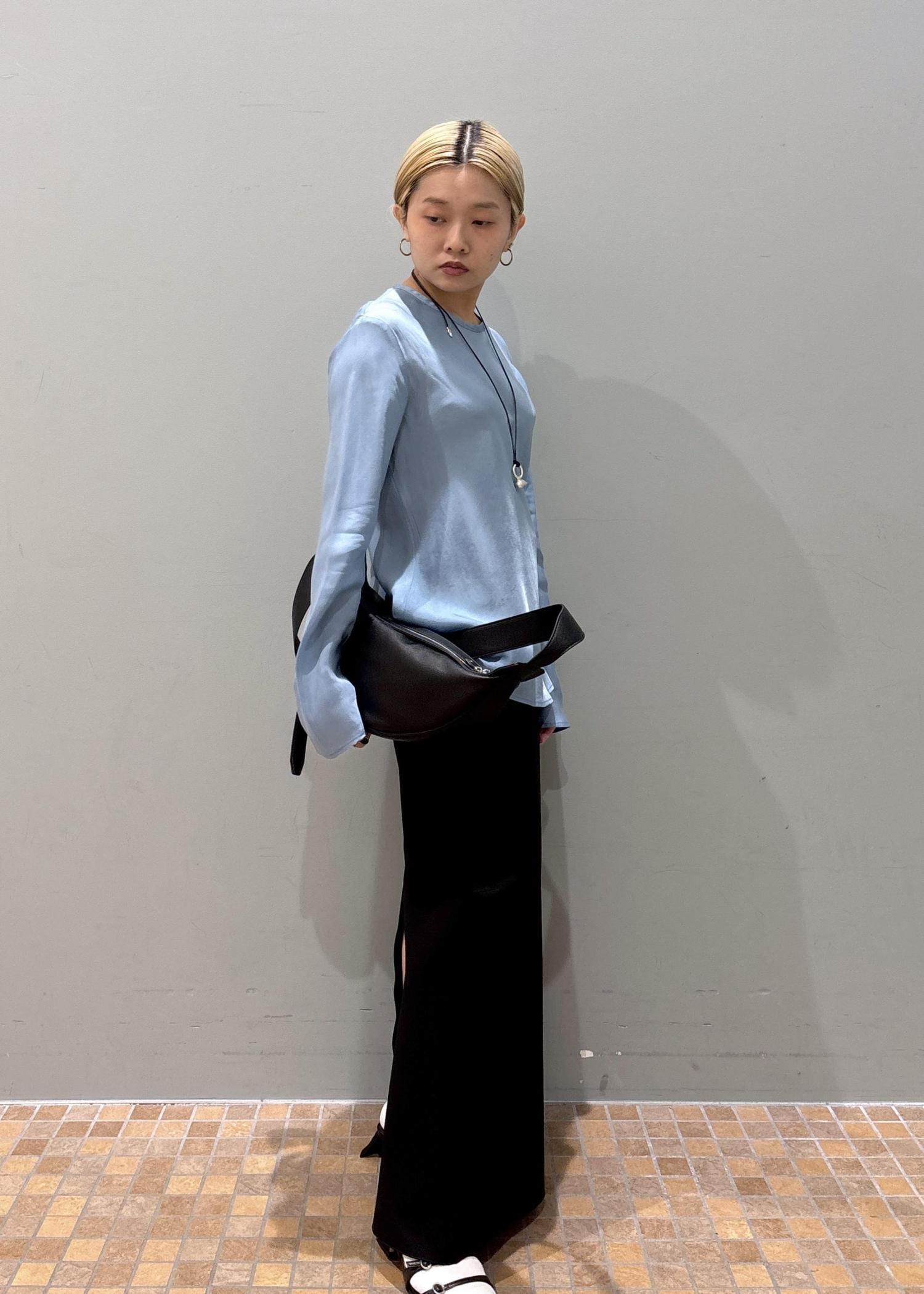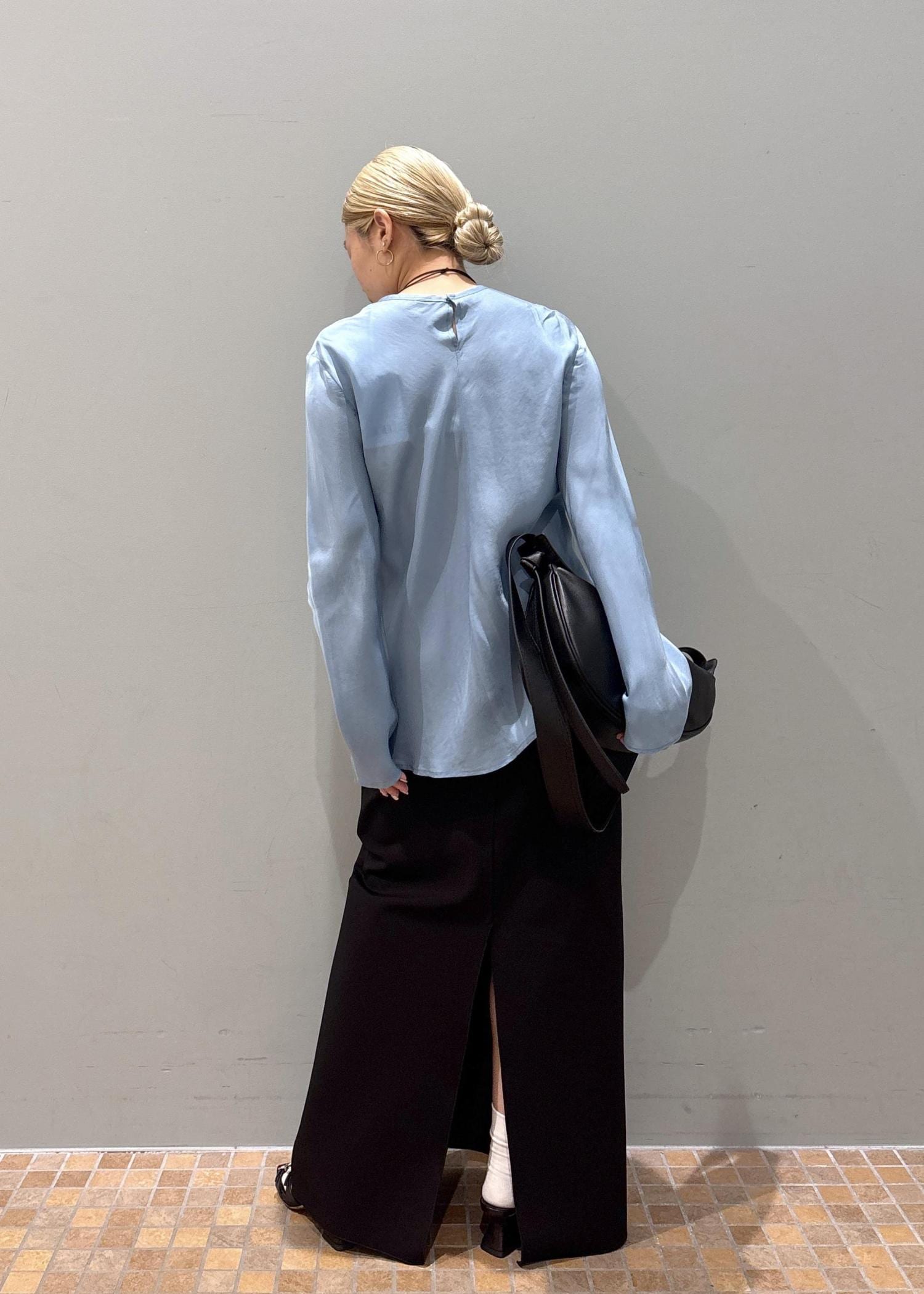 EMOELLE【EMOELLE】ウォッシャブルキュプラブラウスサックス / F¥19,800レビュードロップショルダーではないので、小柄な方・フリーサイズが合わない方にも合いやすいサイズ感です。ドレープが綺麗なとろみ素材で、Tシャツとブラウスのいいとこ取りを叶えてくれます。