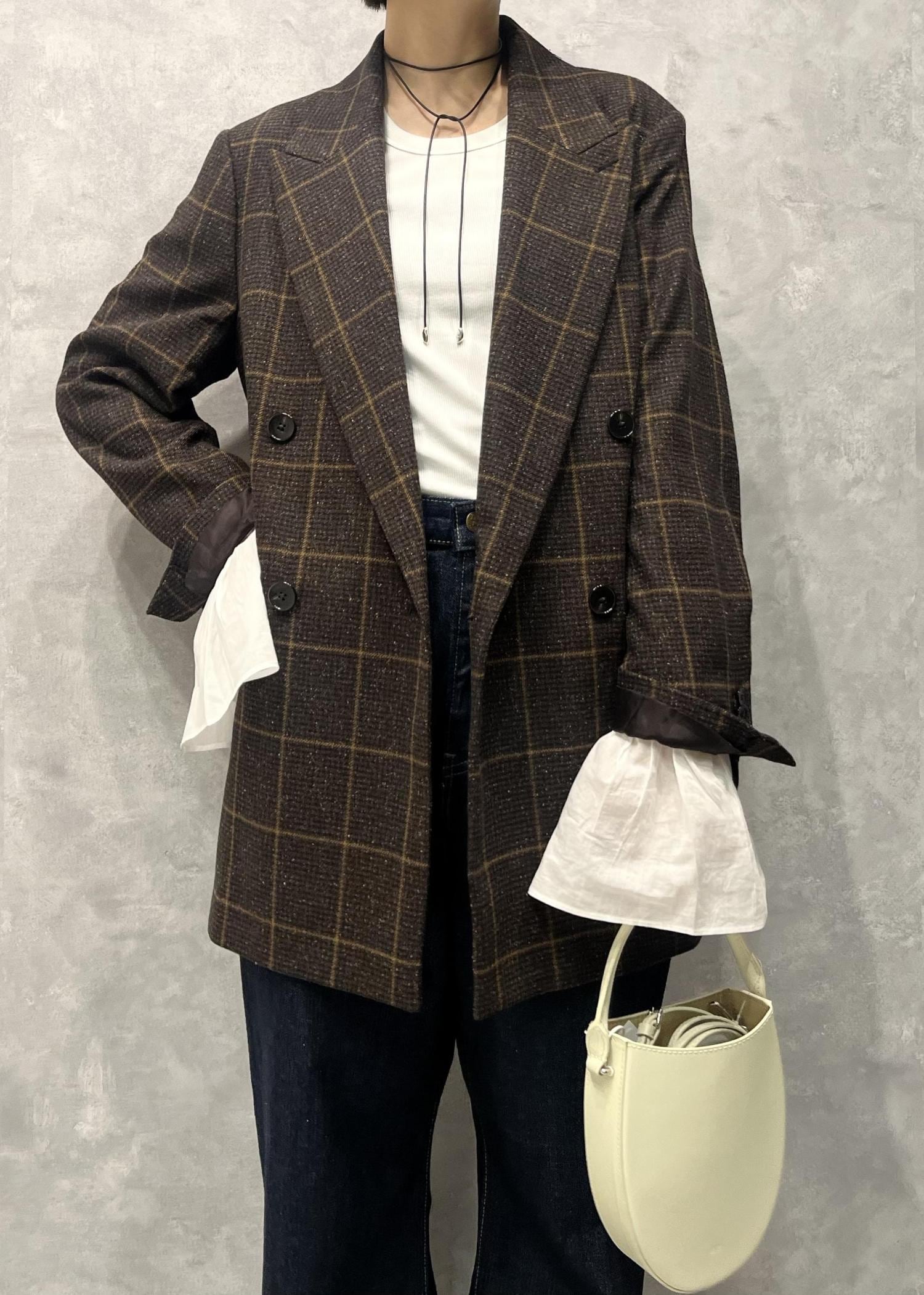 ADAM ET ROPÉ FEMMEダブルブレストツイード&チェックジャケットブラウン / 36¥40,700レビュー身長162cmで36サイズ着用です。