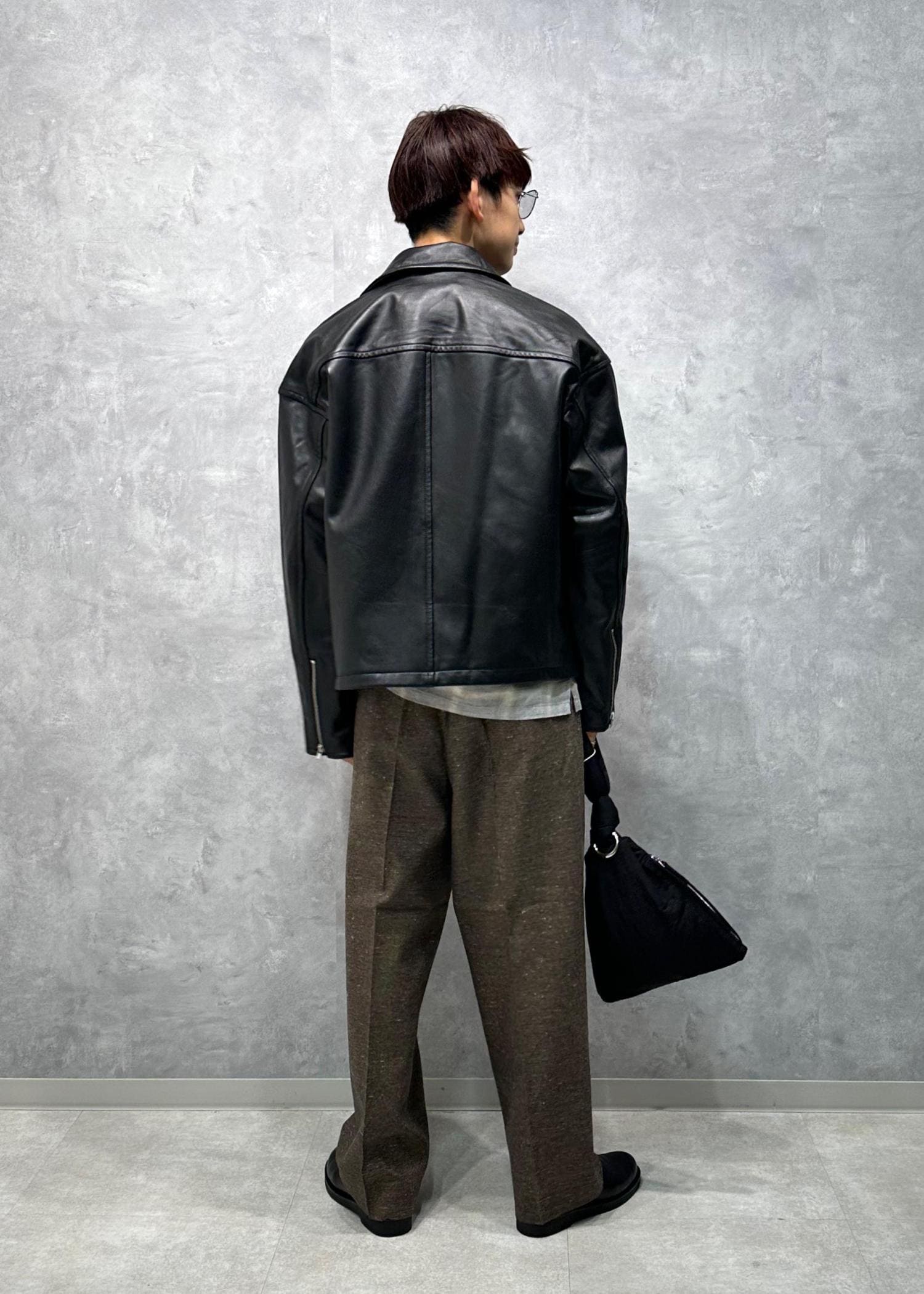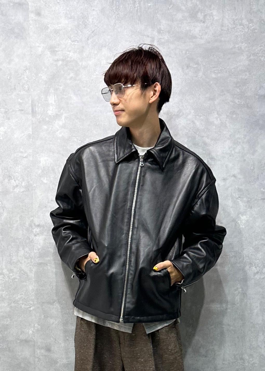 ニュージーランド産ラムレザーを使用したレザージャケット。今っぽい大きいサイズ感です。滑らかで硬すぎないので新品の状態でも着やすいかと。経年変化も楽しめるので、年齢を重ねていってもずっと気に入って着用していただけたら嬉しいです。