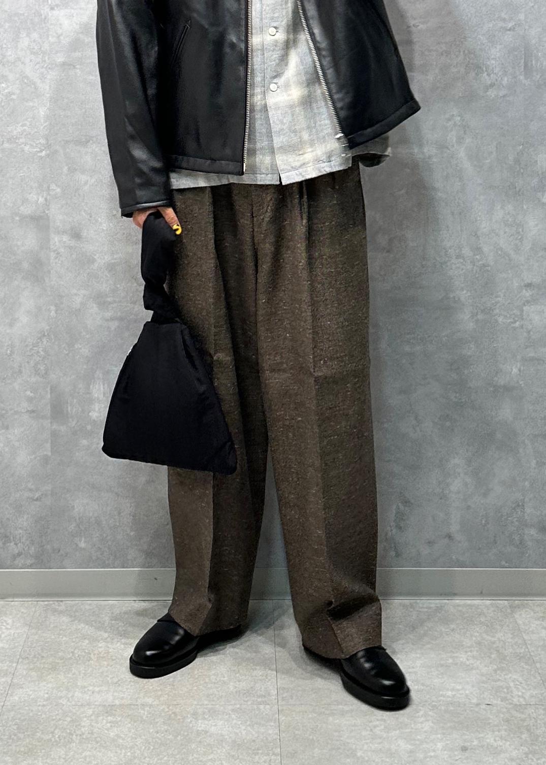 かなり大きめのサイズ感で、丈も長めです。エレガントな雰囲気で、とてもキレイなシルエットです。キレイにもカジュアルにも馴染む、汎用性、合わせやすさにも優れたワイドスラックスです。