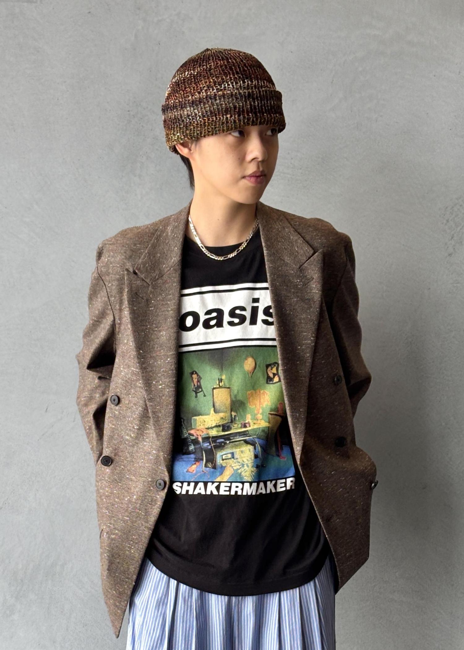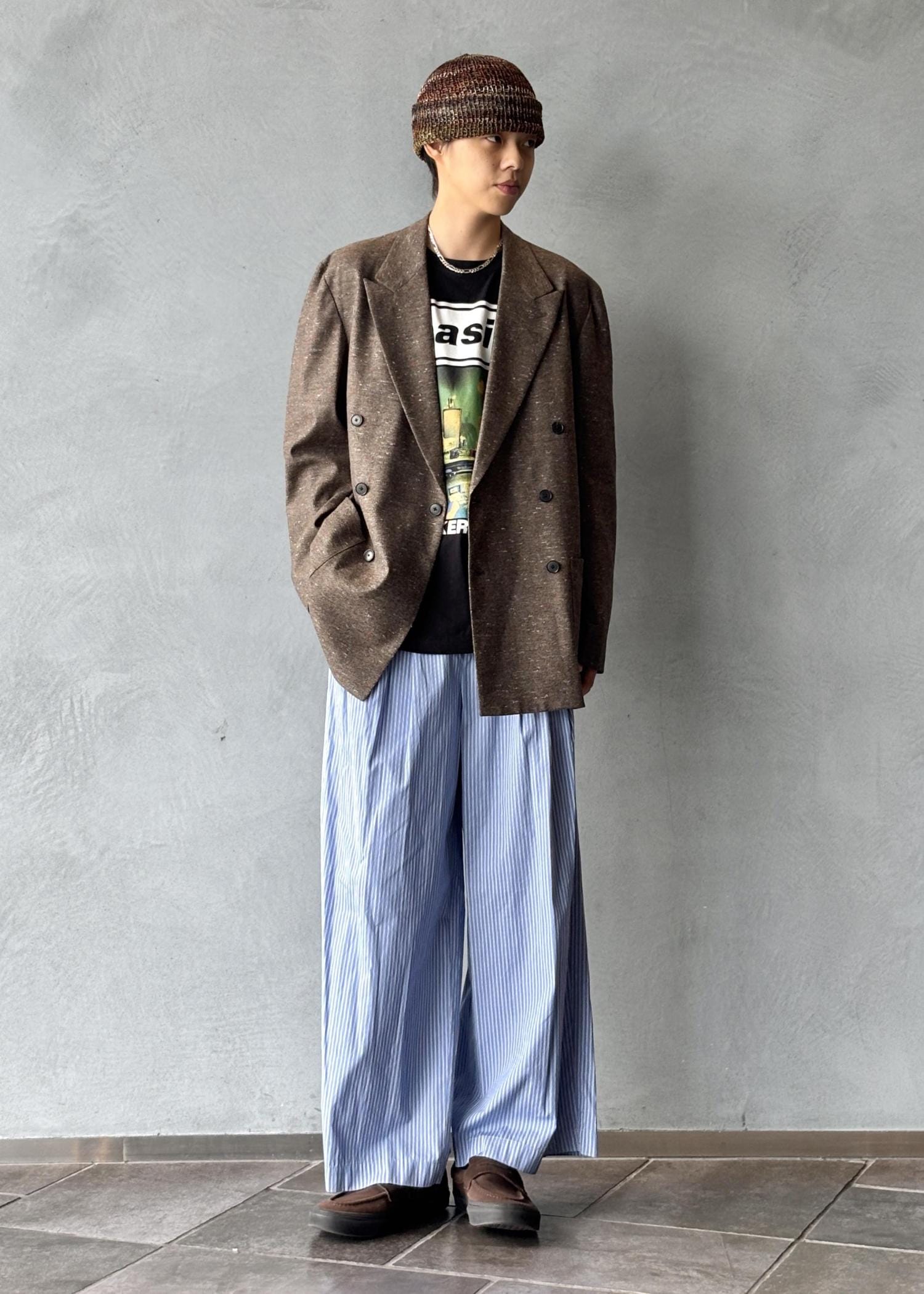 かっちりしたジャケットに外しとしてFEMMEのアイテムを使用したコーディネート。