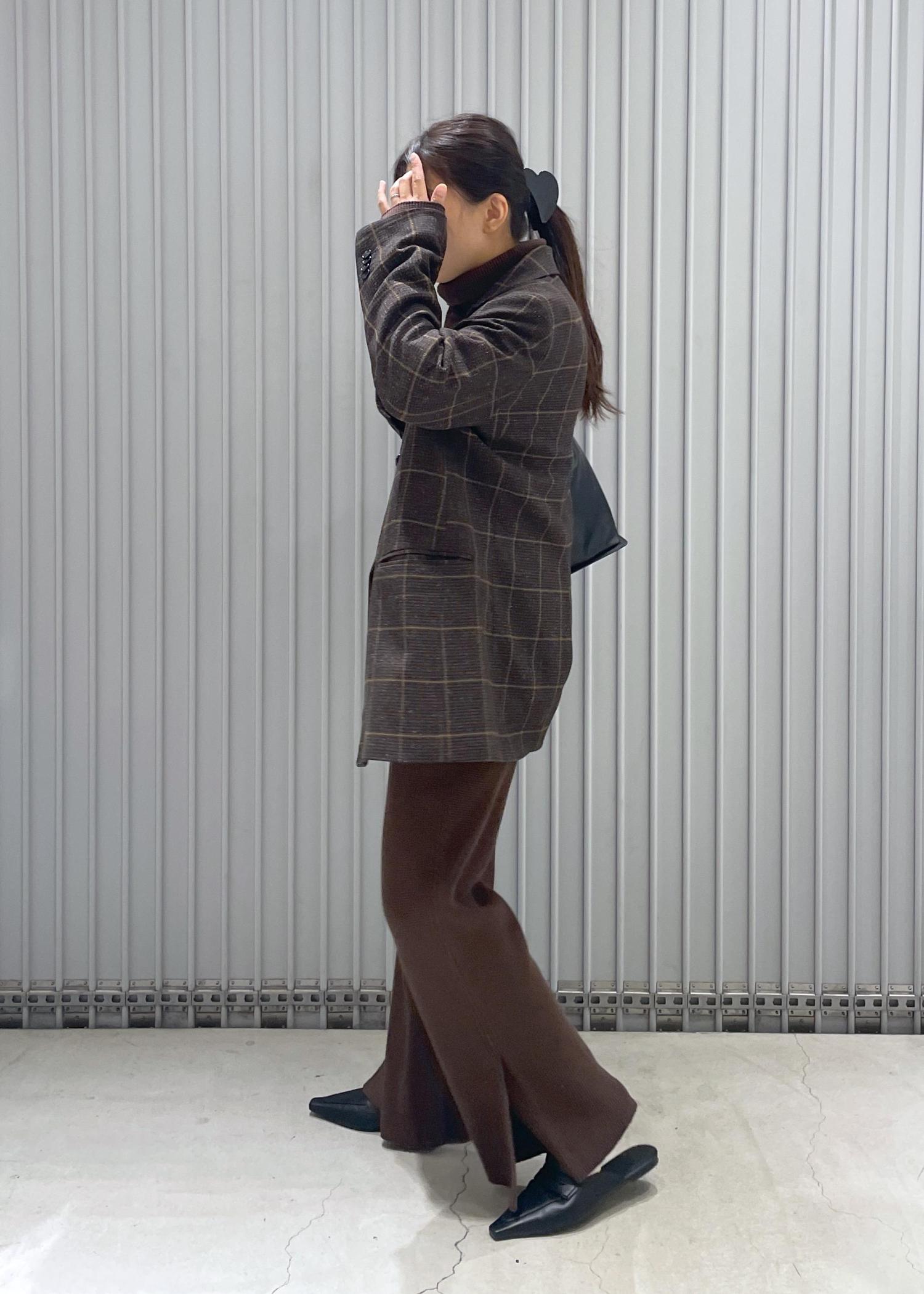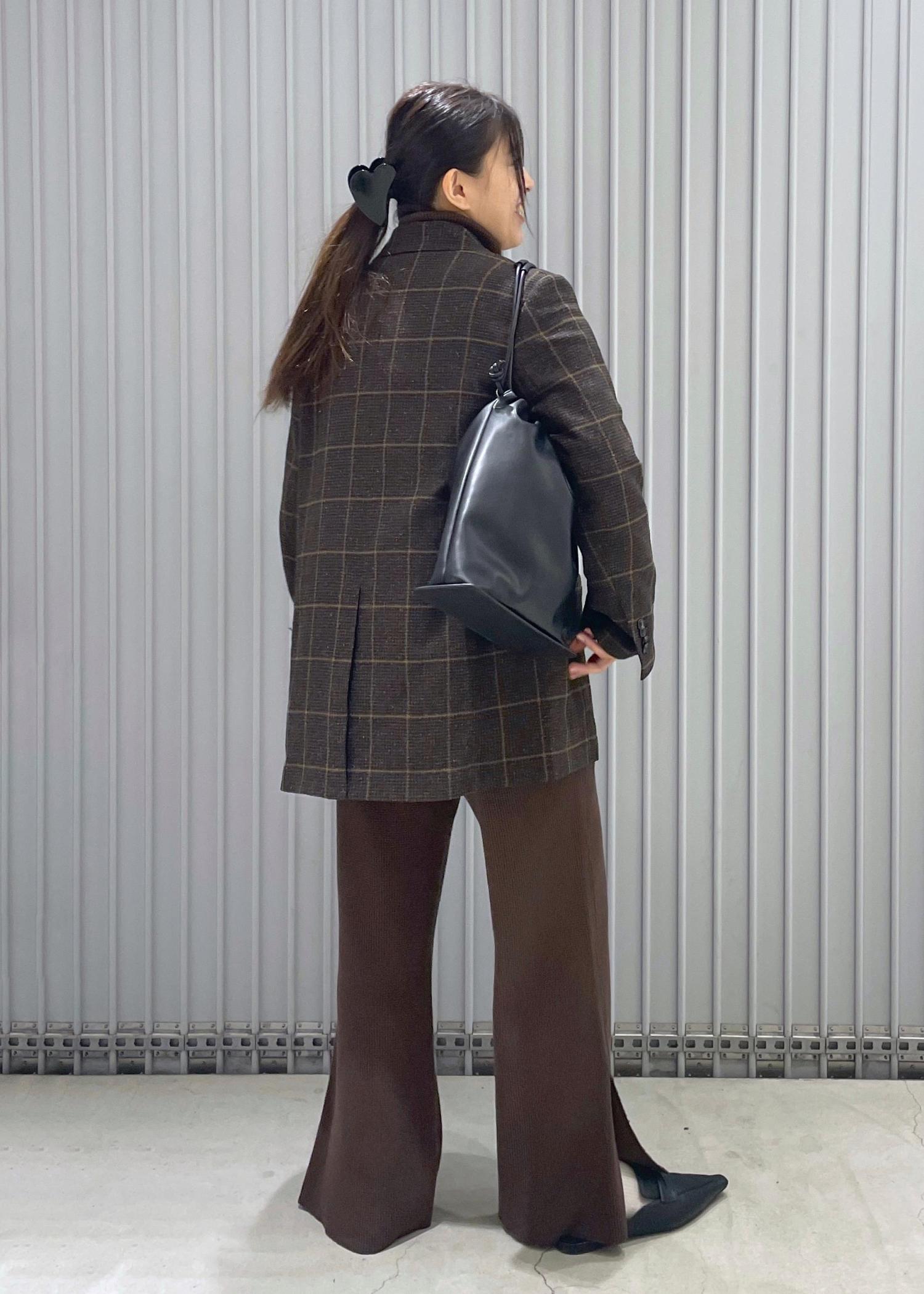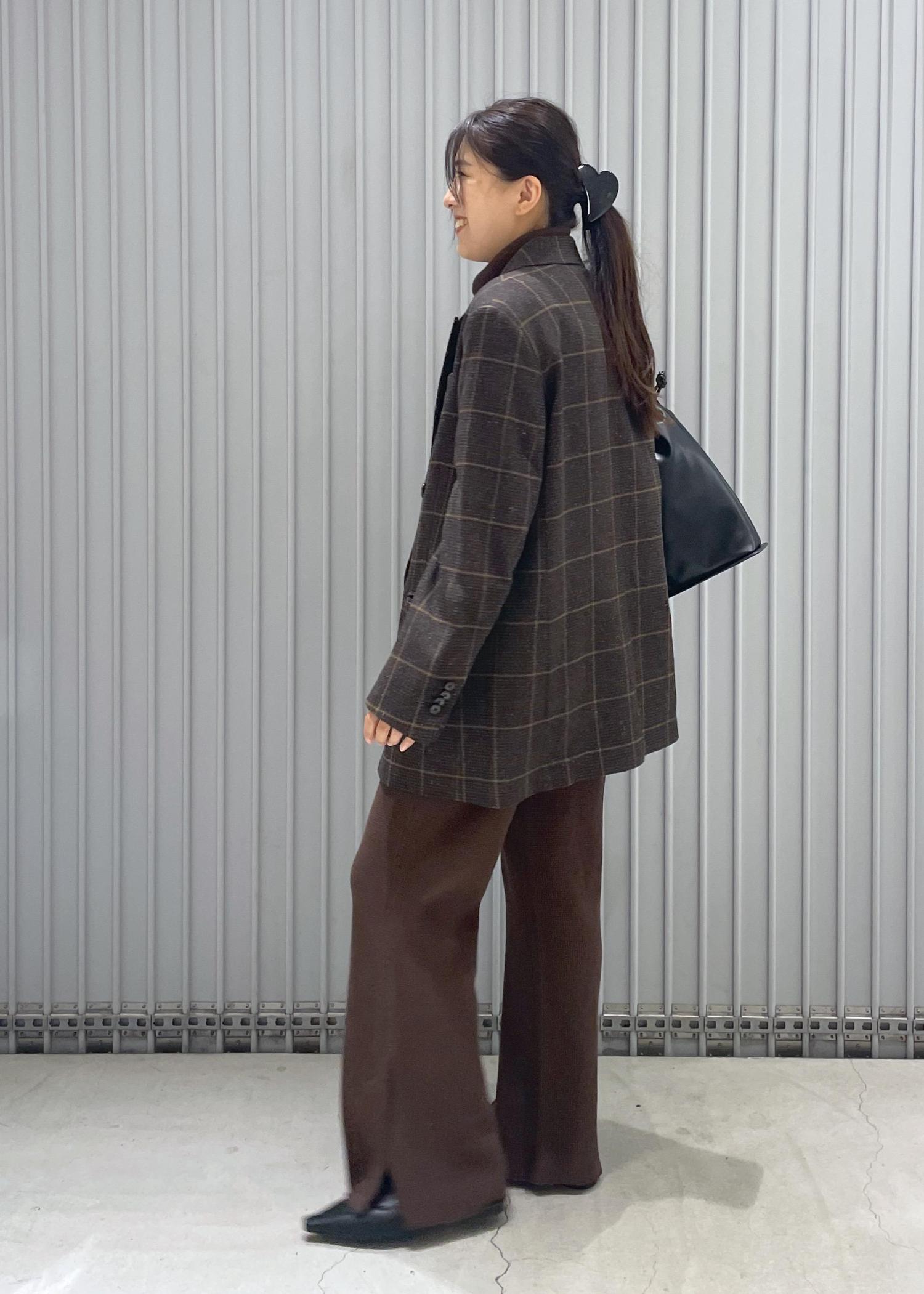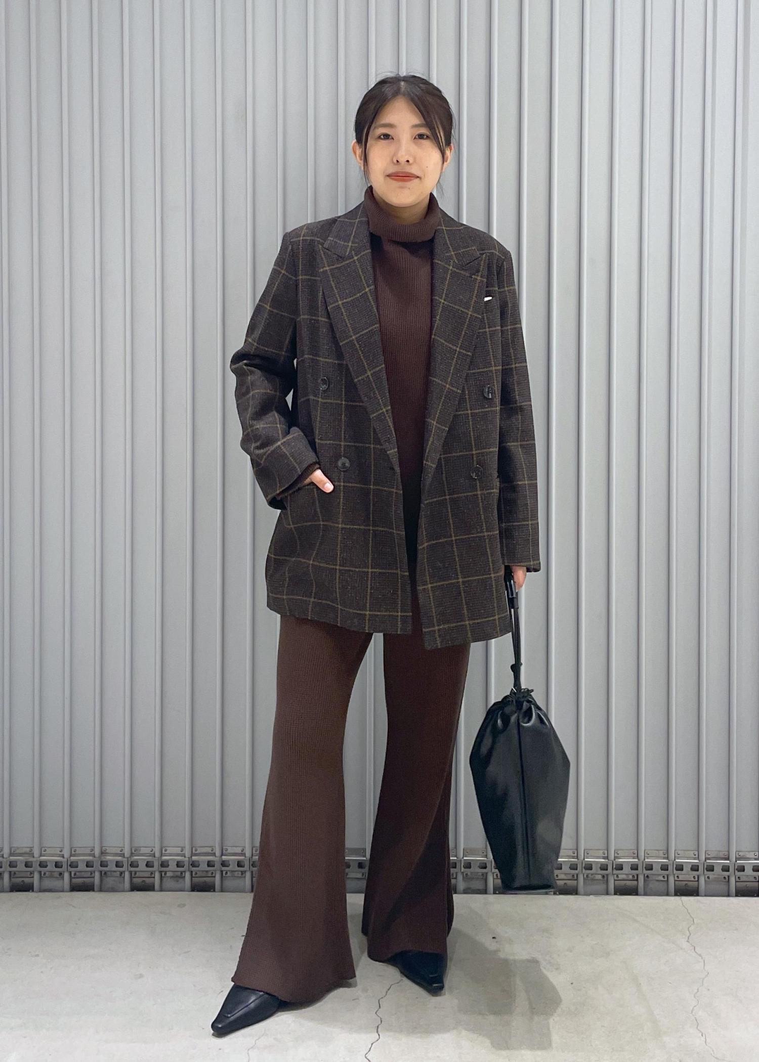 全身はブラウンのワントーンで小物はブラックで合わせました◎