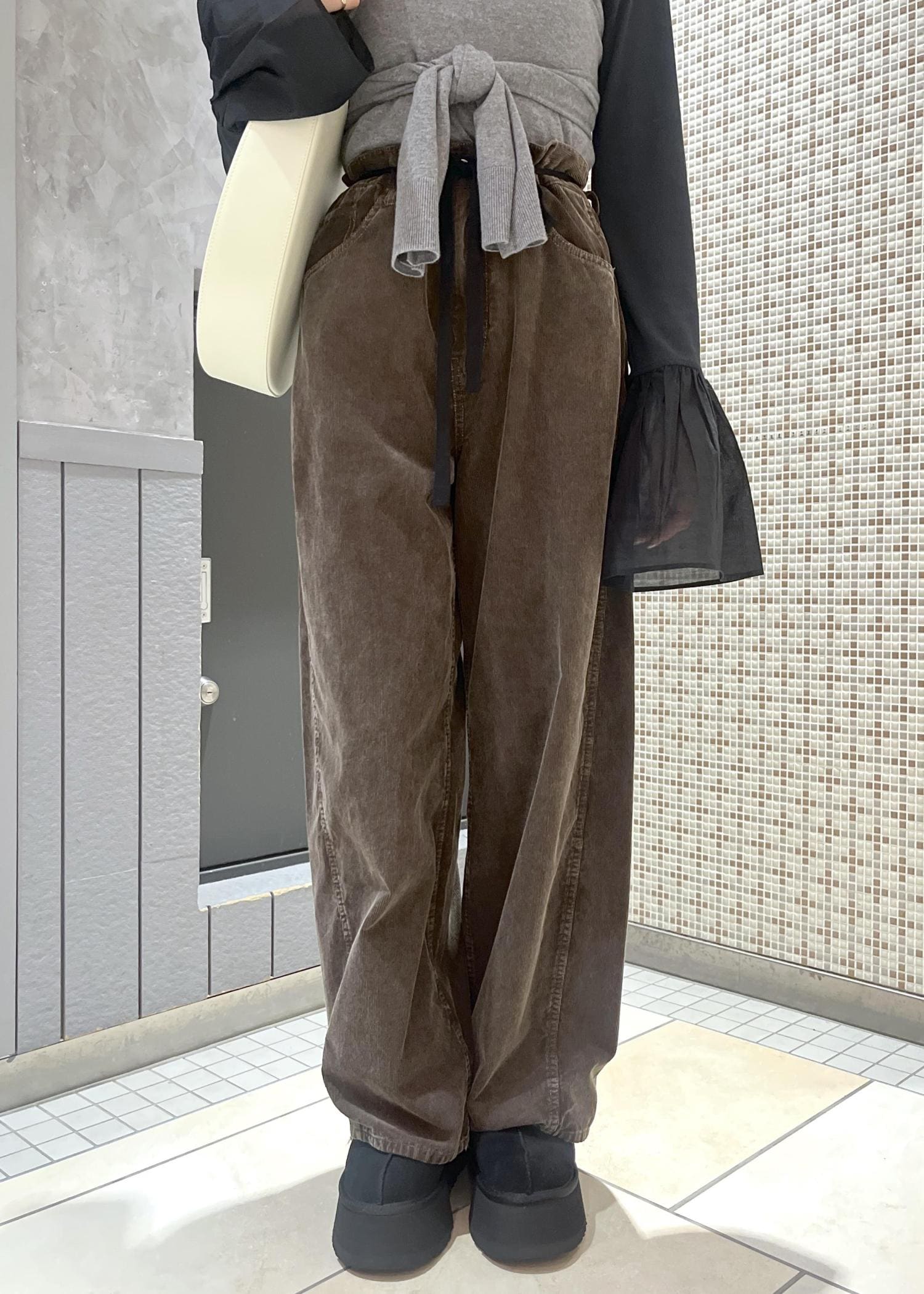 158cm36サイズだとたっぷり感ある印象でした。シルエットも太すぎず細すぎないので私は36が好みでした。コーデュロイですが軽めで柔らかさのある履き心地です。