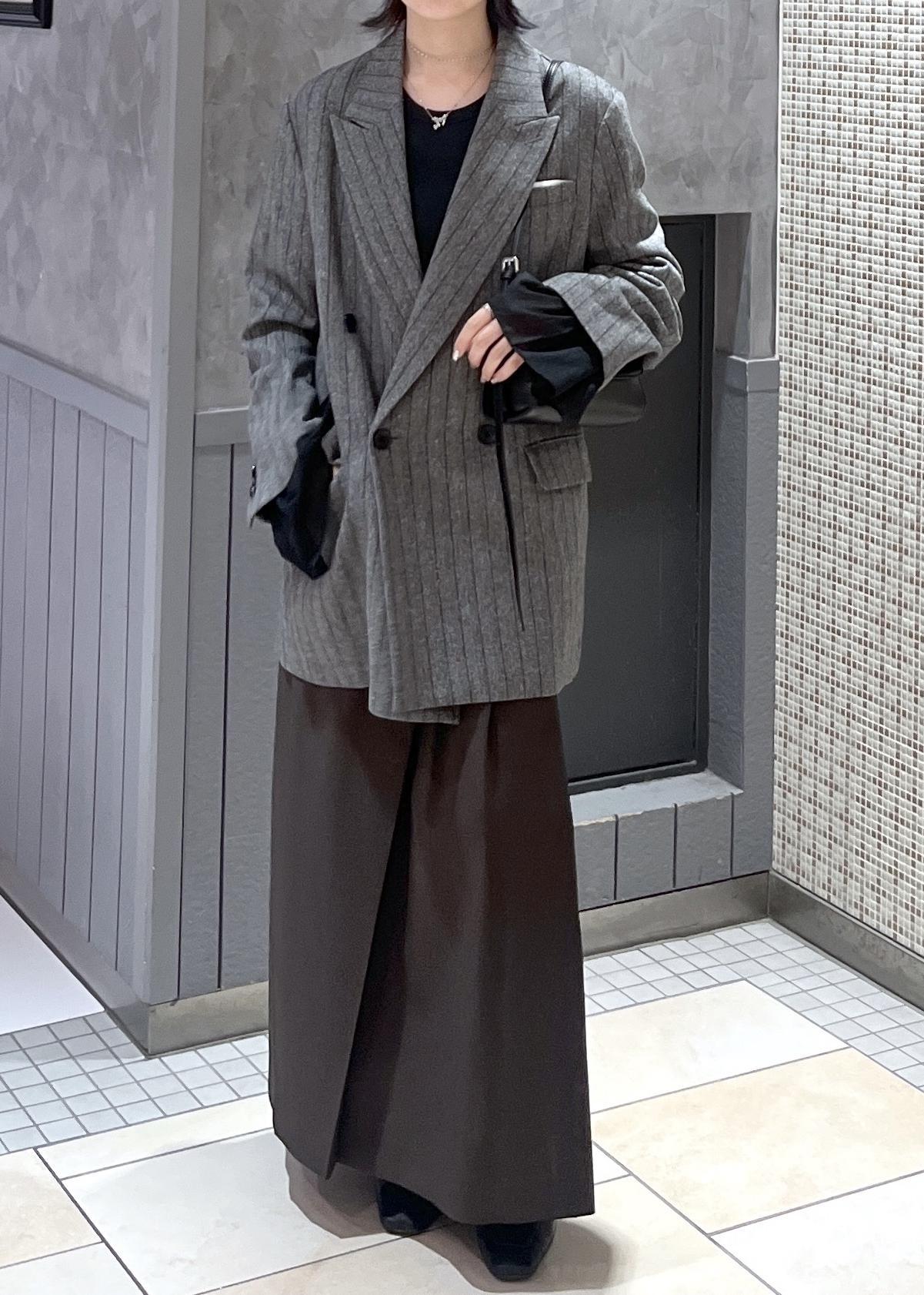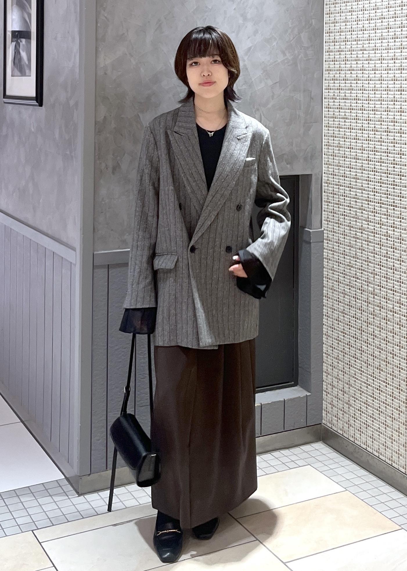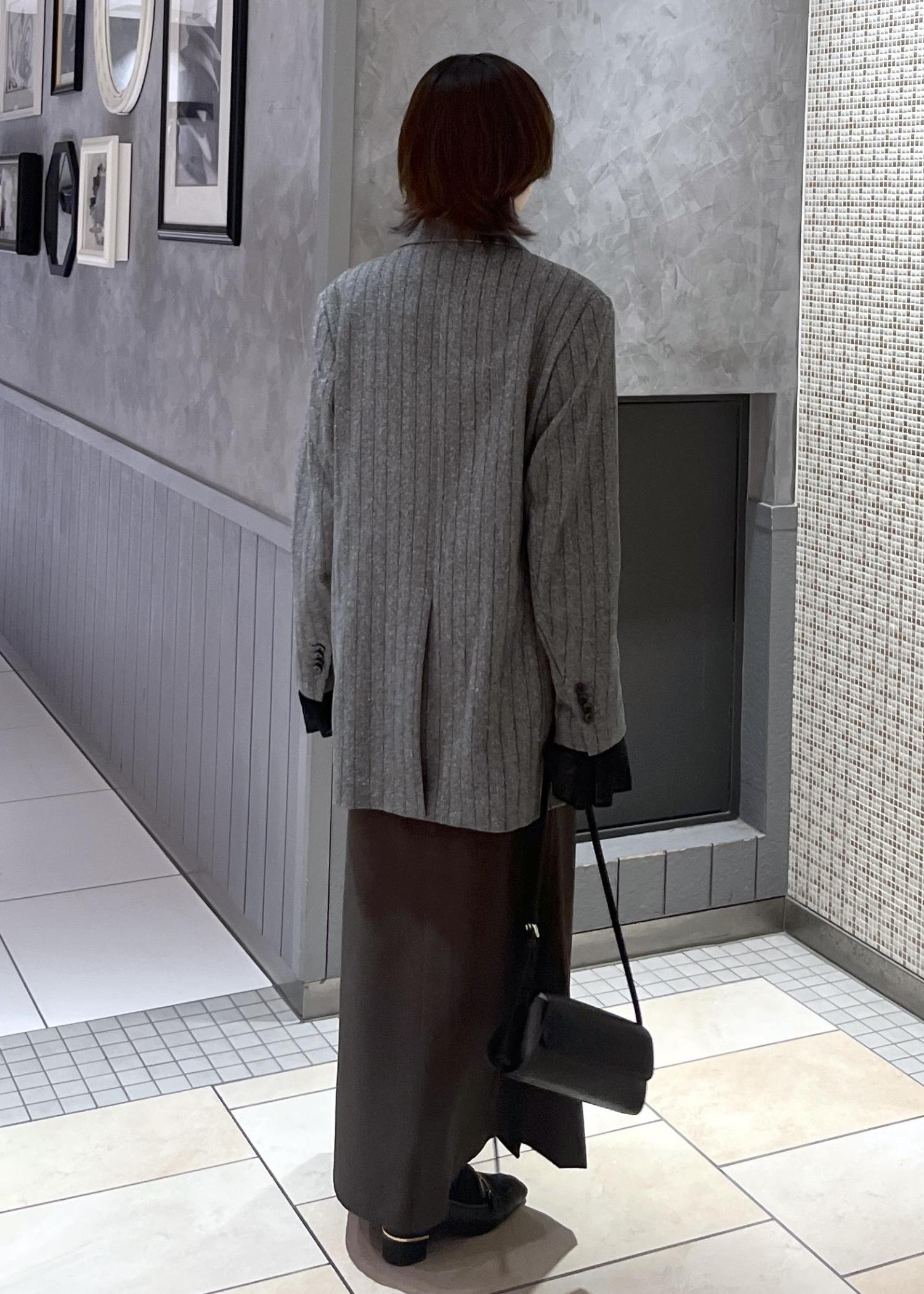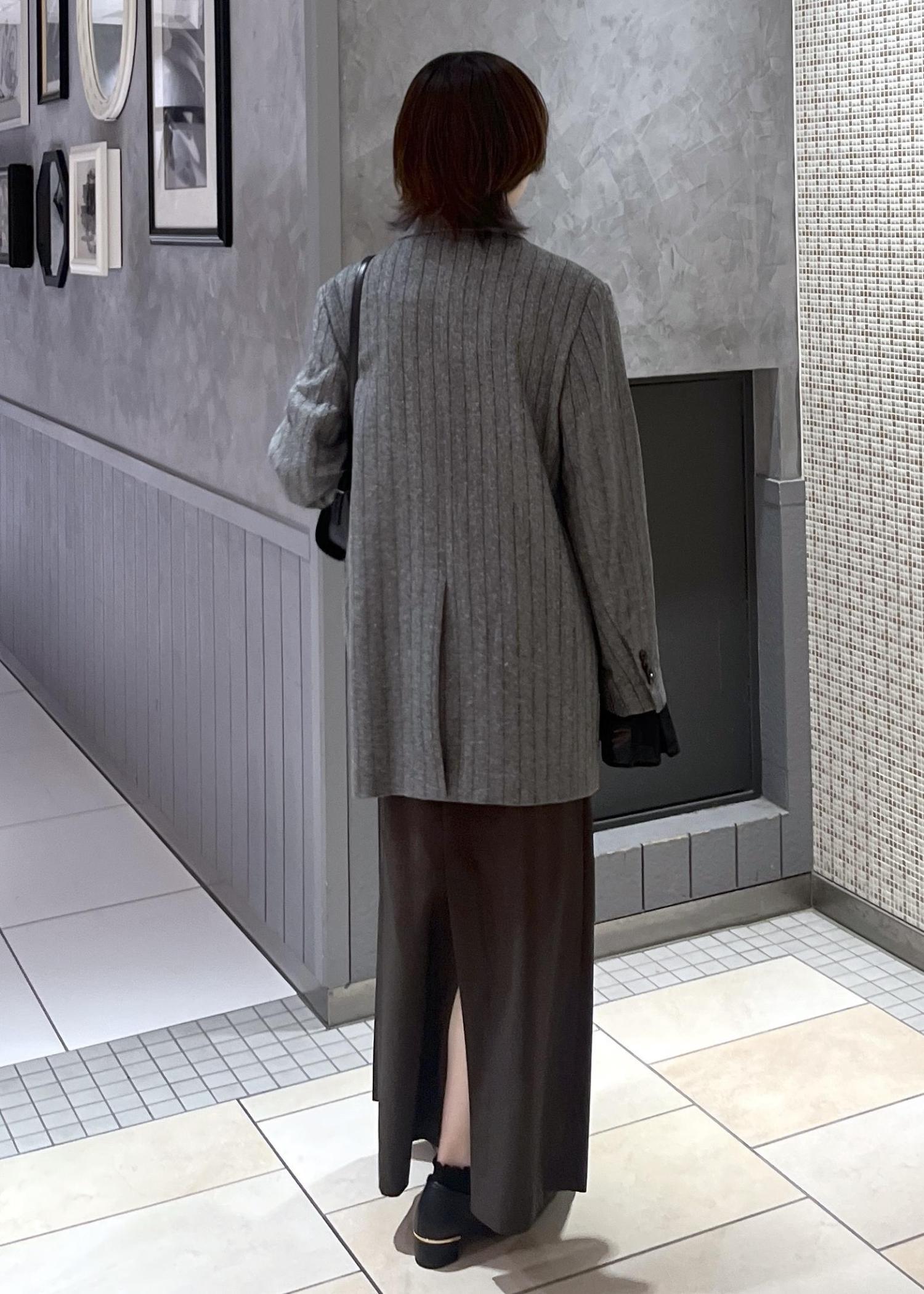 今回はダブルブレスツイード&チェックジャケットを使ったコーディネートです。ジャケットのきちんと感がありながら、オーバーサイズでカジュアルにも落とし込める万能アイテム⭐︎