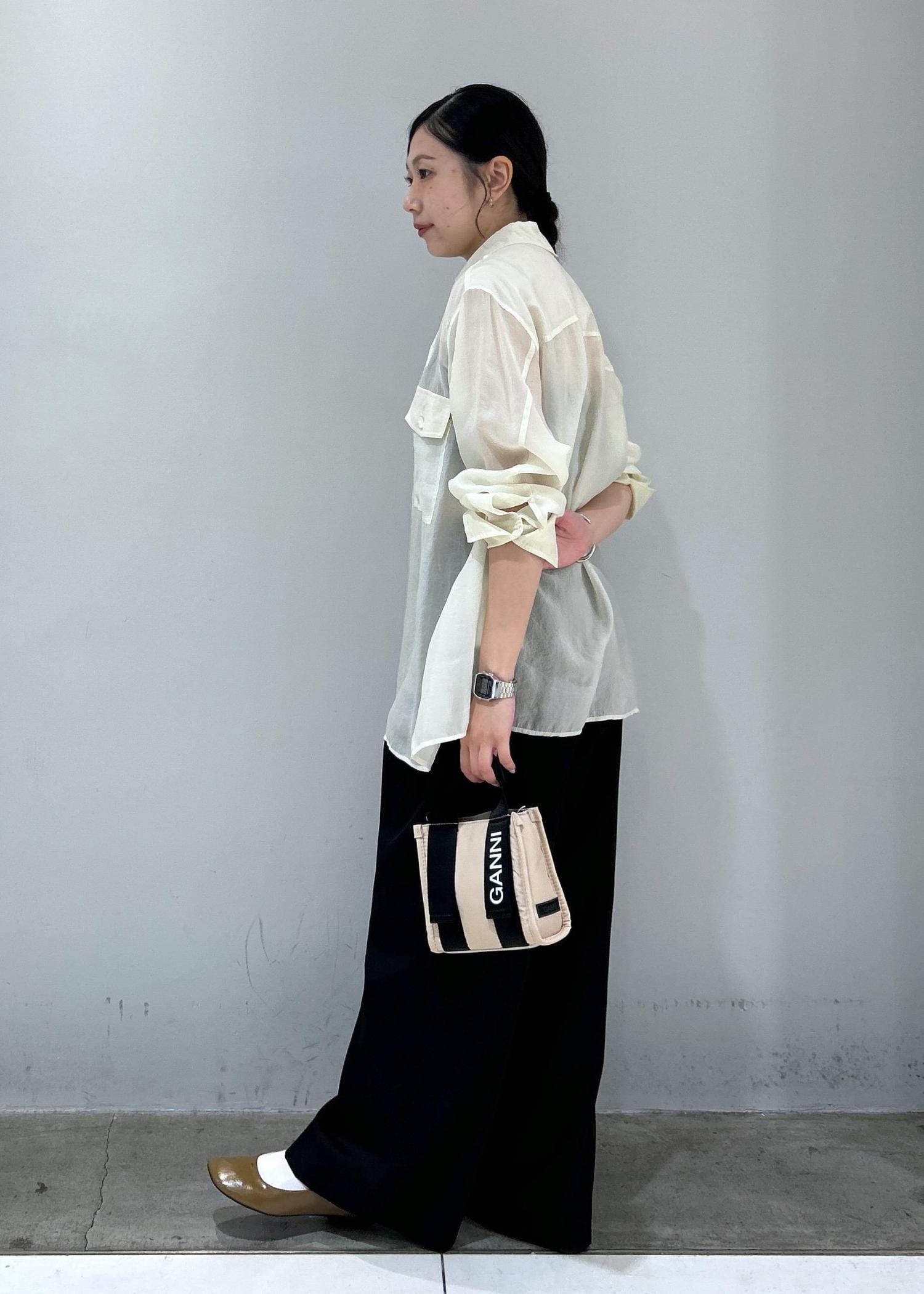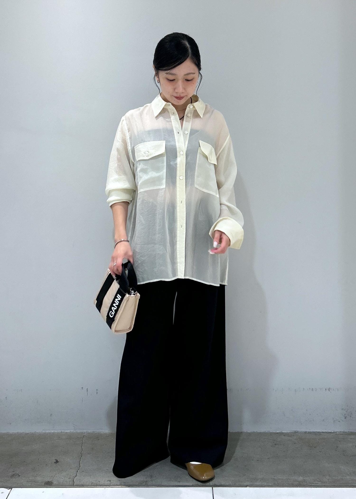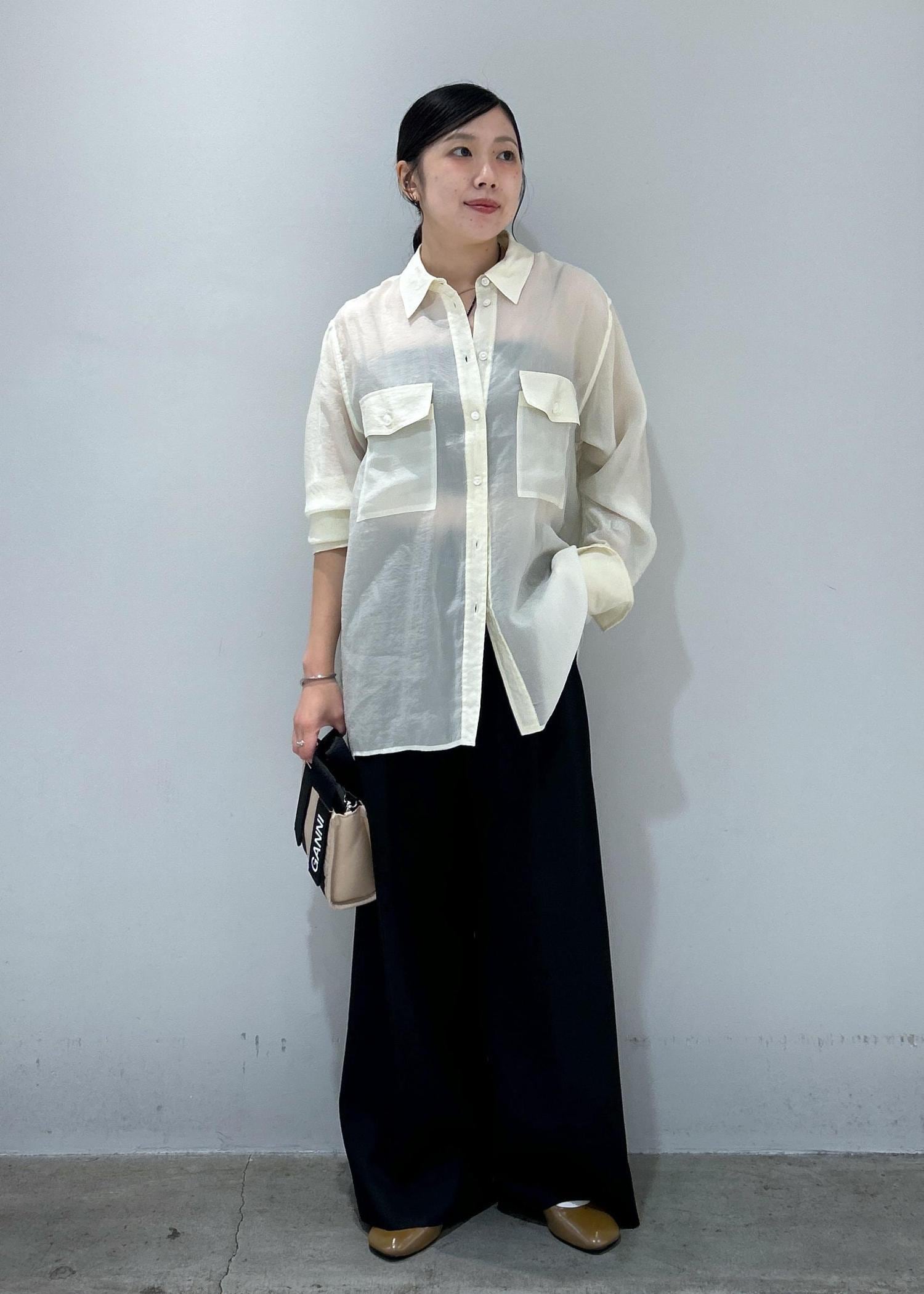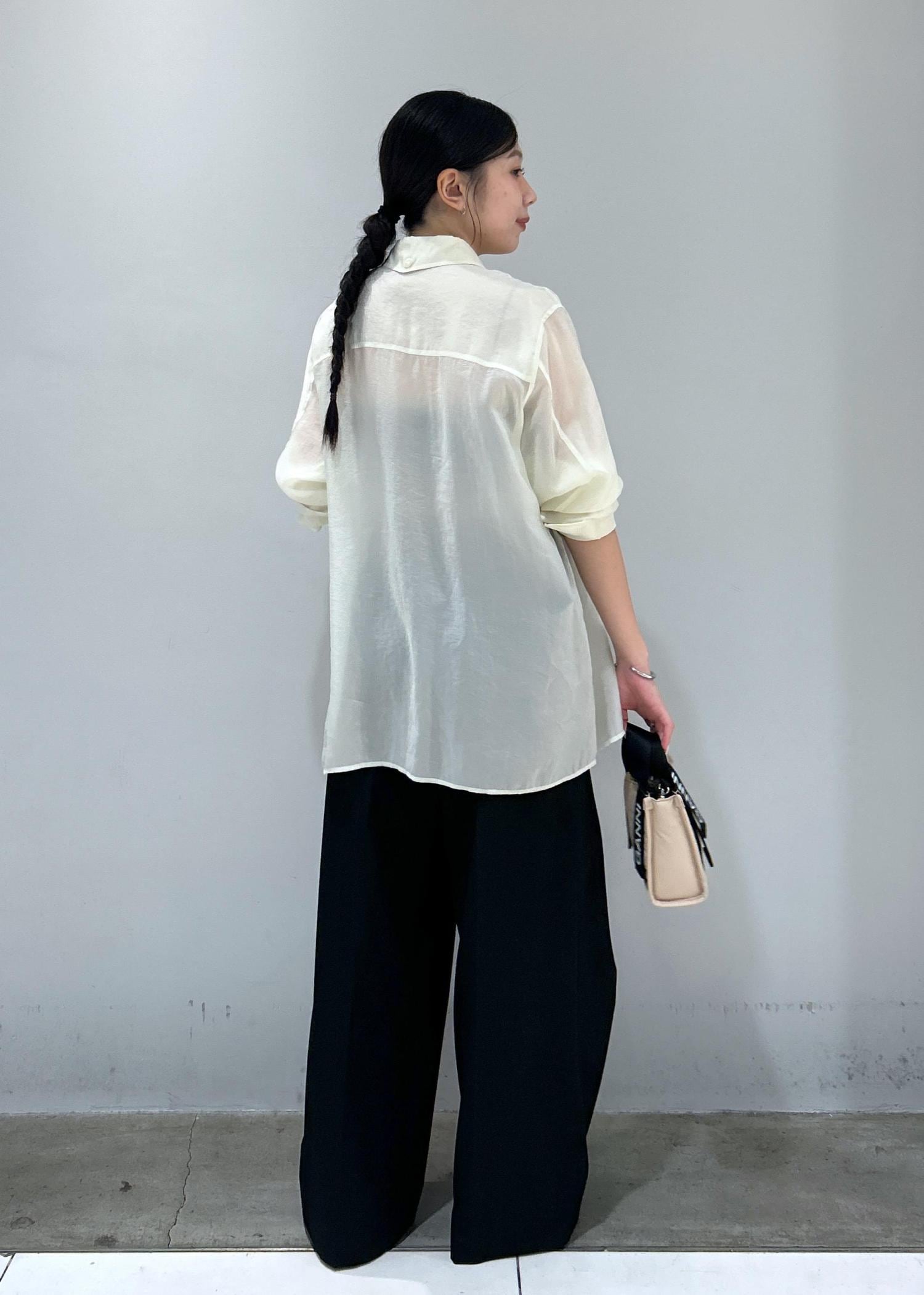 シアーシャツ×ワイドパンツ