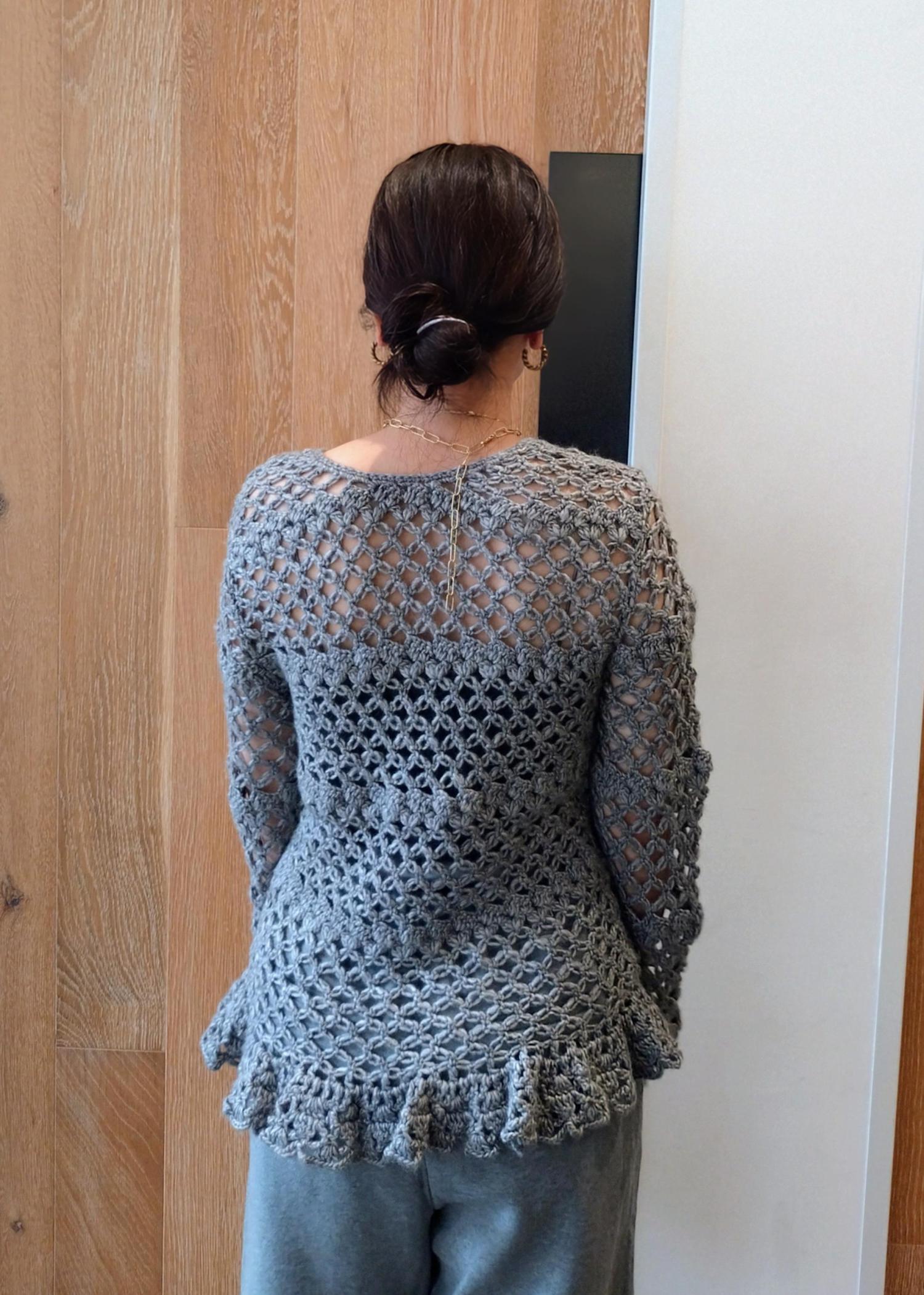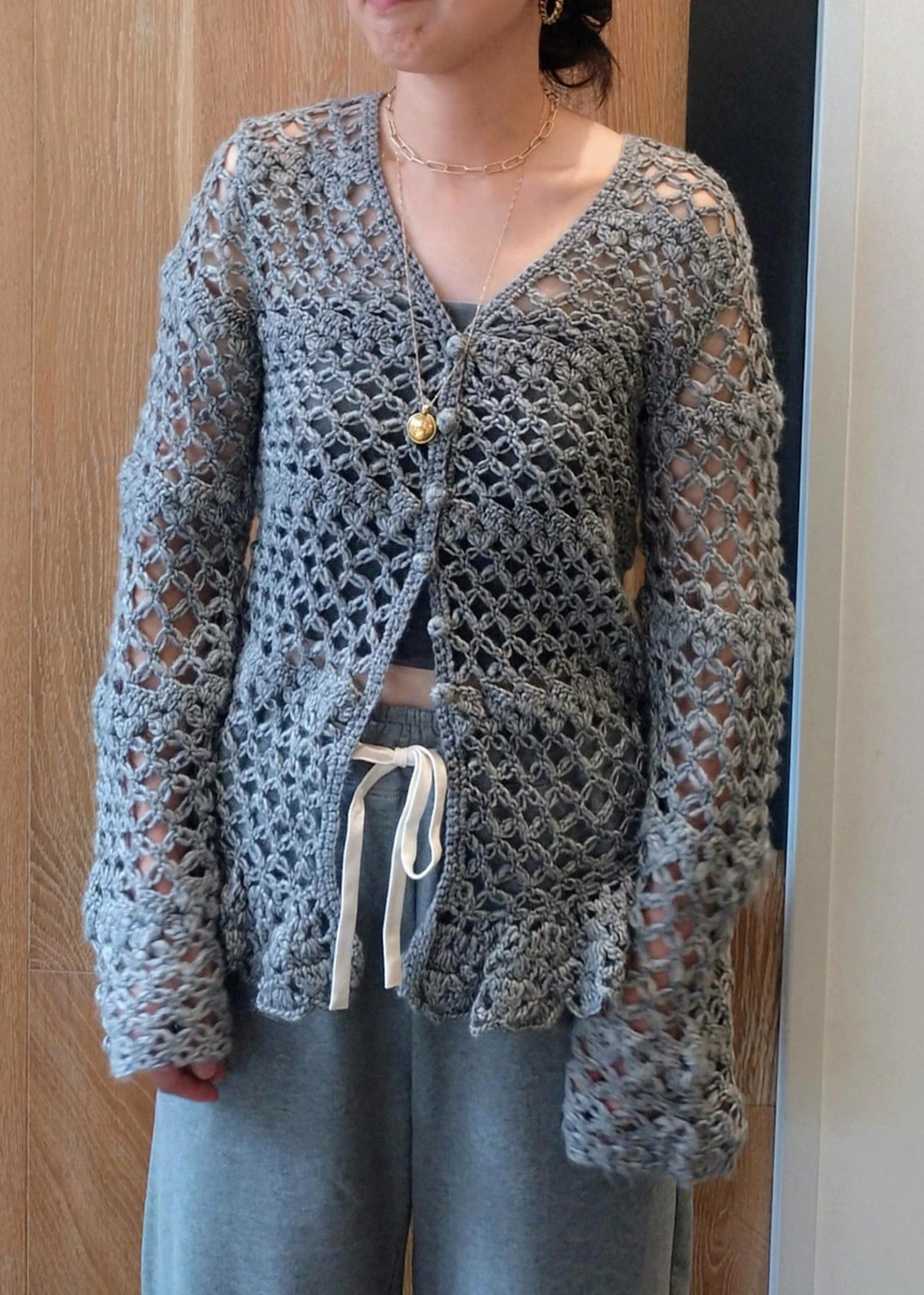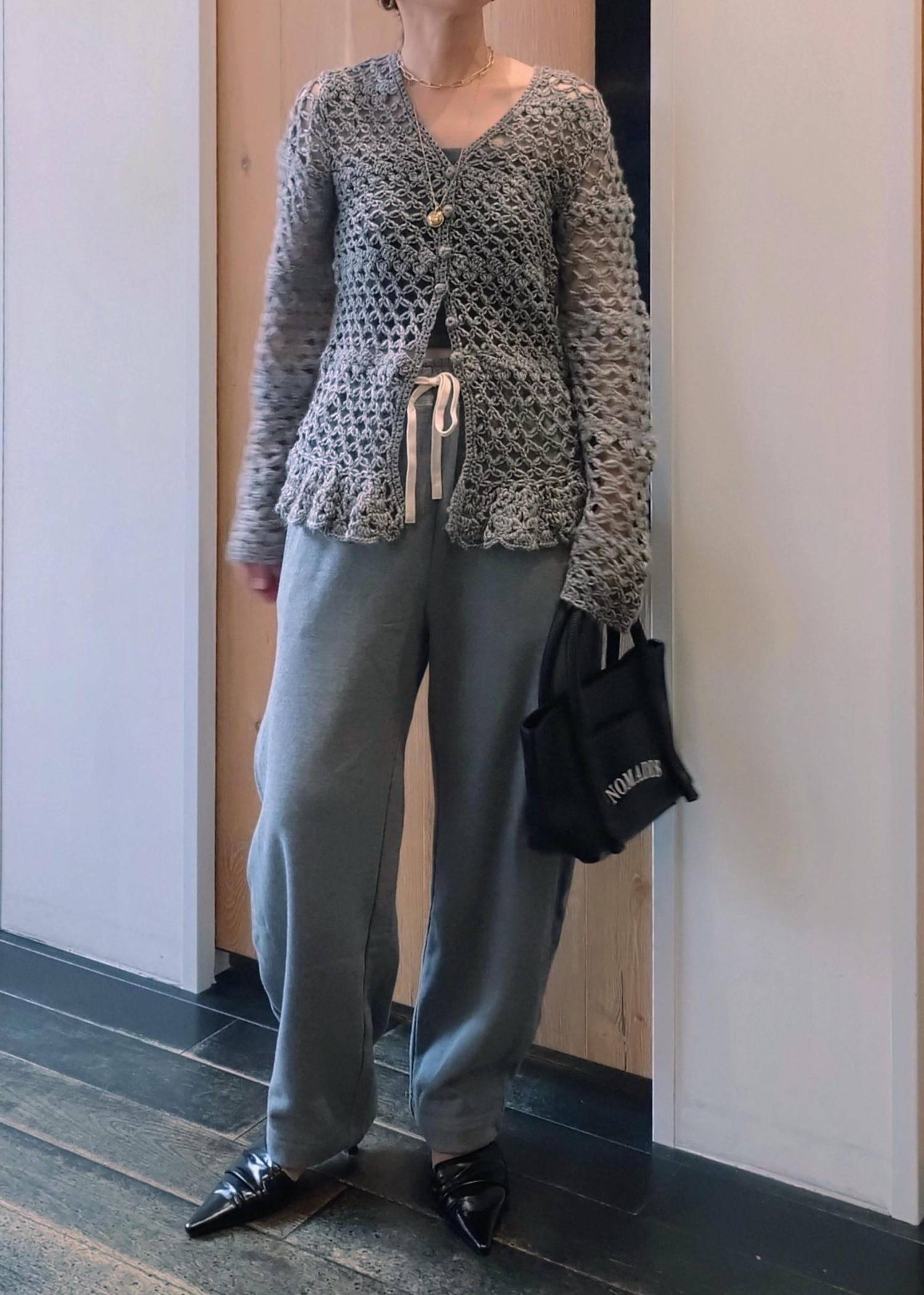 EMOELLE【EMOELLE】クロシェカーディガングレー / F¥26,400レビューハンドメイドなので程よくフィットし、着丈は、おしりにかかるくらいの長さです。