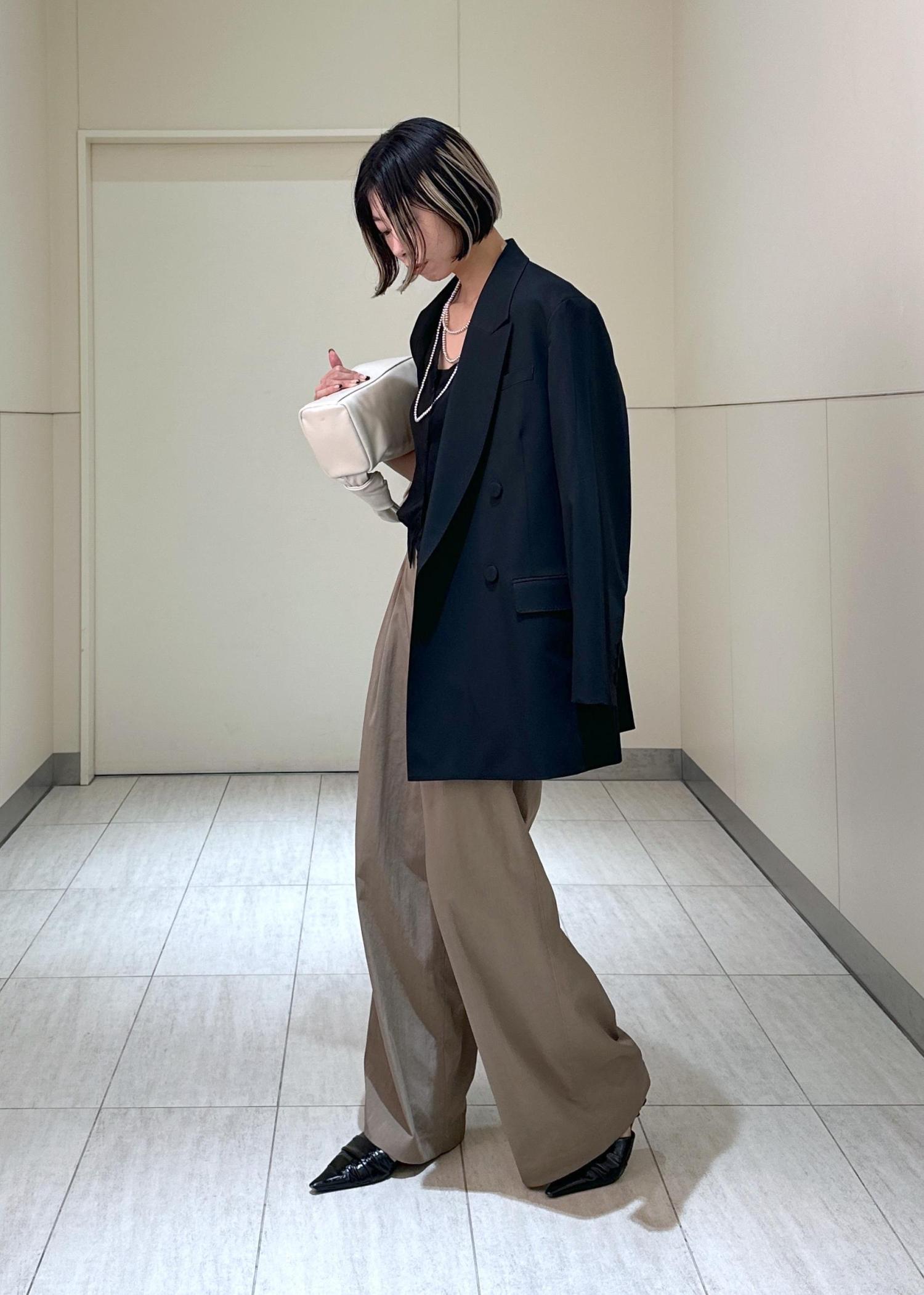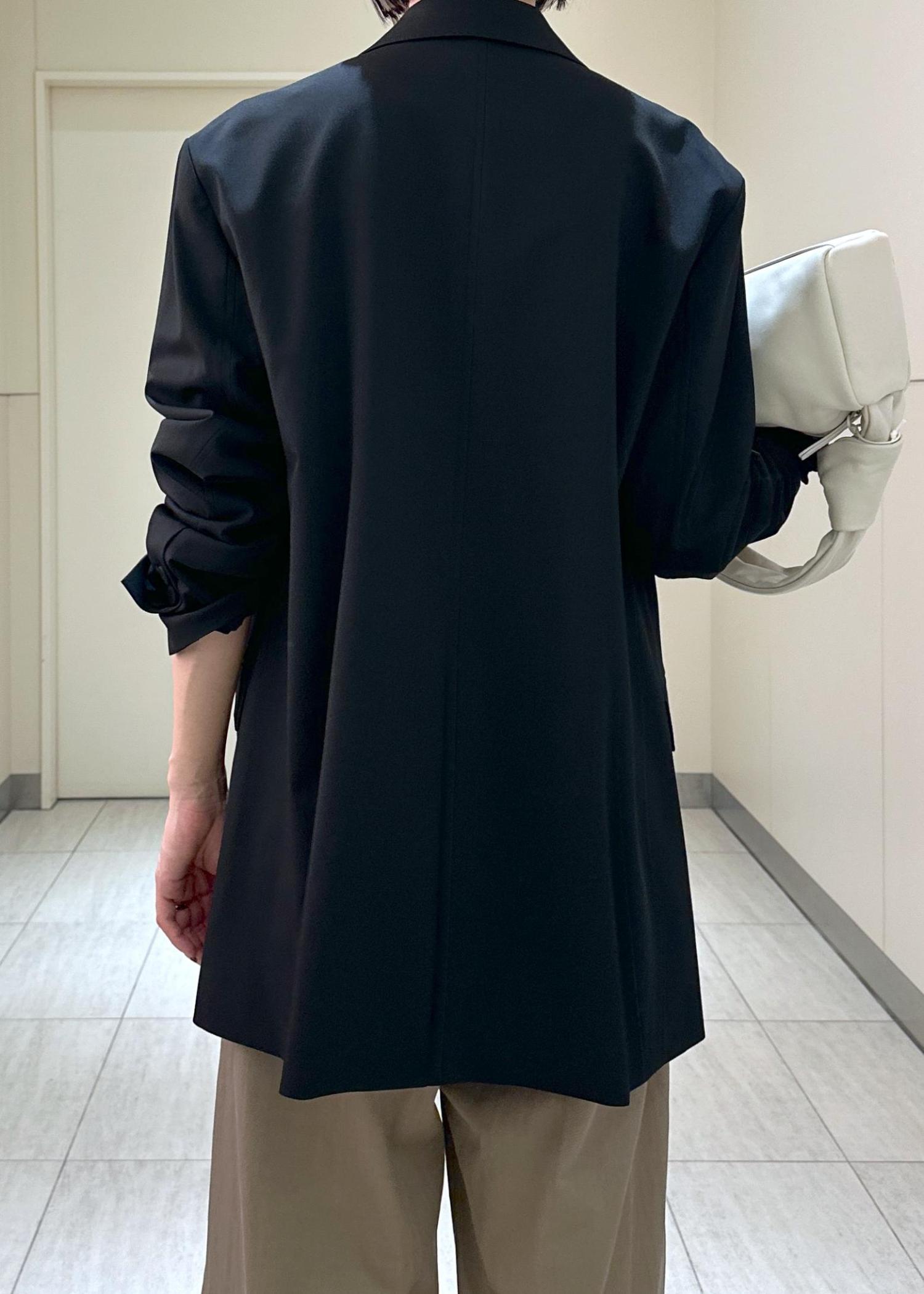 私は165cmで38サイズを着用。程よくオーバーでサラッと羽織るだけでスタイリングが決まります!