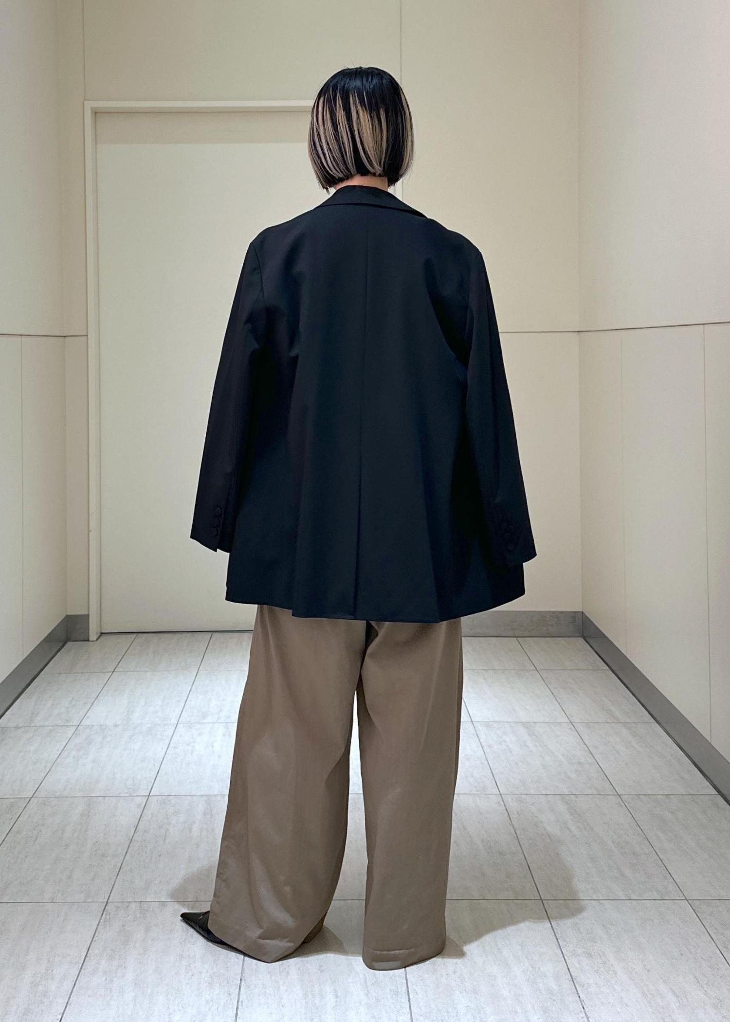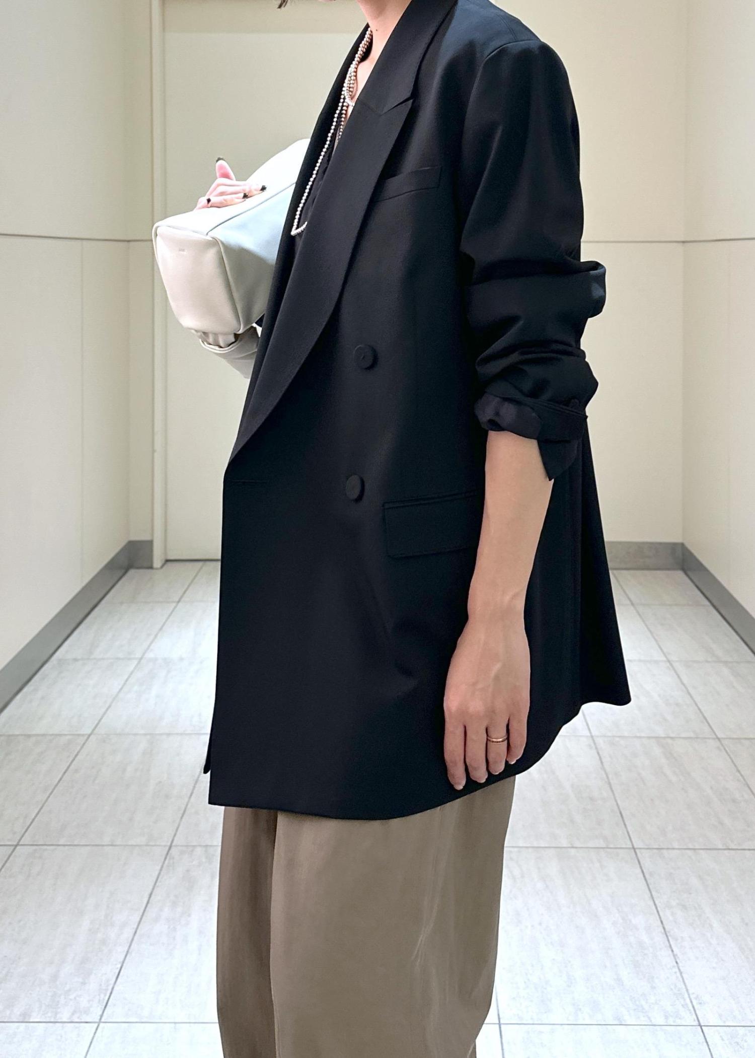 ダブルプレストジャケットは、春に人気だった形を秋冬バージョンでウール混の素材に◎