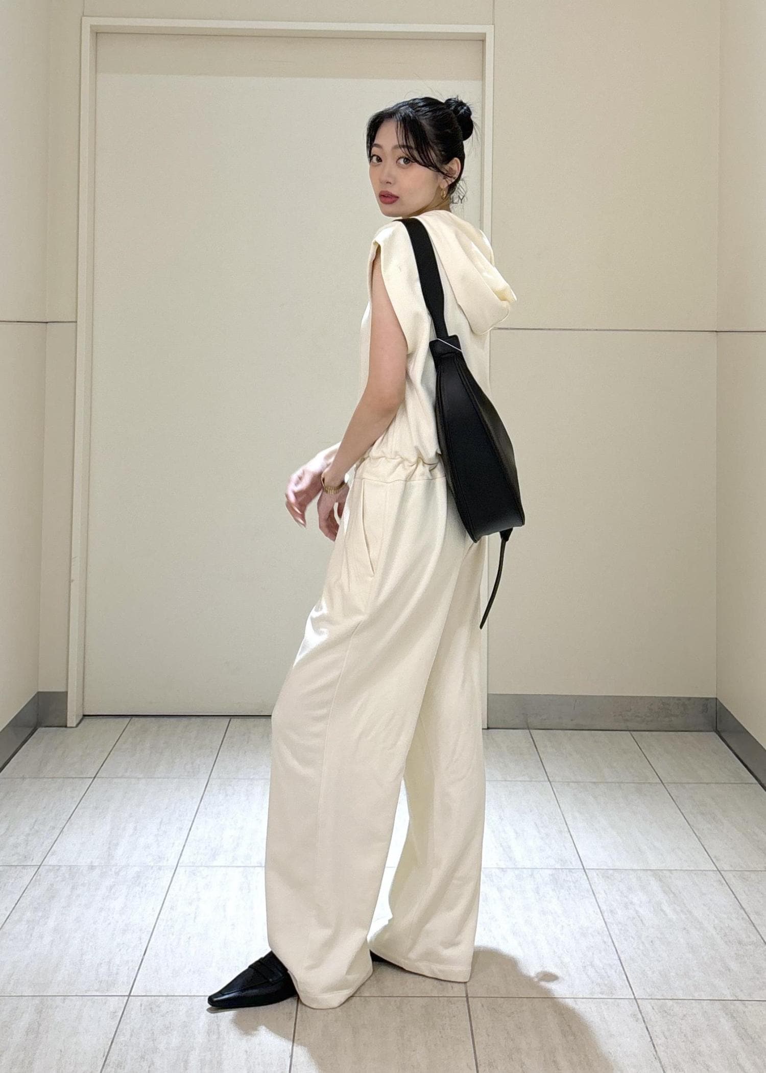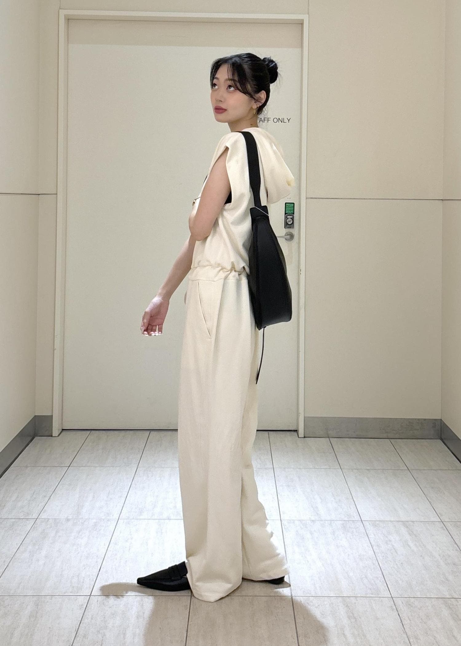 アウトレットADAM ET ROPÉ FEMME裏毛フーディロンパースキナリ系 / F¥11,880レビューゆったりとした着用感ですが、ウエストは紐で調節可能なので、程よくすっきりとしたシルエットで着用していただけます。