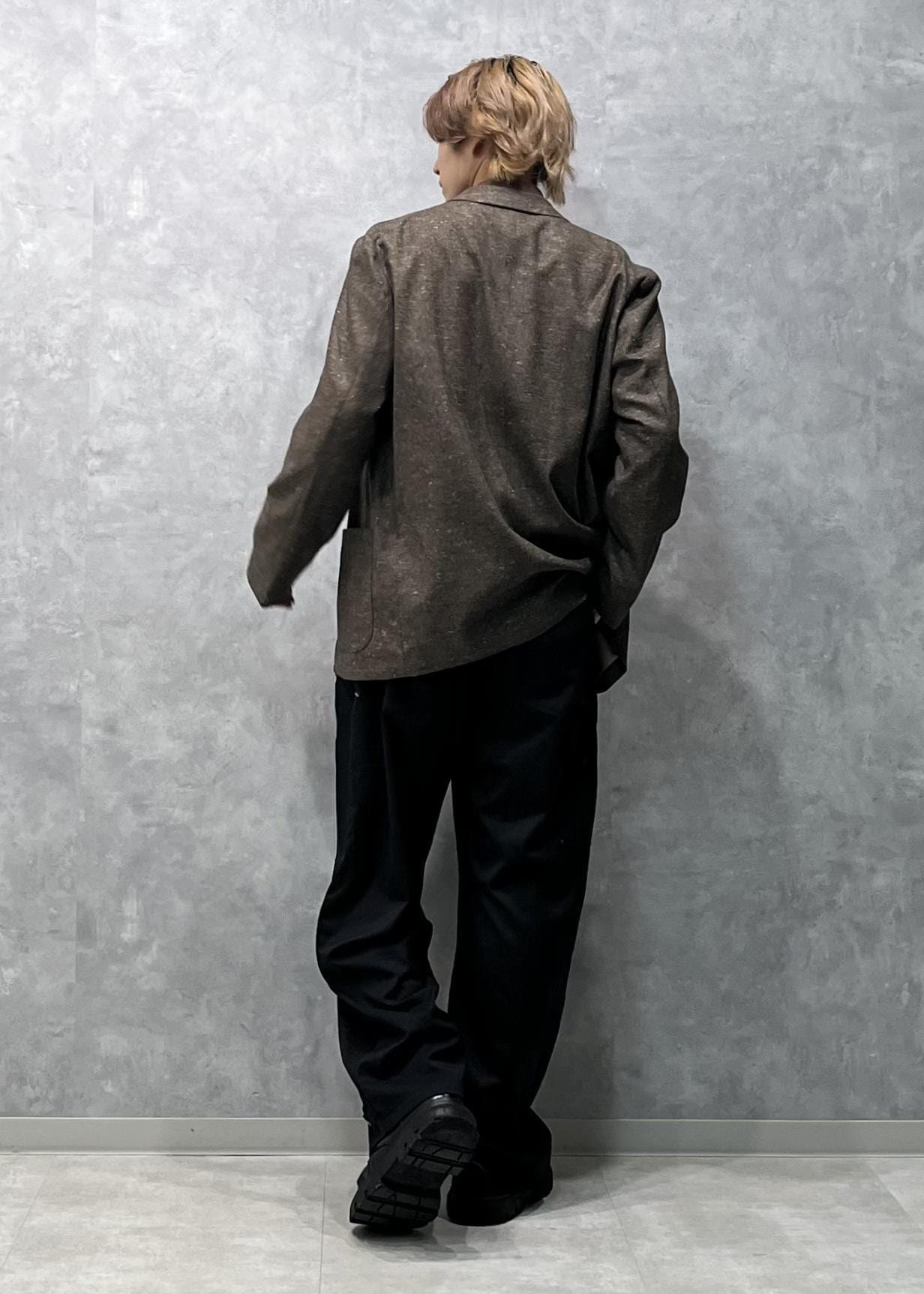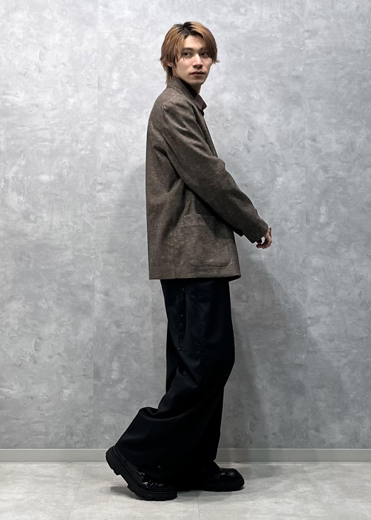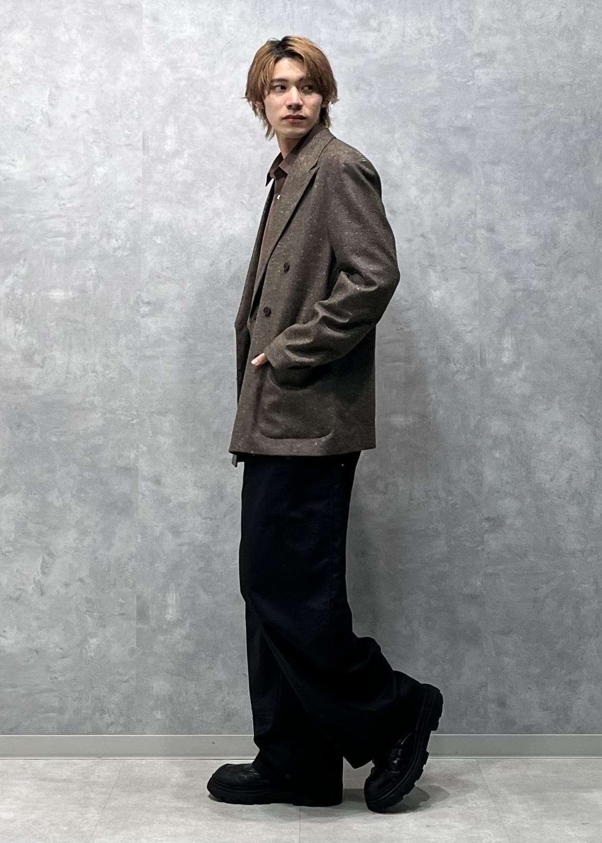 シャツとジャケットで同系色で合わせて秋っぽいスタイリングにしました。