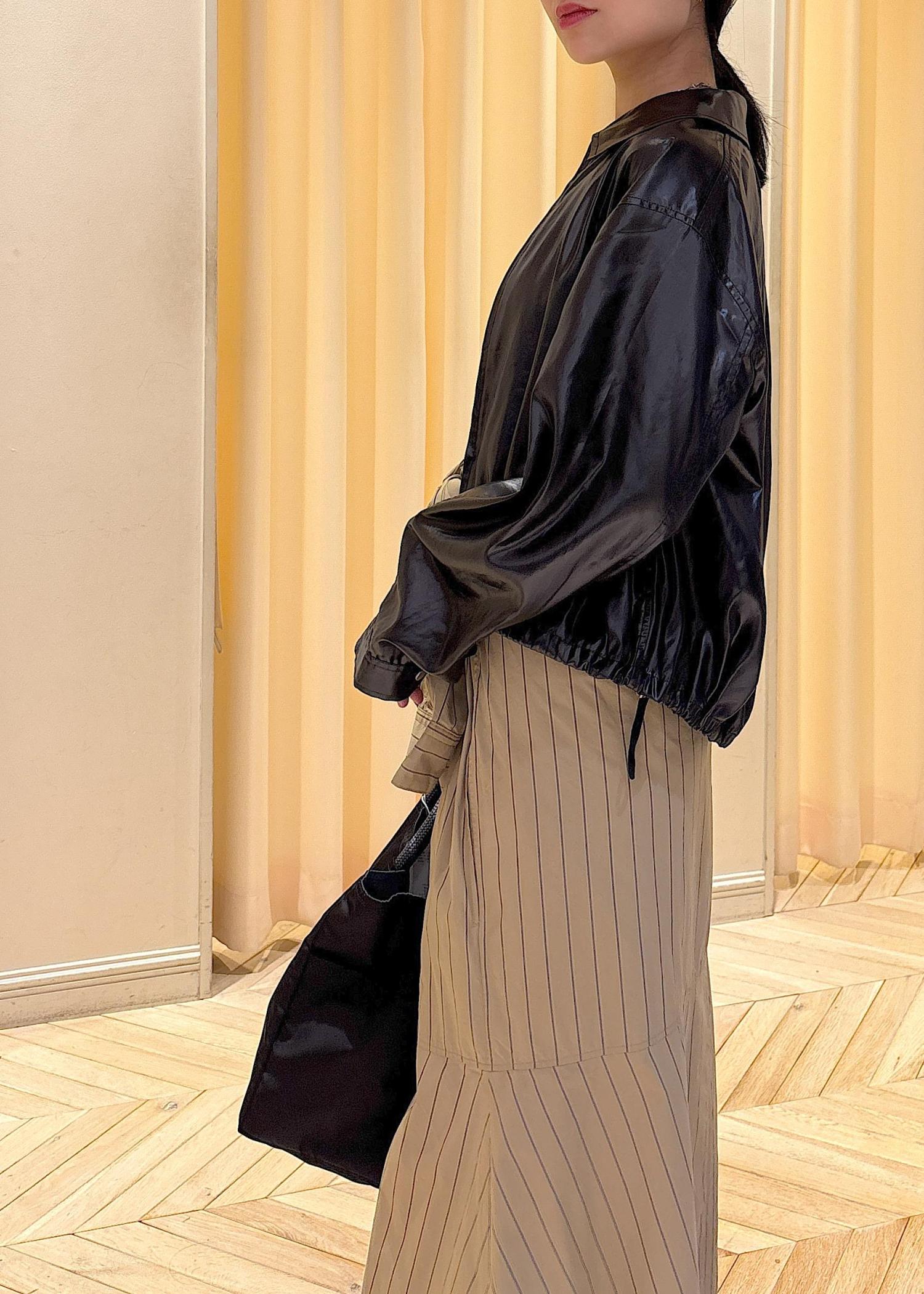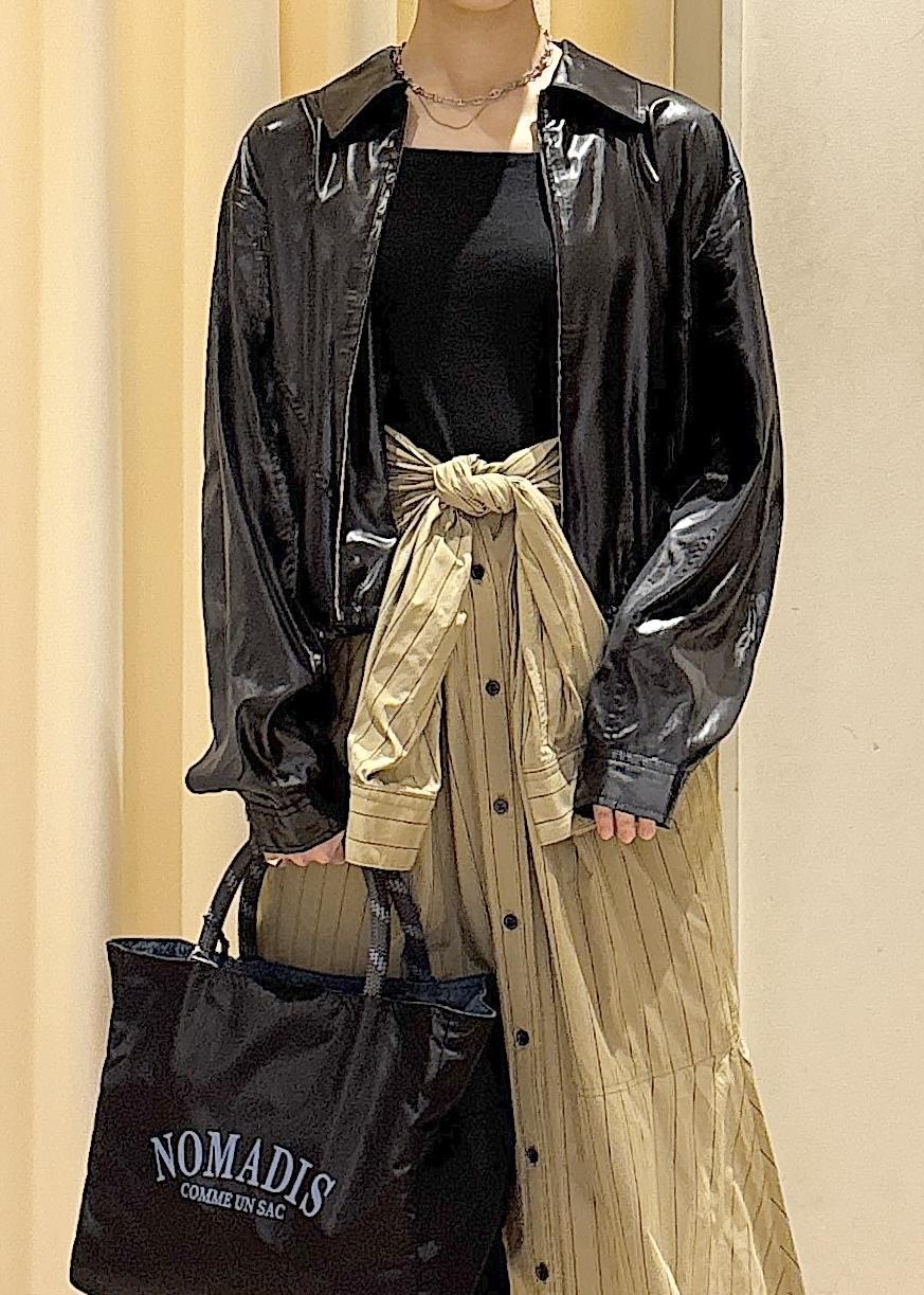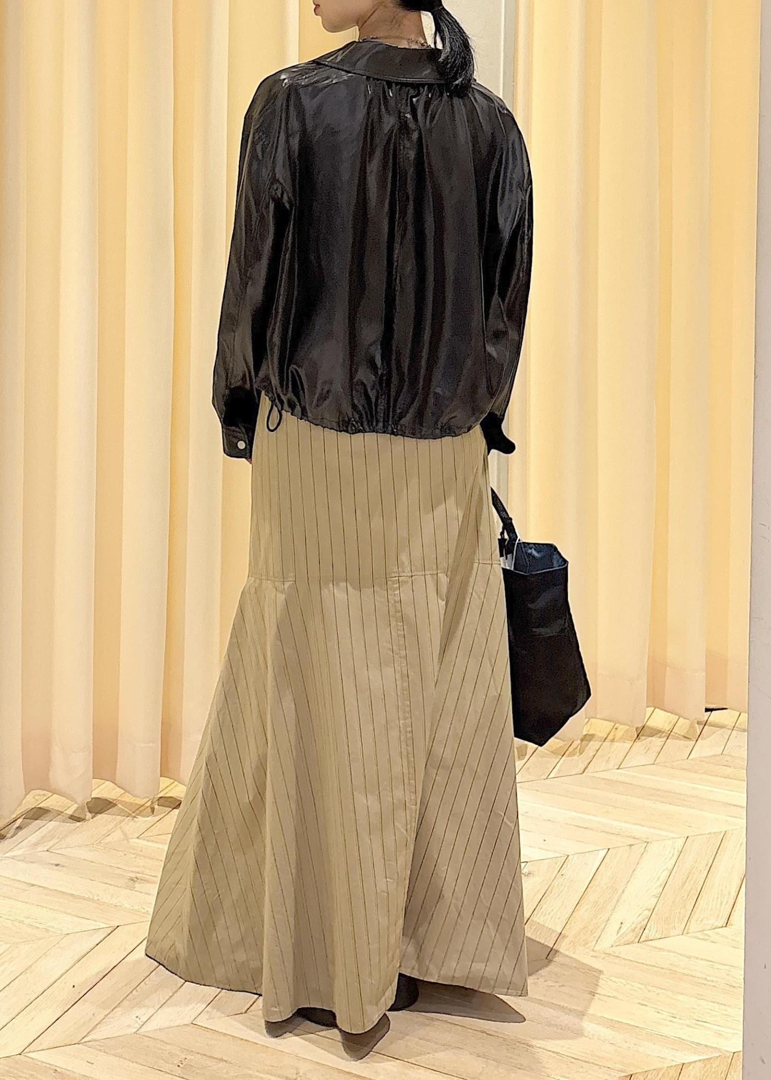 光沢感のある素材とシャツ襟でカジュアルな印象になりすぎず着用が可能です。