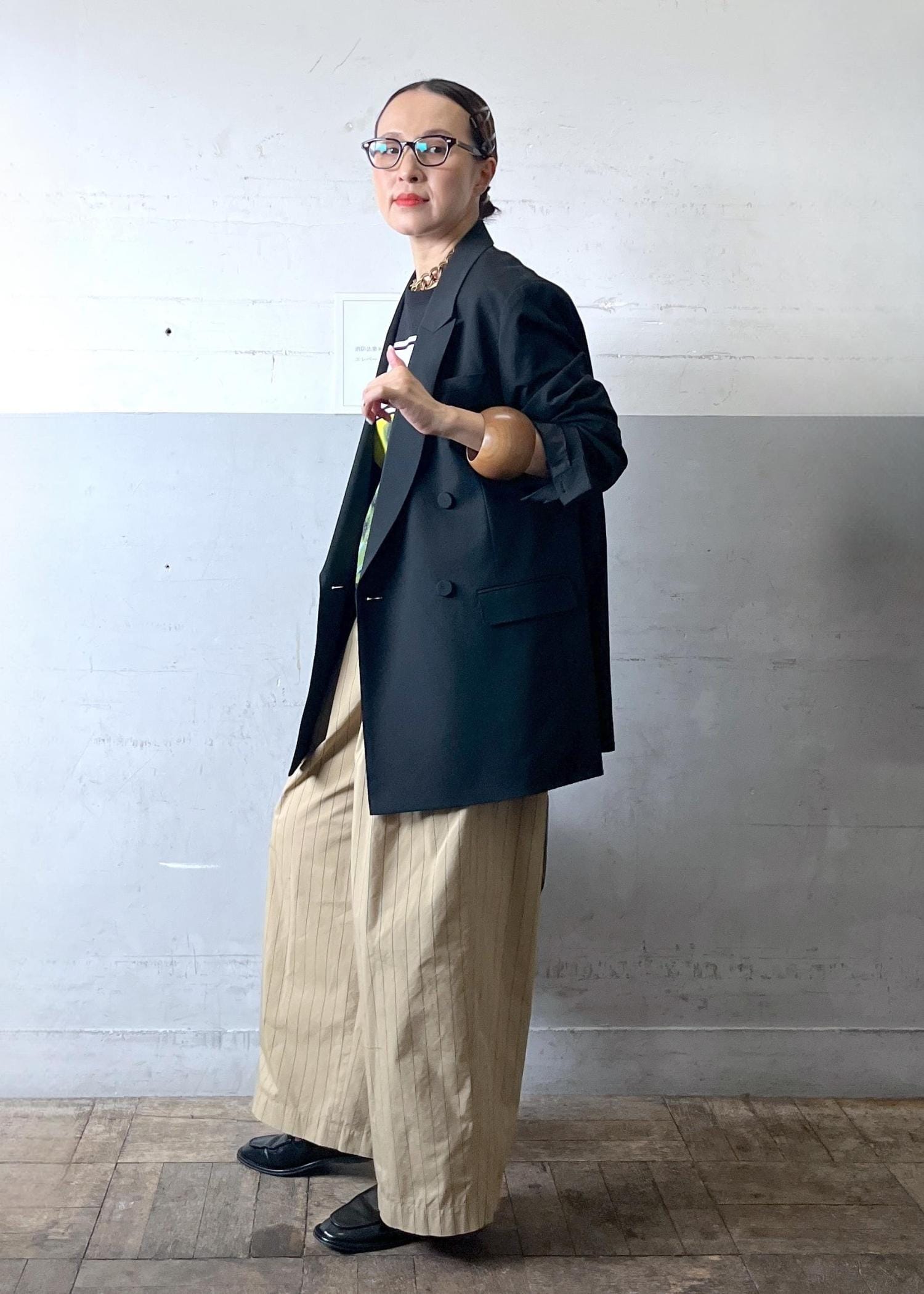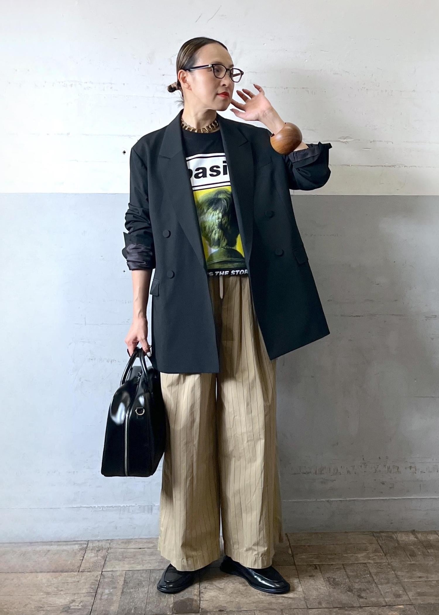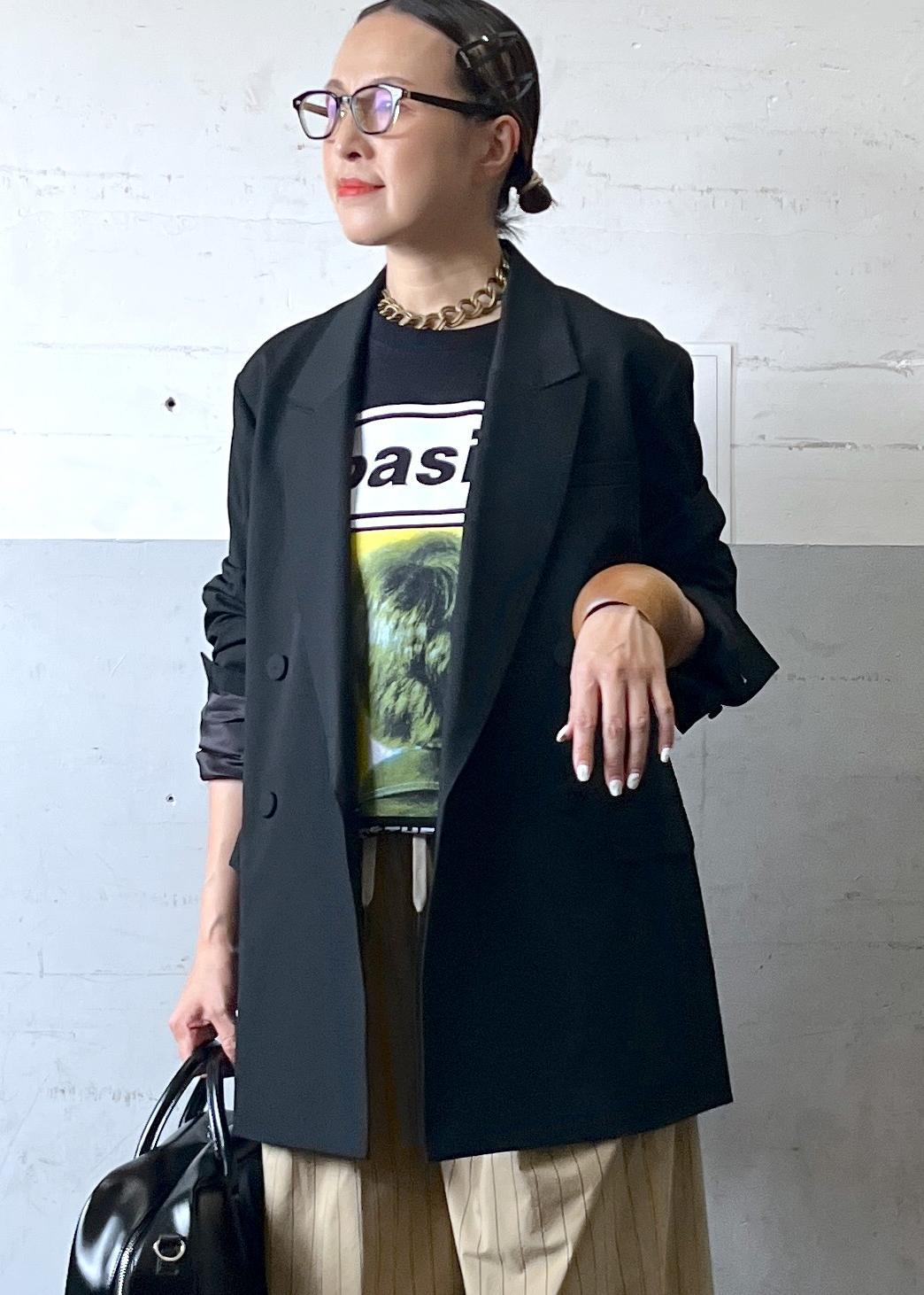 少しオーバーサイズなジャケットの袖はシャツのようにまくって着るとこなれ感がでてオススメです^ ^