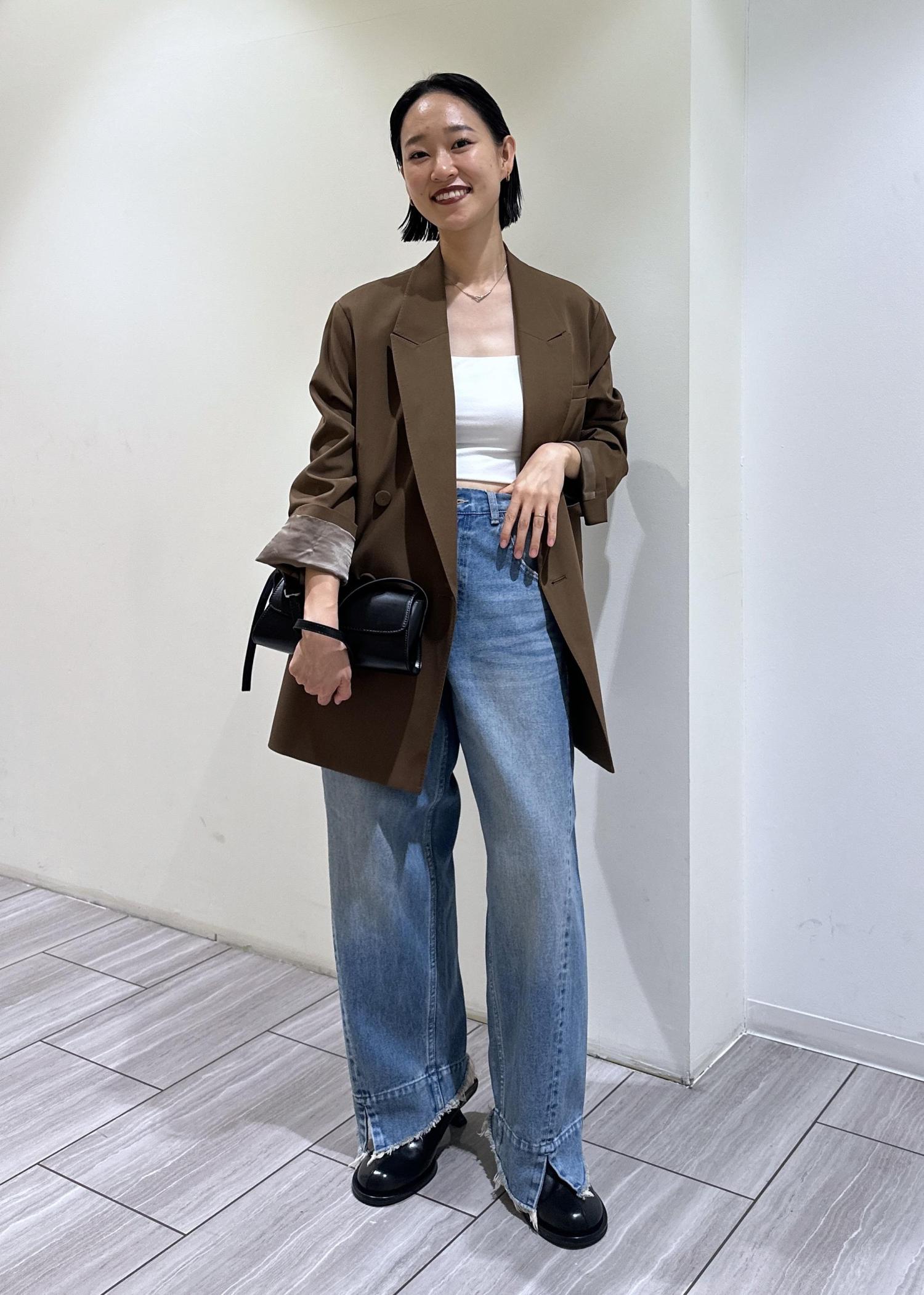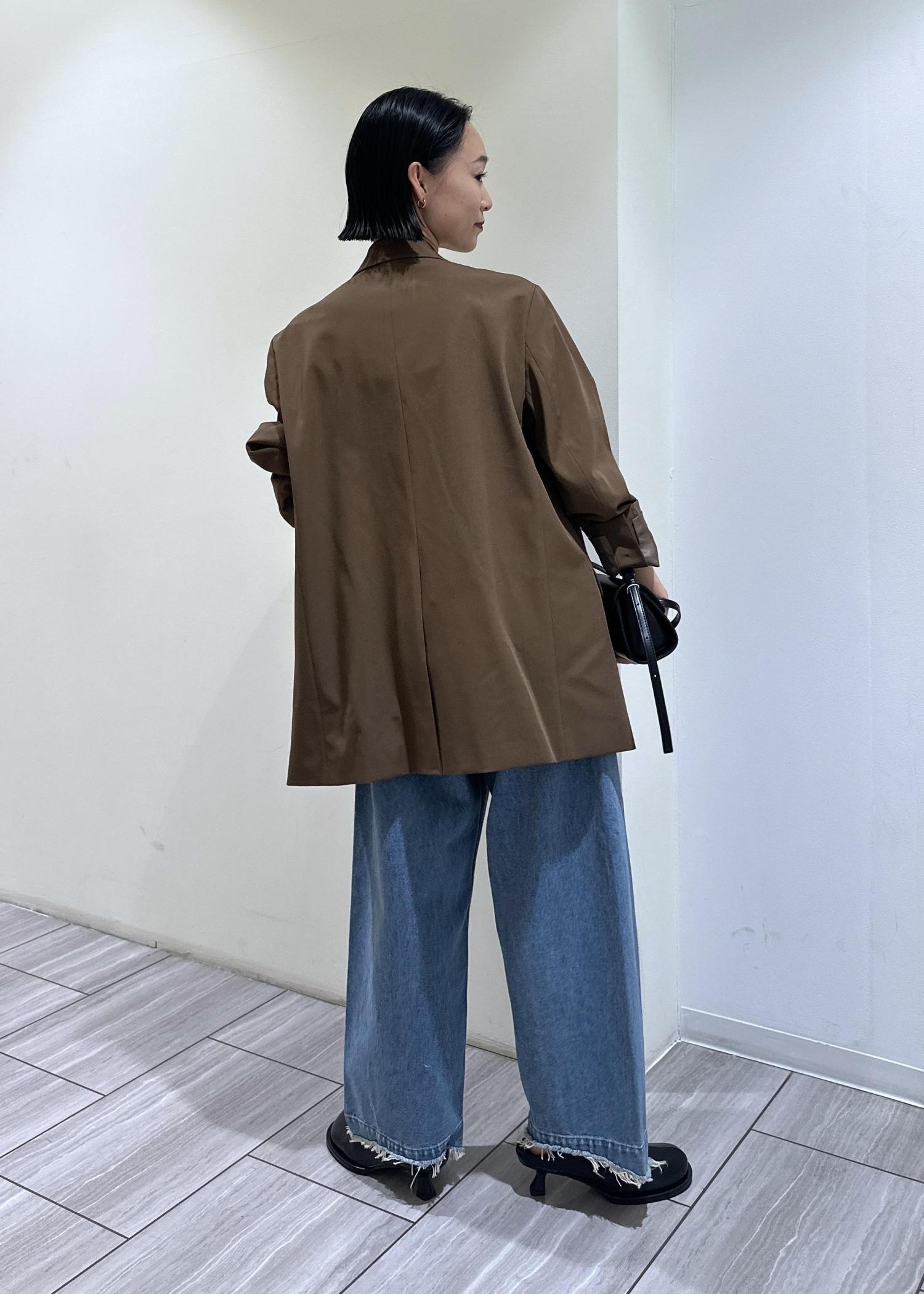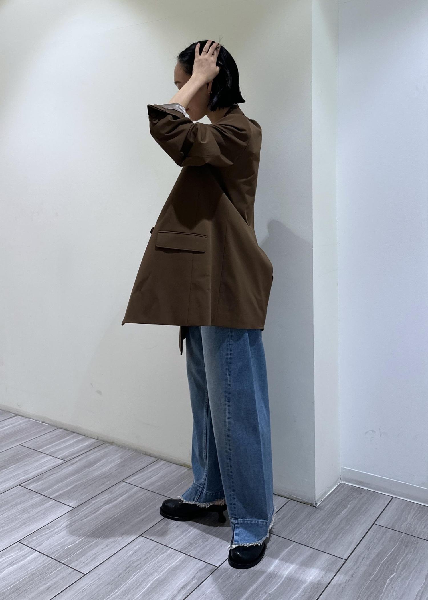 お尻まで隠れる丈のジャケット。夏の時期は、インナーに薄手の物を合わせて軽く羽織るのも◯!秋冬のアウターとしても大活躍間違い無しです!