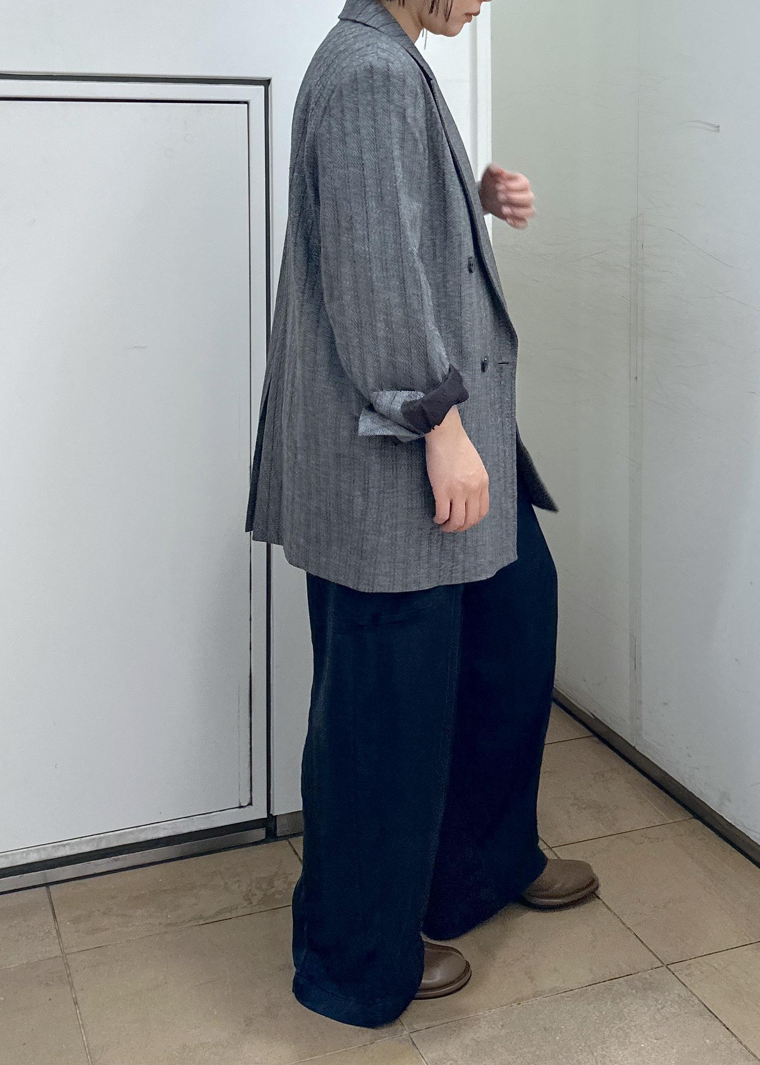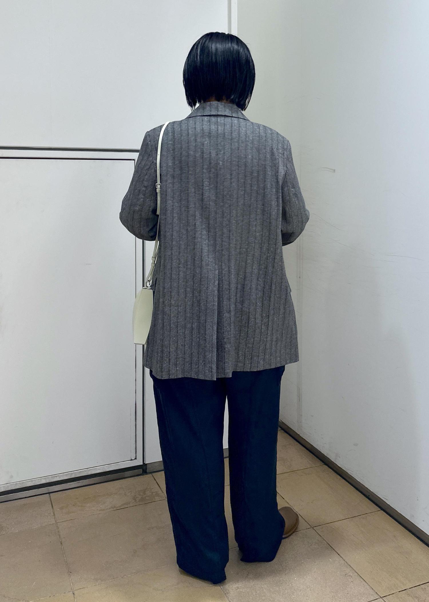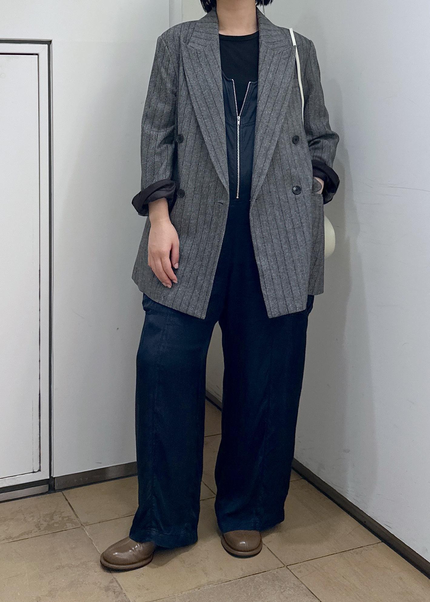 オーバーサイズなので厚手のニットやスウェットの上からでも羽織れるサイズ感です。 -