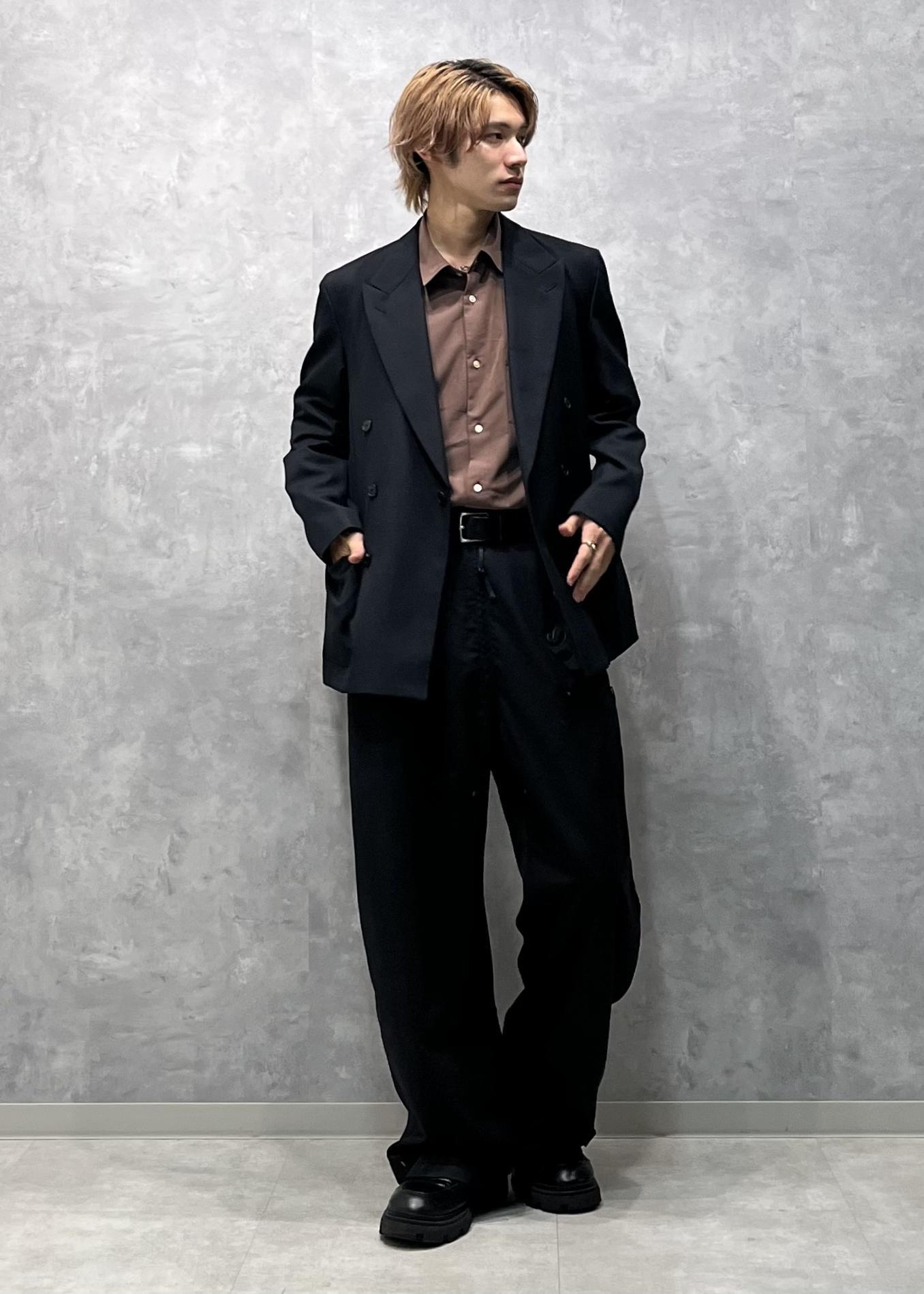 ハードクロスの生地感が品があり全体的にドレスよりにスタイリングしてみました。