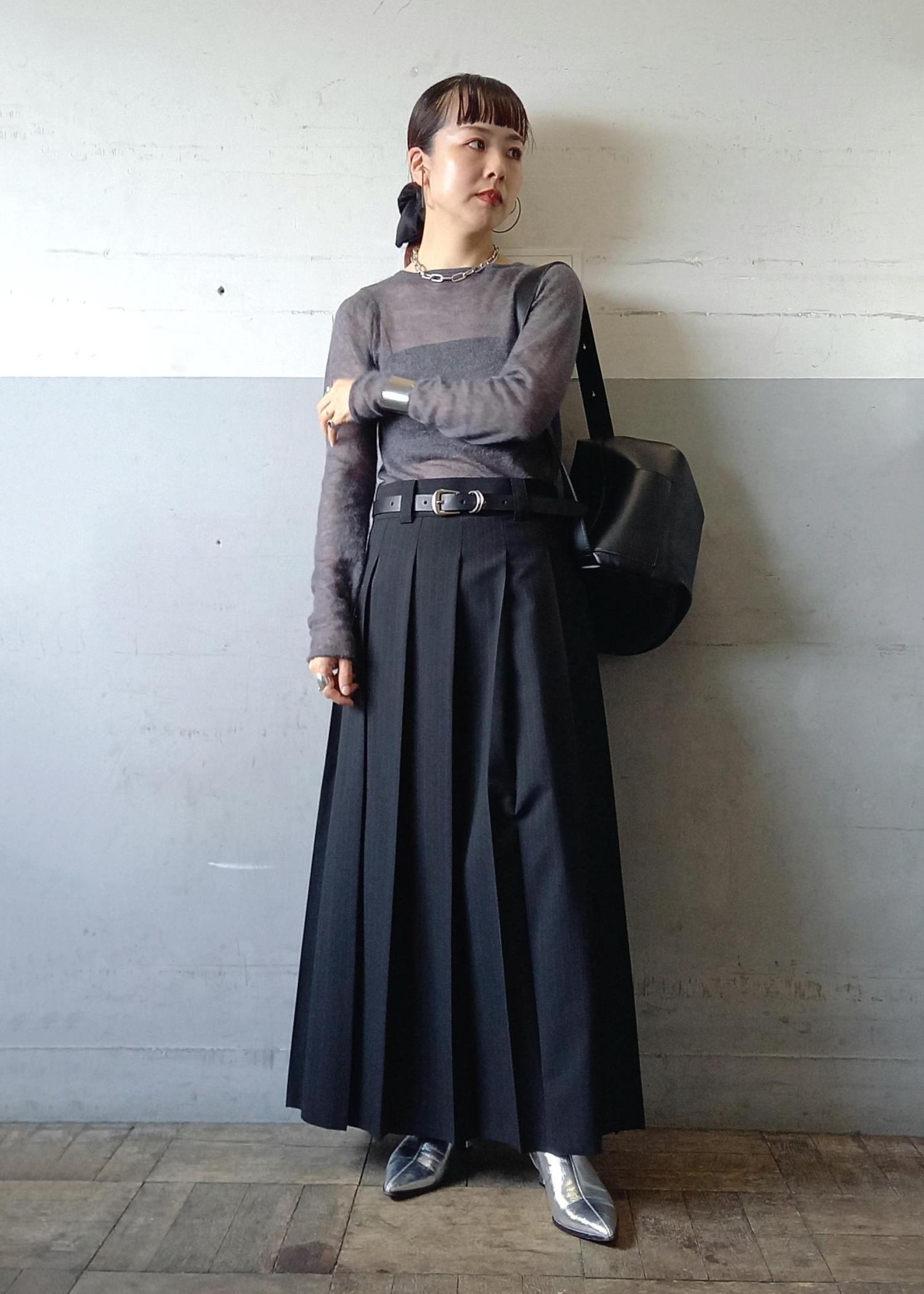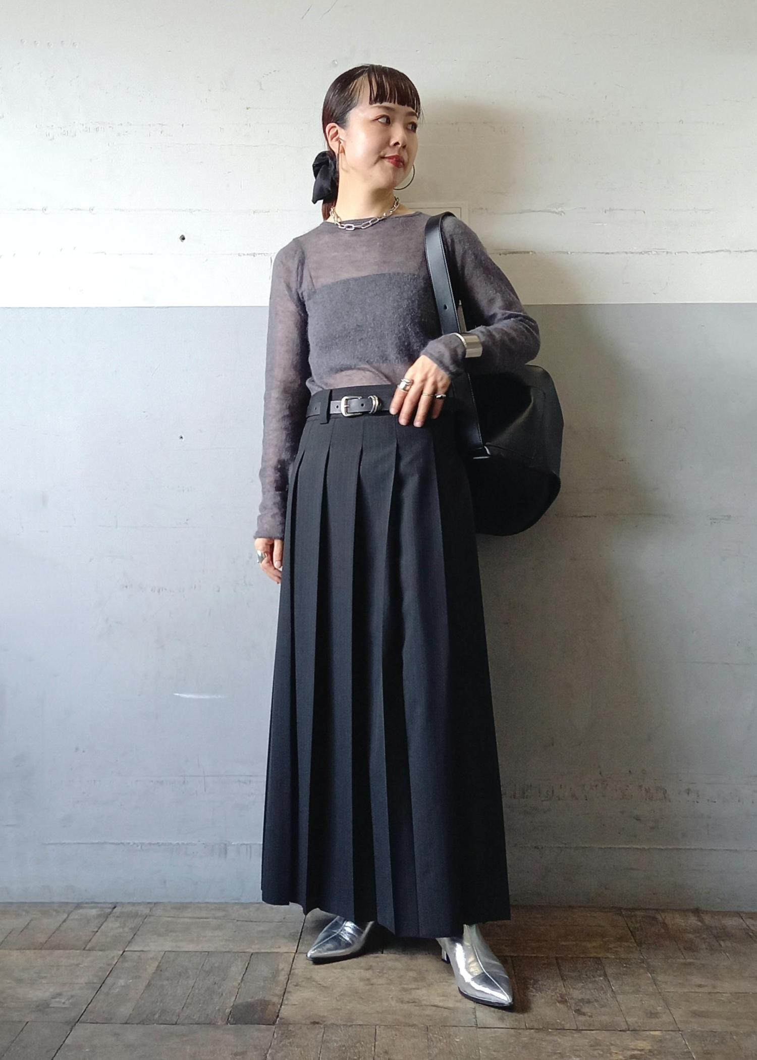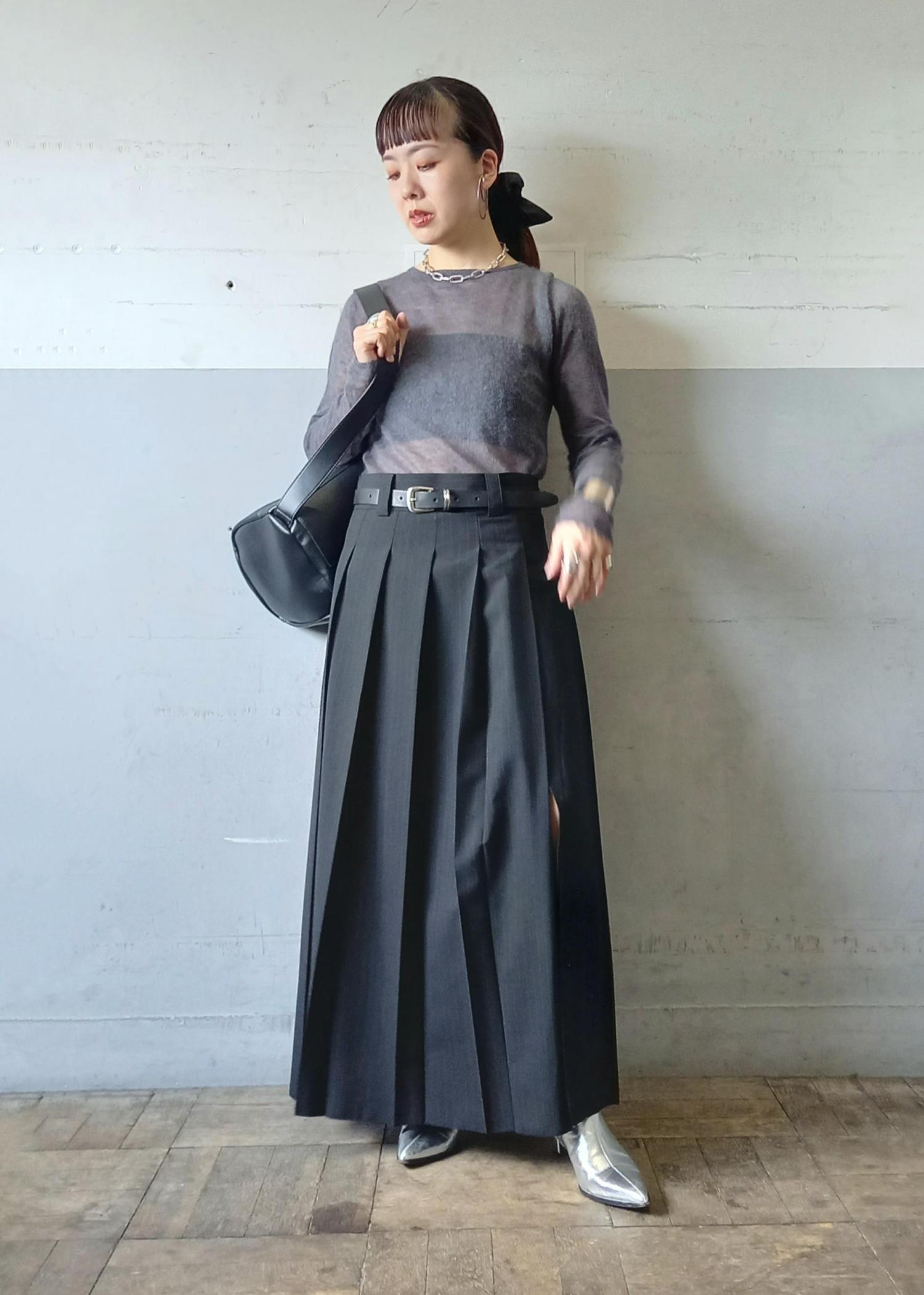フロントのみがプリーツのデザインなので甘くなりすぎず大人なプリーツスカートです◎左斜め前辺りにスリットが施してあり、ほどよい抜け感もまた素敵です!