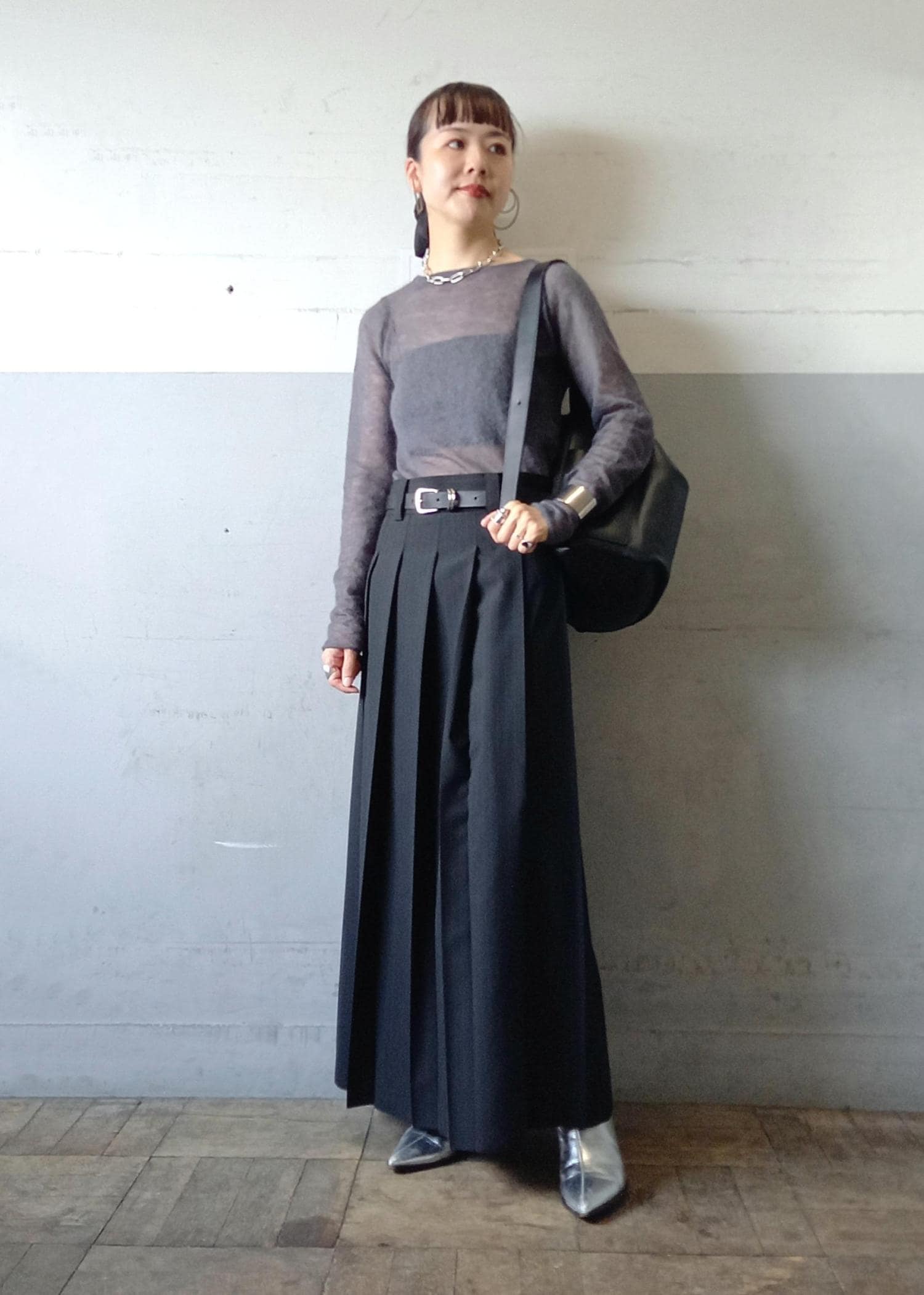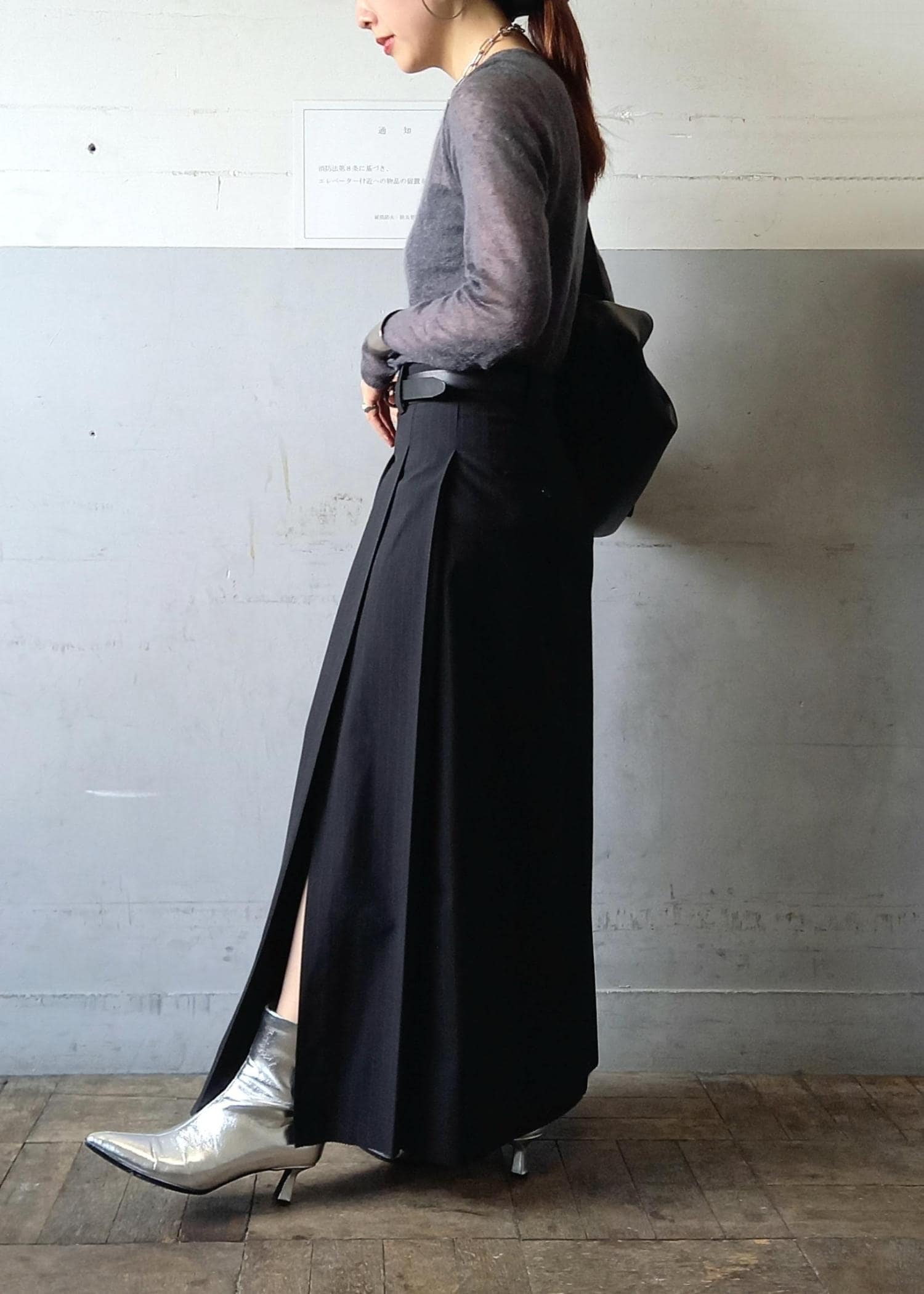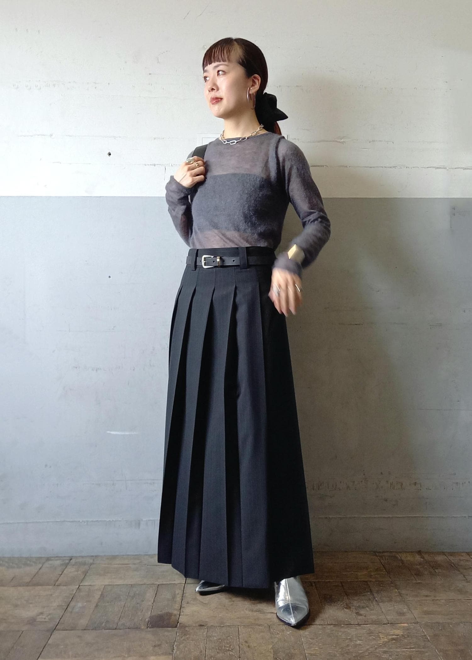 フロントのみがプリーツのデザインなので甘くなりすぎず大人なプリーツスカートです◎左斜め前辺りにスリットが施してあり、ほどよい抜け感もまた素敵です!