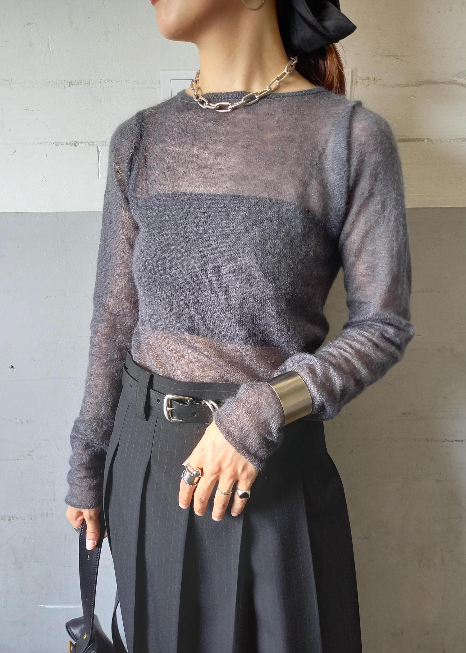 シアーな透け感のあるキッドモヘアで、キャミソールやロゴTEEなどの合わせ方次第でかなり着回し効きます✨