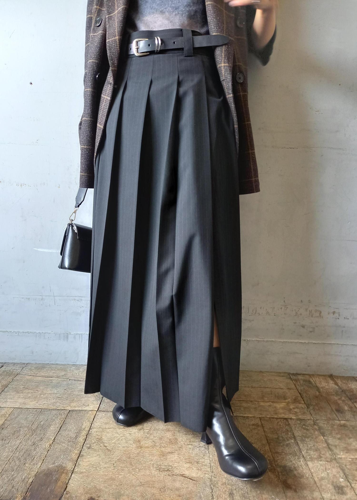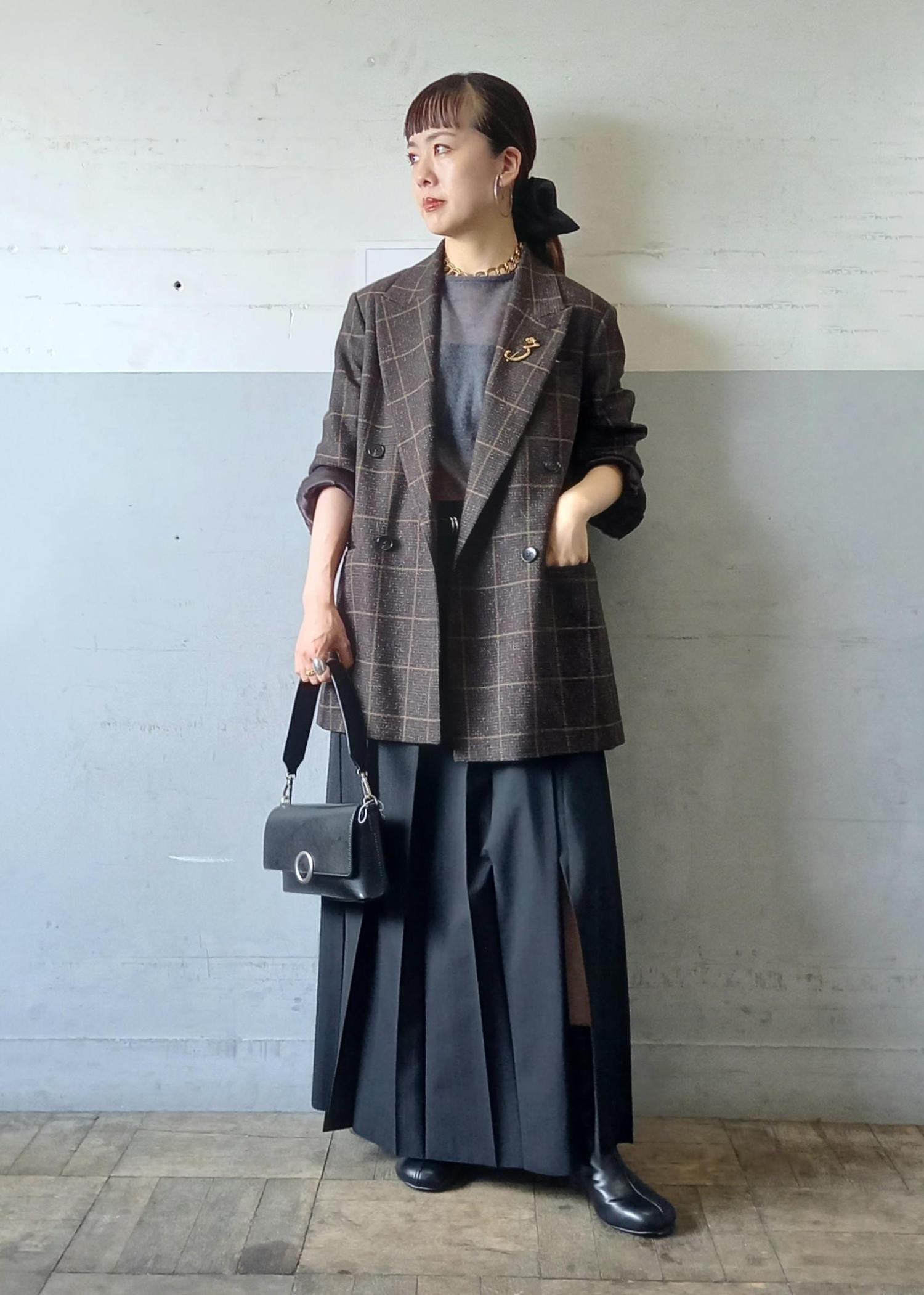 EMOELLE【EMOELLE】フロントプリーツスカートブラック系 / 36¥29,700レビュー158㎝で36サイズ着用。ウエストは36サイズでも少し大きめなので私は腰穿きにしています。