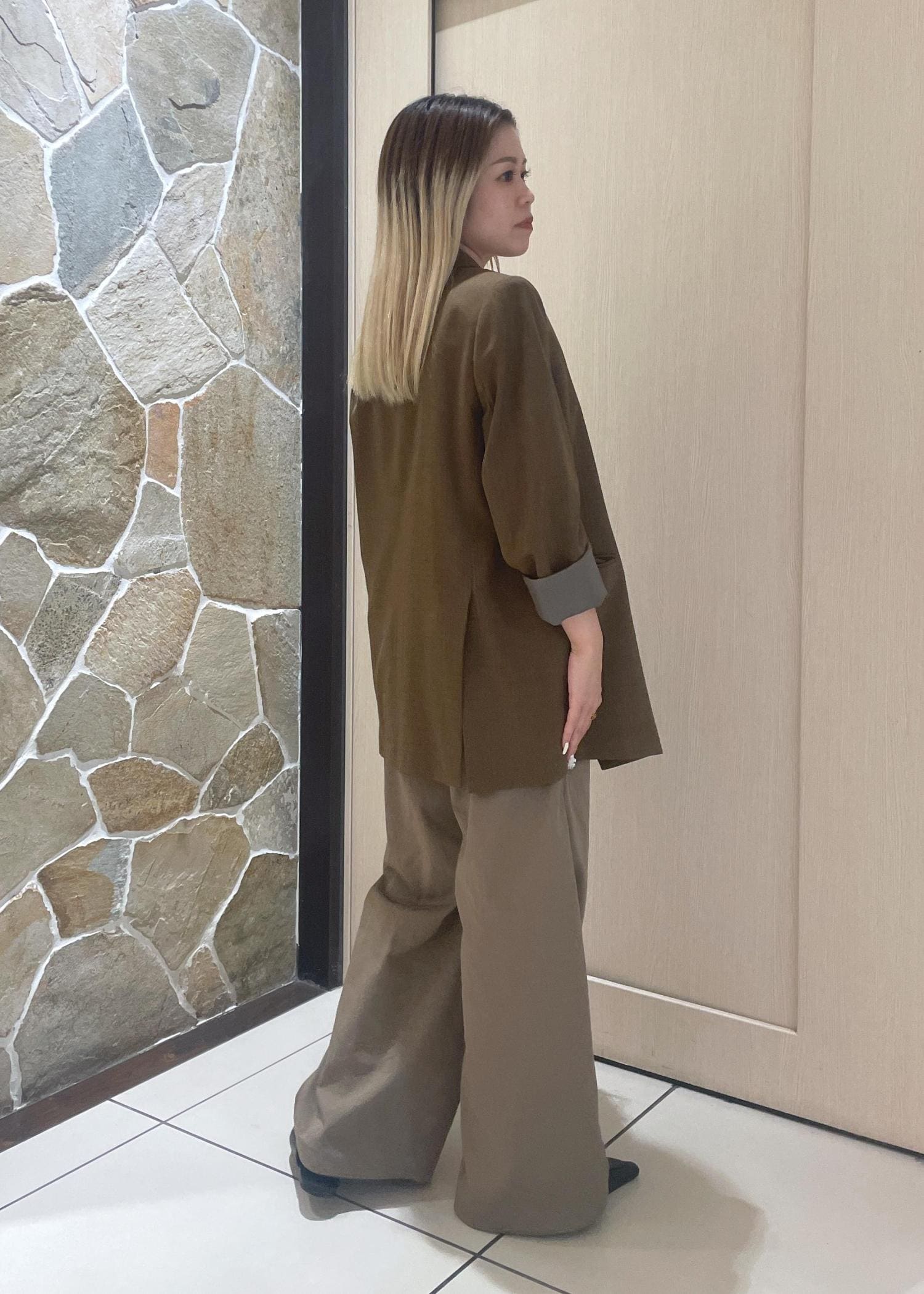 デニムに合わせてもカジュアルにしても、キレイな格好の羽織としても使いやすいです◎ -
