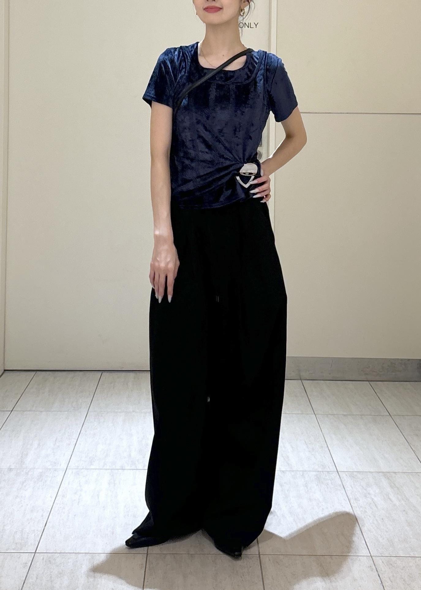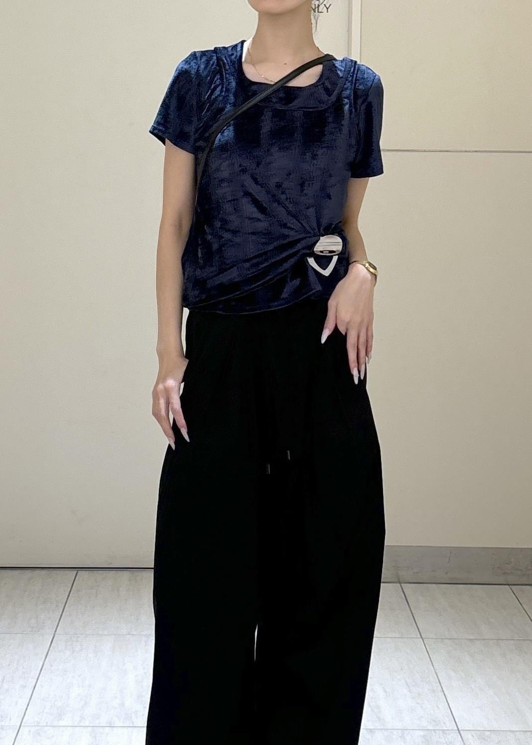 アウトレットADAM ET ROPÉ FEMME【Miller for ADAM ET ROPE'】別注 ベロアスクエアTeeネイビー / F¥3,795レビュー伸縮性のある素材感でコンパクトなシルエットですが、程よくゆとり感はあるので、バランスの良い一枚です。