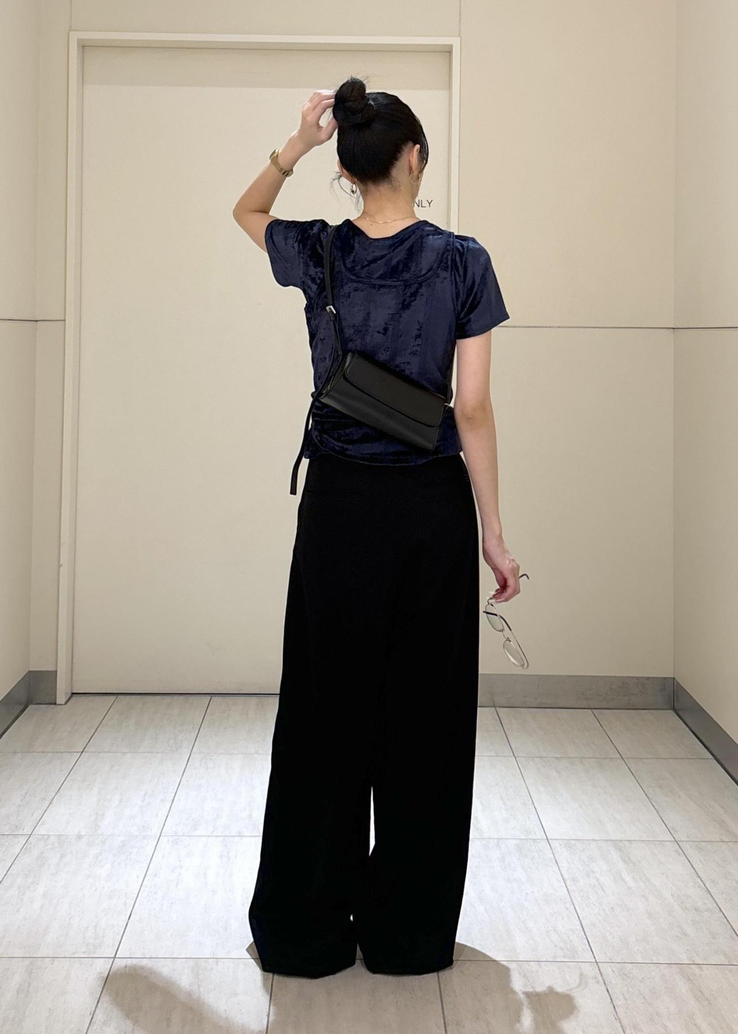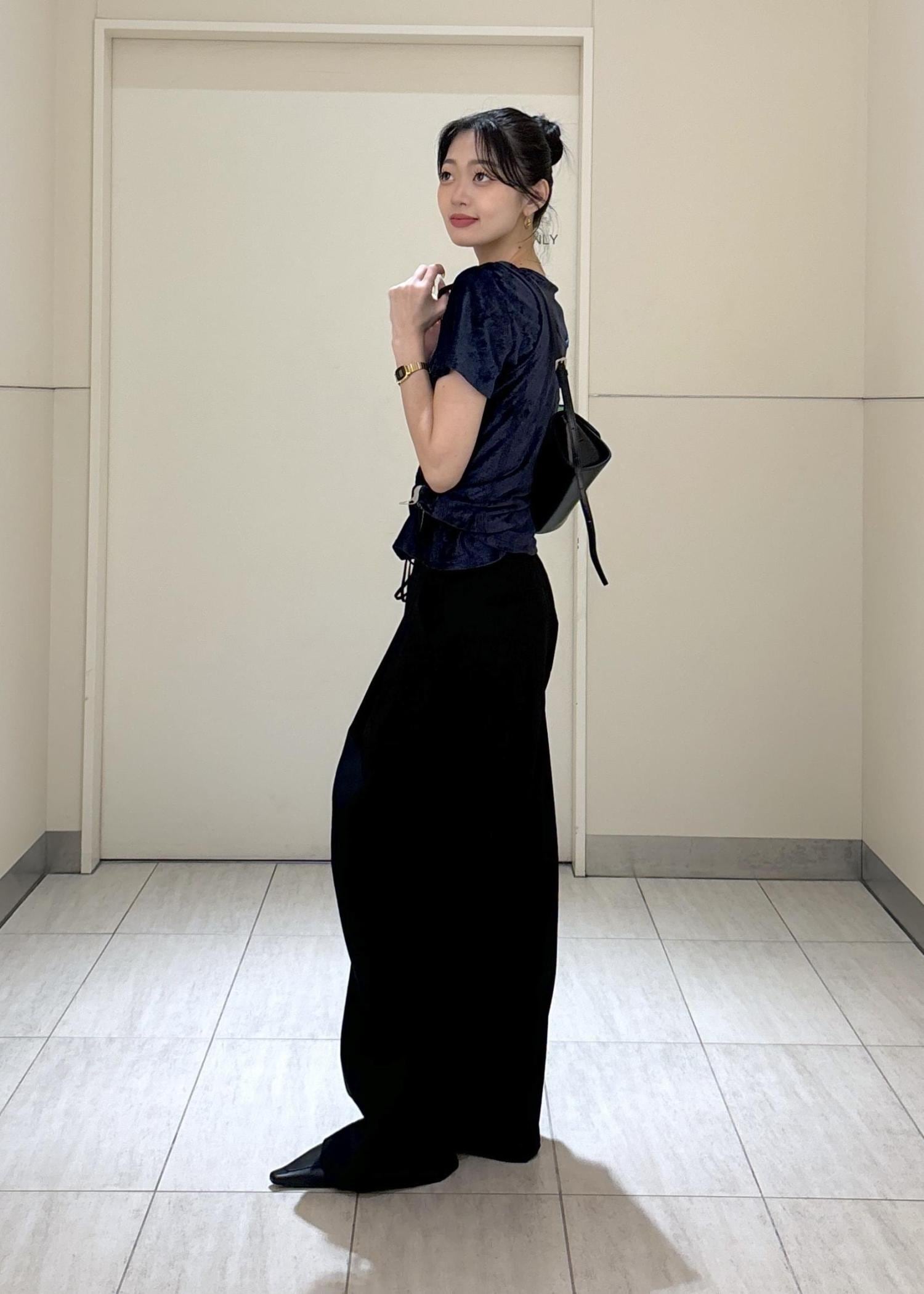 ADAM ET ROPÉ FEMMEドロストドカンパンツブラック / 36¥24,200レビュー丈感やウエスト周りも普段のサイズよりも少し大きめでした。ウエストの調節も可能なので◎