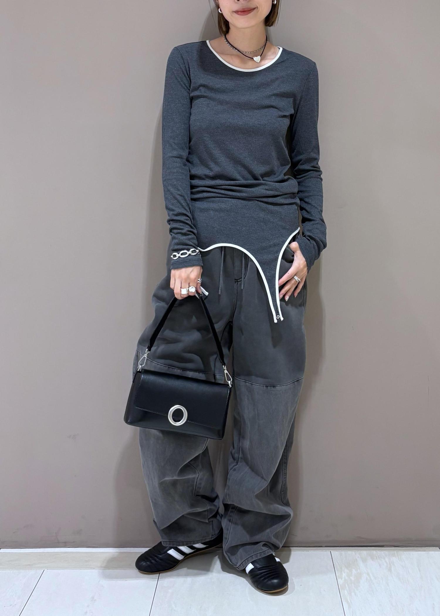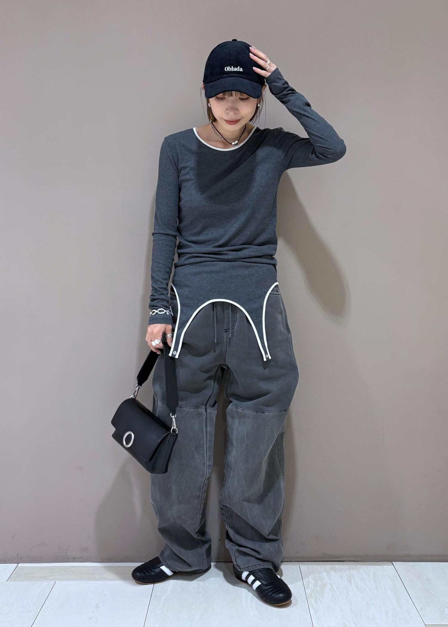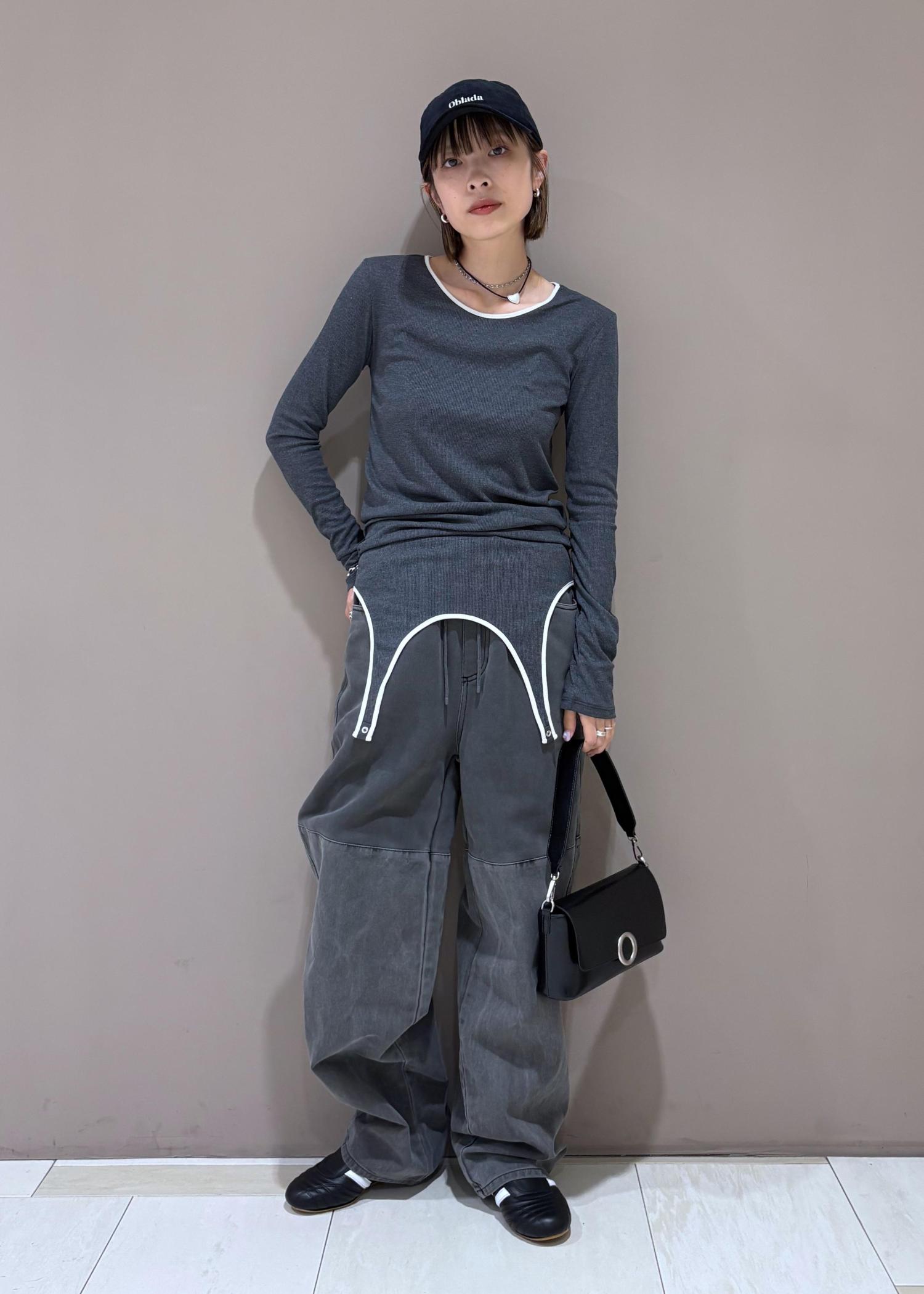 ADAM ET ROPÉ FEMME【AMOMENTO for ADAM ET ROPE'】別注DRAWSTRING DENIM PANTSチャコール / S¥30,800レビュー162cm、Sサイズ着用。