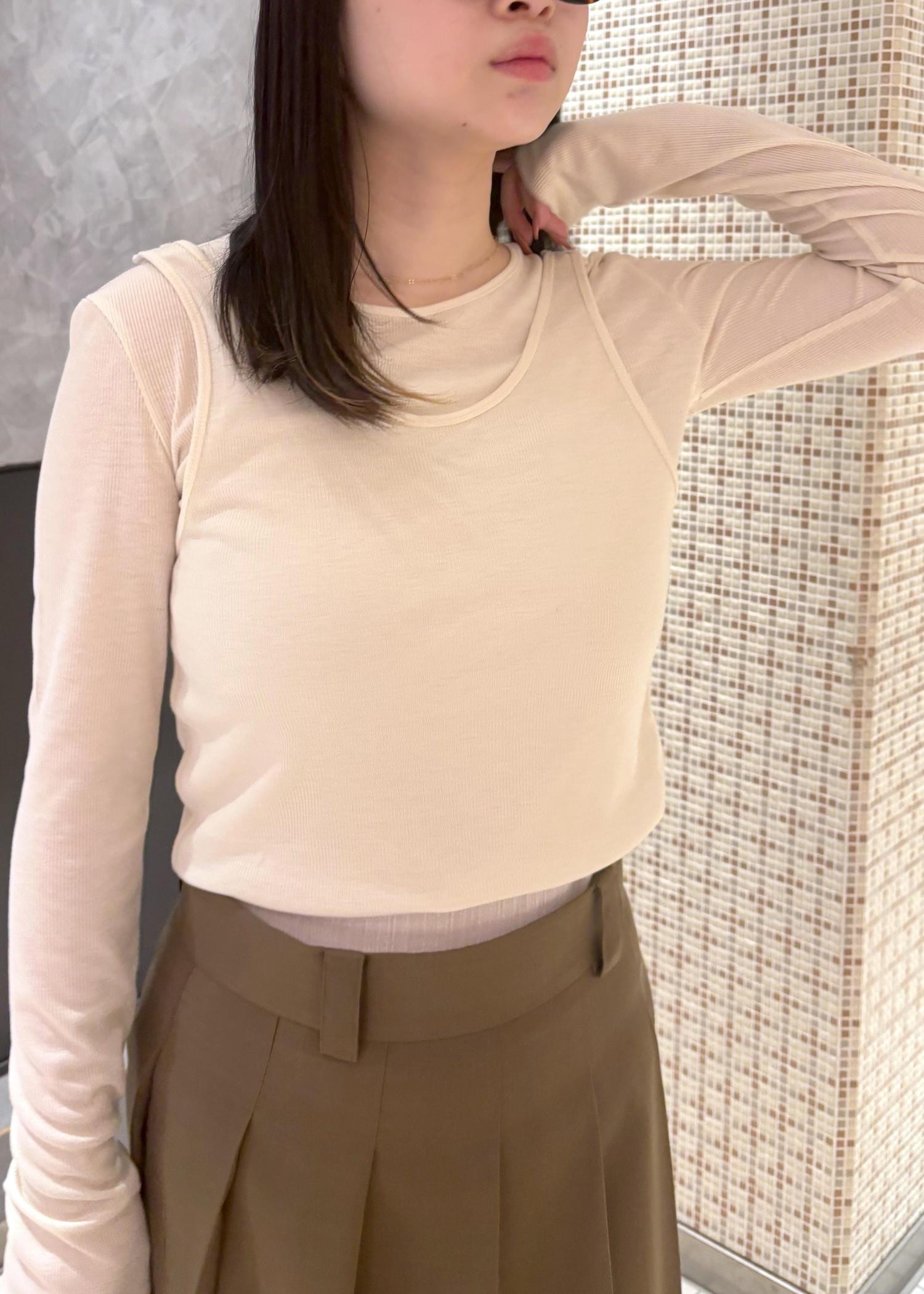 ADAM ET ROPÉ FEMME【サステナブル】タンクレイヤードトップスオフホワイト / F¥13,200レビュータンクトップをレイヤードしているようなトップスでスナップを外して着てもトレンド感のある仕上がりに☺︎