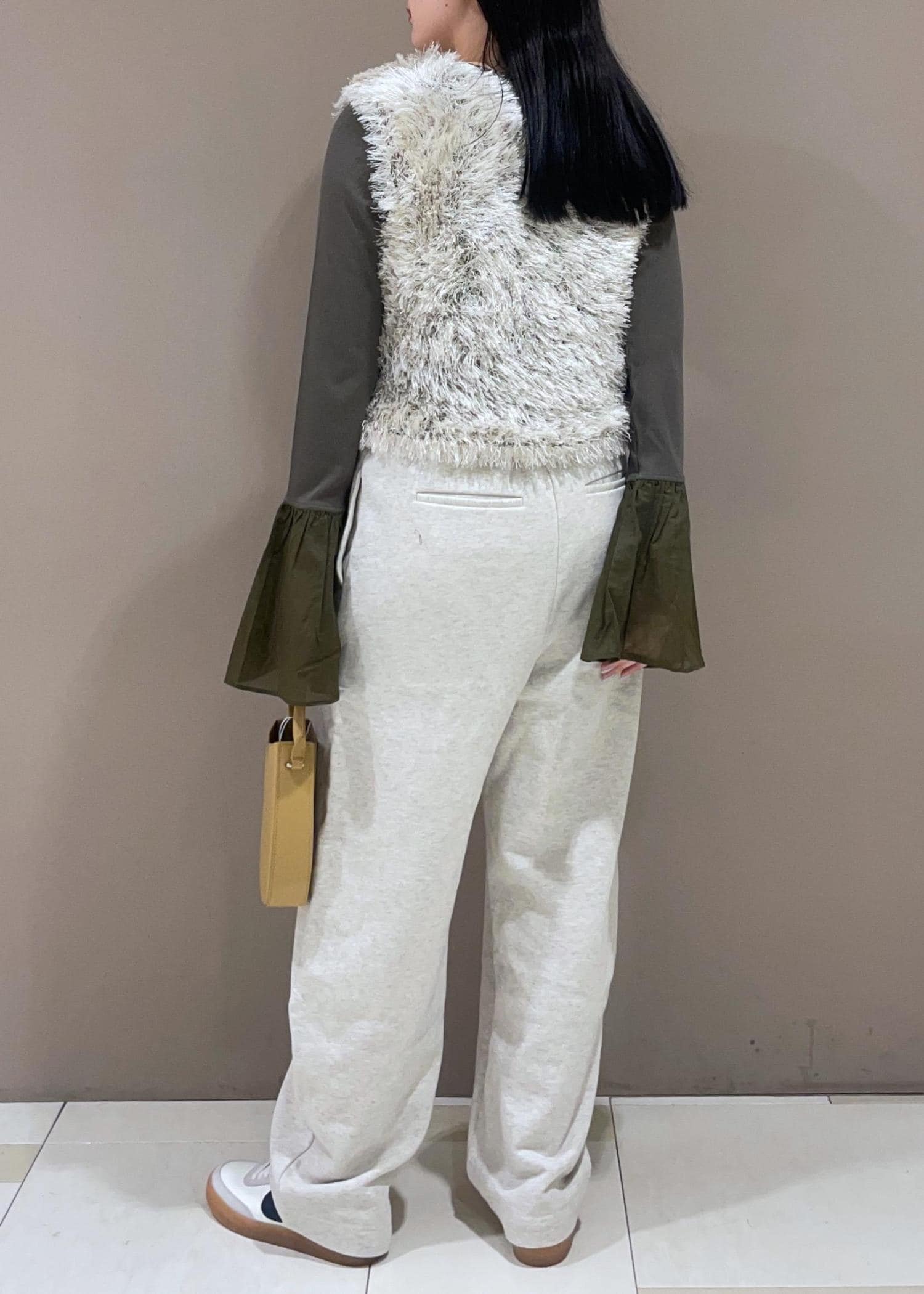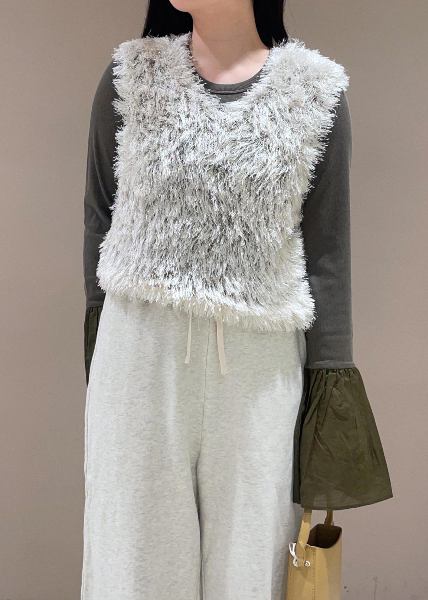 ADAM ET ROPÉ FEMMEフェザーベストキナリ系 / F¥13,860レビュー伸縮性あり◎ゆったりシルエットなので、インナー困らず着用できました!これ一枚でコーディネートを華やかにしてくれます◎