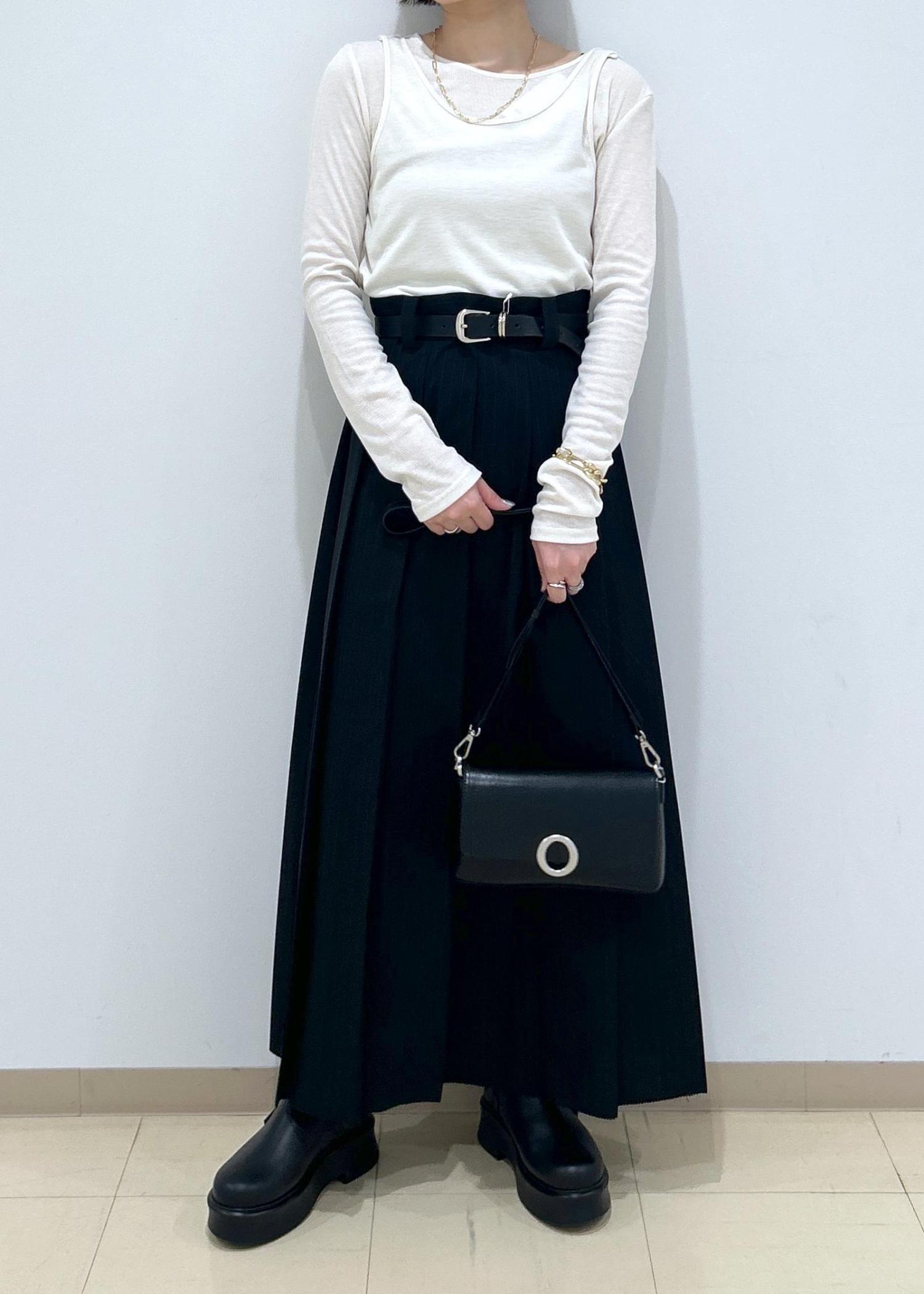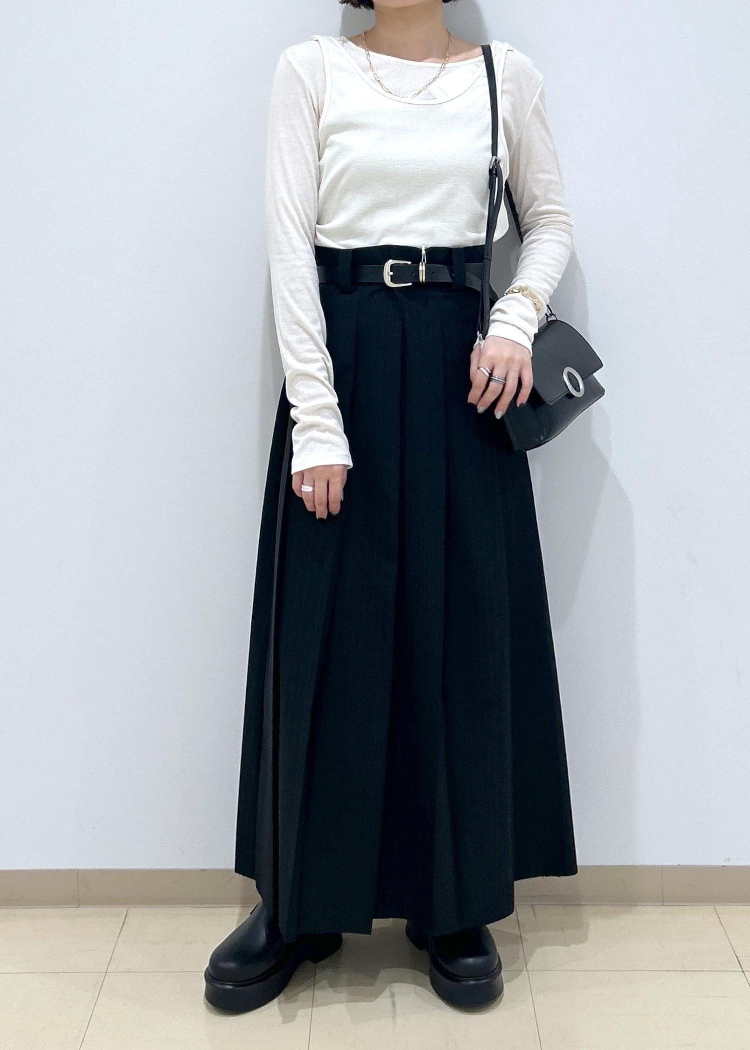 EMOELLE【EMOELLE】フロントプリーツスカートブラック系 / 36¥29,700レビューフロントのみプリーツで、スリットが深めに入っています。