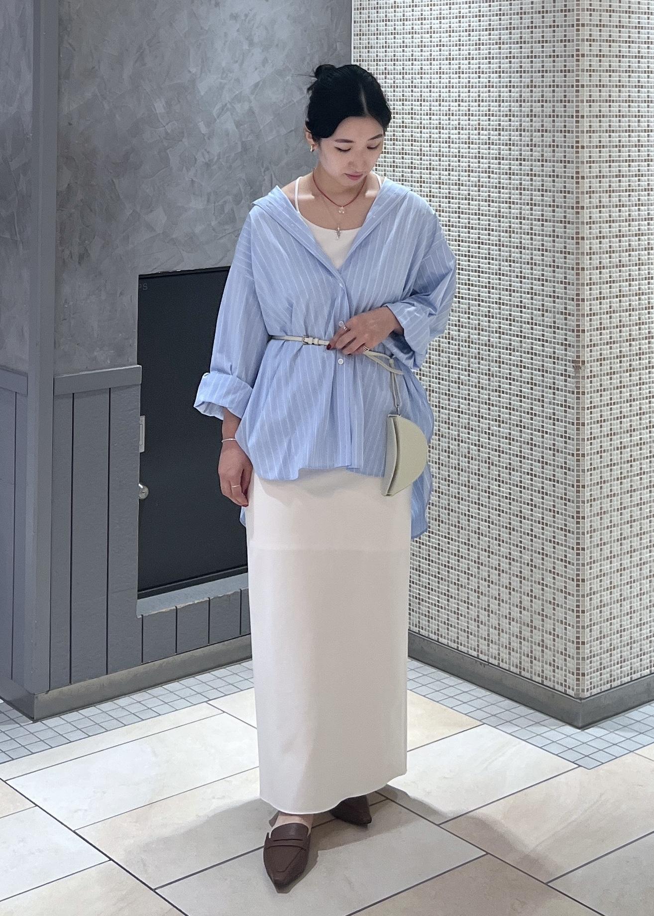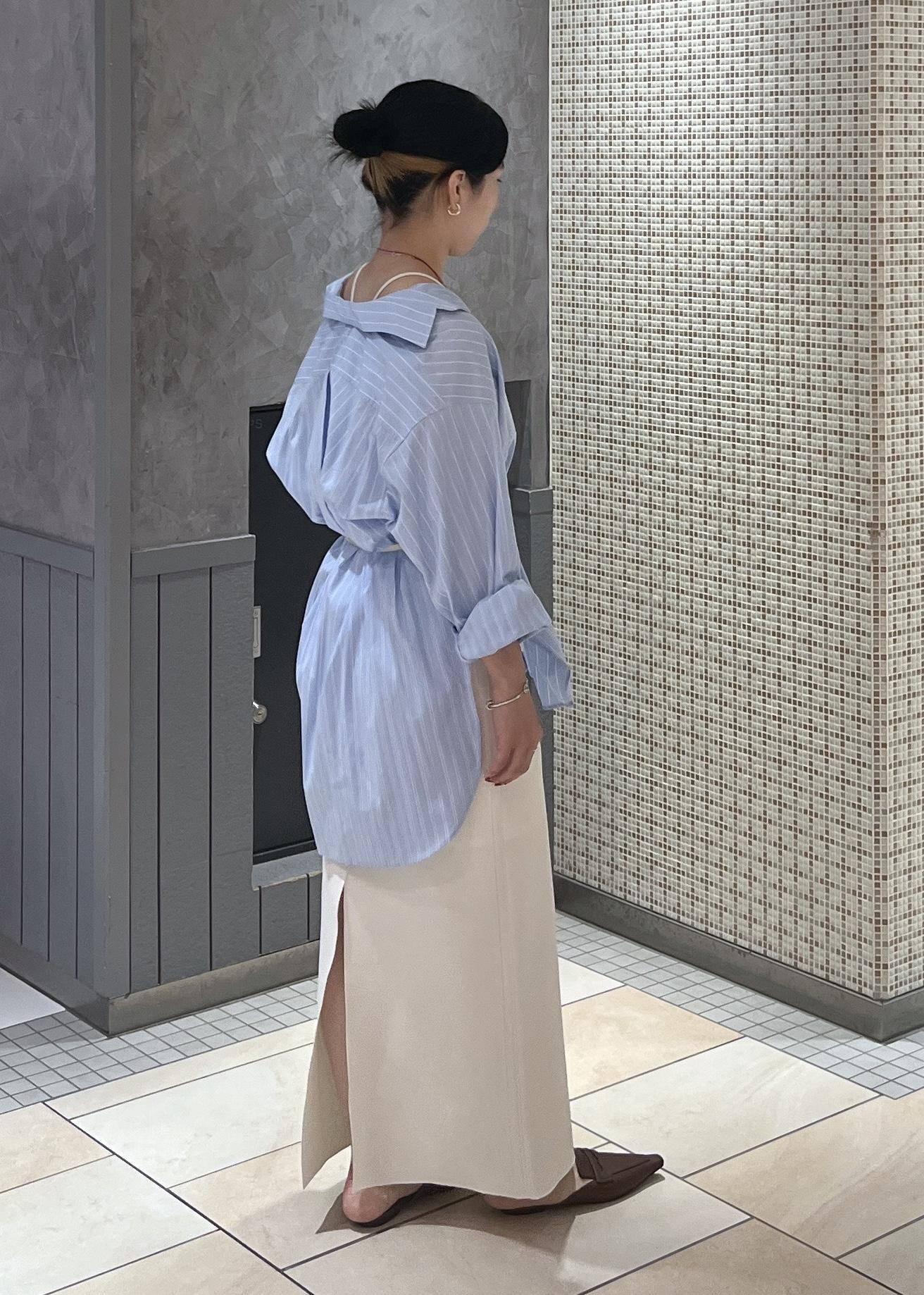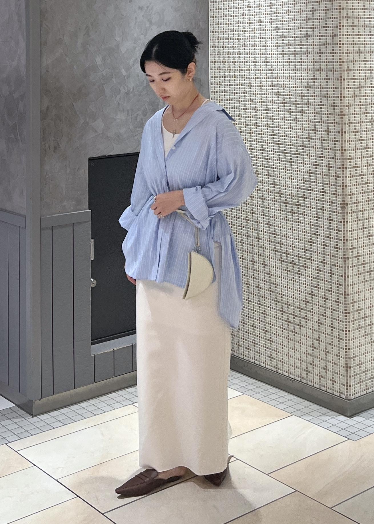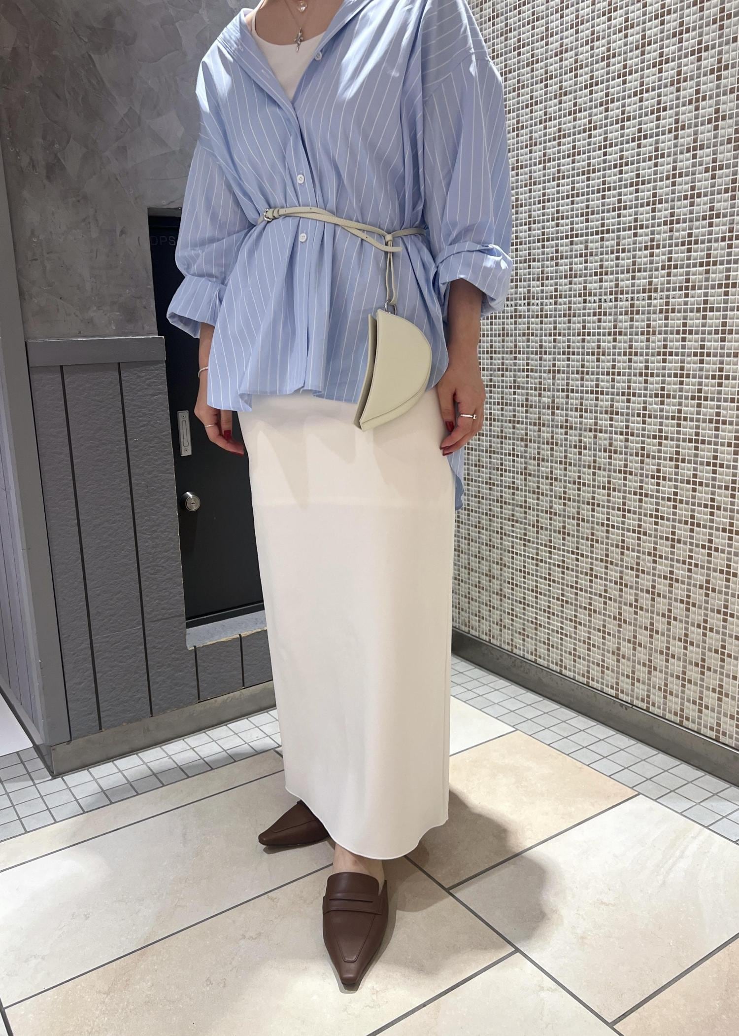 EMOELLE【EMOELLE】バックスリットIラインロングスカートホワイト / 38¥26,400レビュー少し肉厚感のある生地感で程よくフィットするサイジングです。丈感も162cm38着用で程よい感じです。ホワイトでも透け感はあまりなく、インナーのカラーだけ気をつけて頂ければ◎です♪