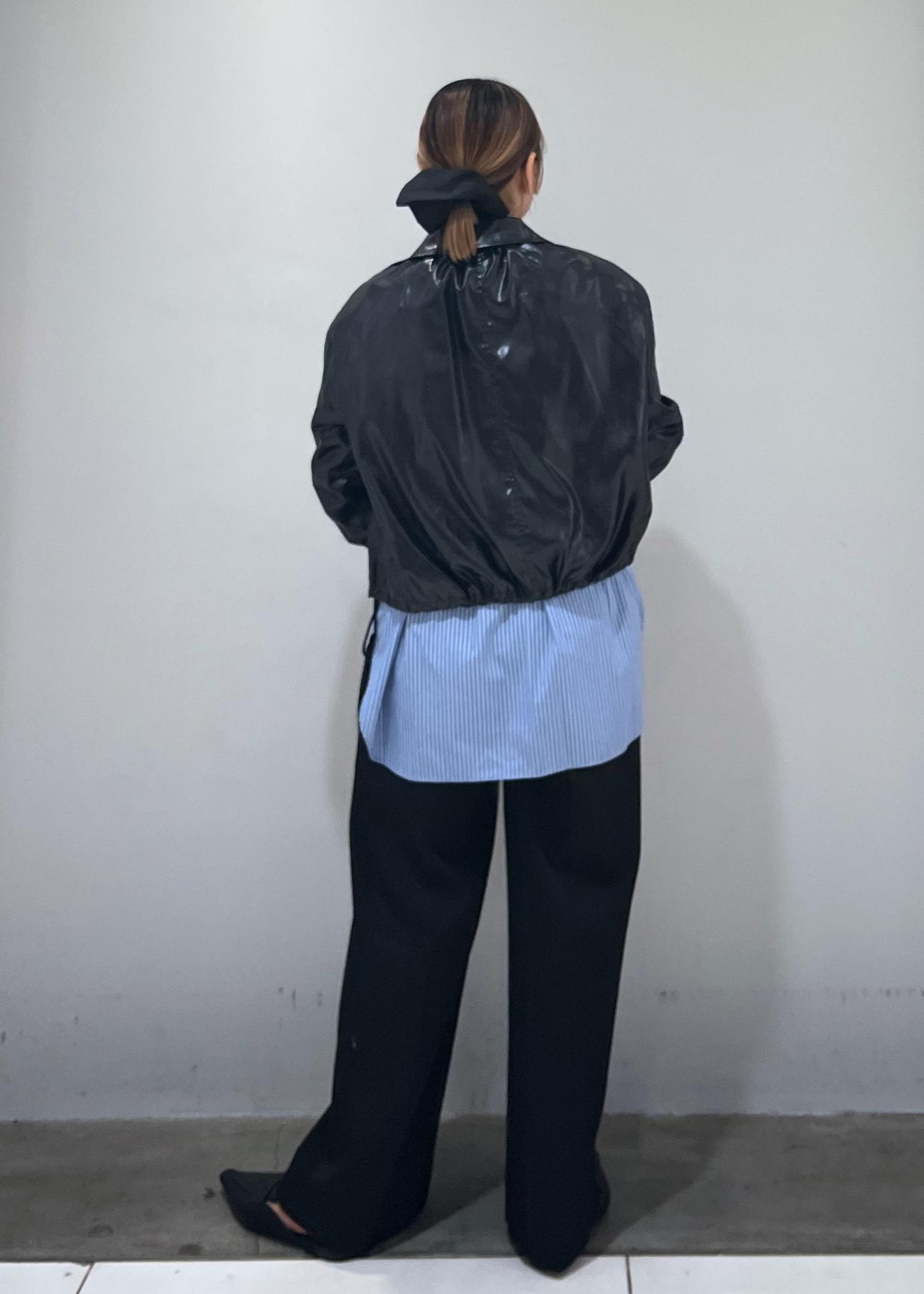 ADAM ET ROPÉ FEMMEレザーライクサテンブルゾンブラック / F¥15,840レビュー少し短い丈感で、薄めのツルッとした素材感です。軽くて持ち運びにも最適です!