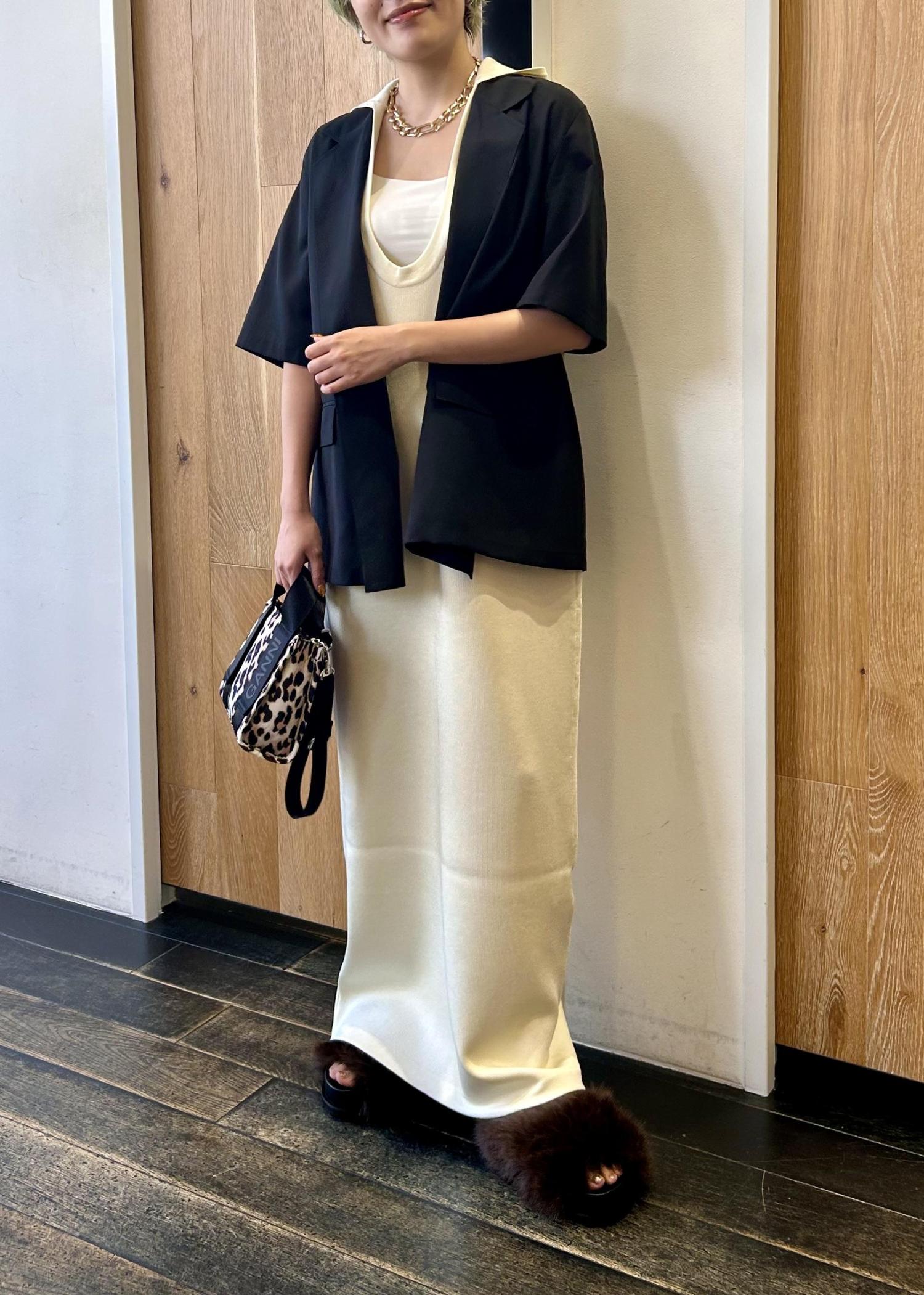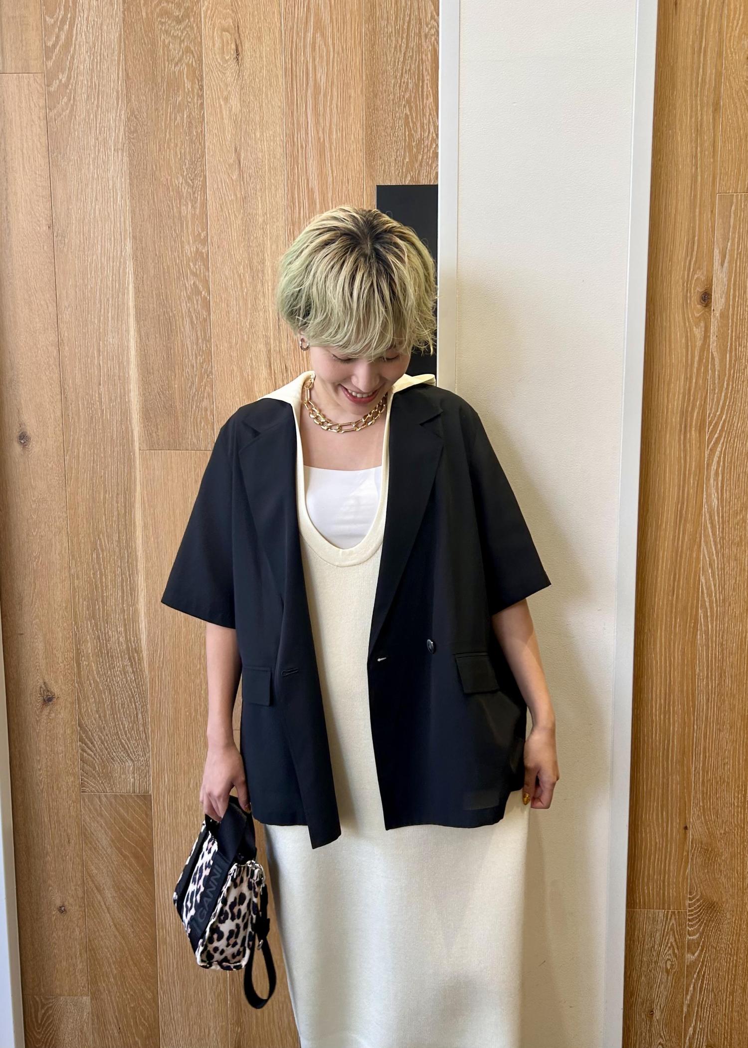 襟ぐりが大きいのでインナー次第で様々な着方ができます。