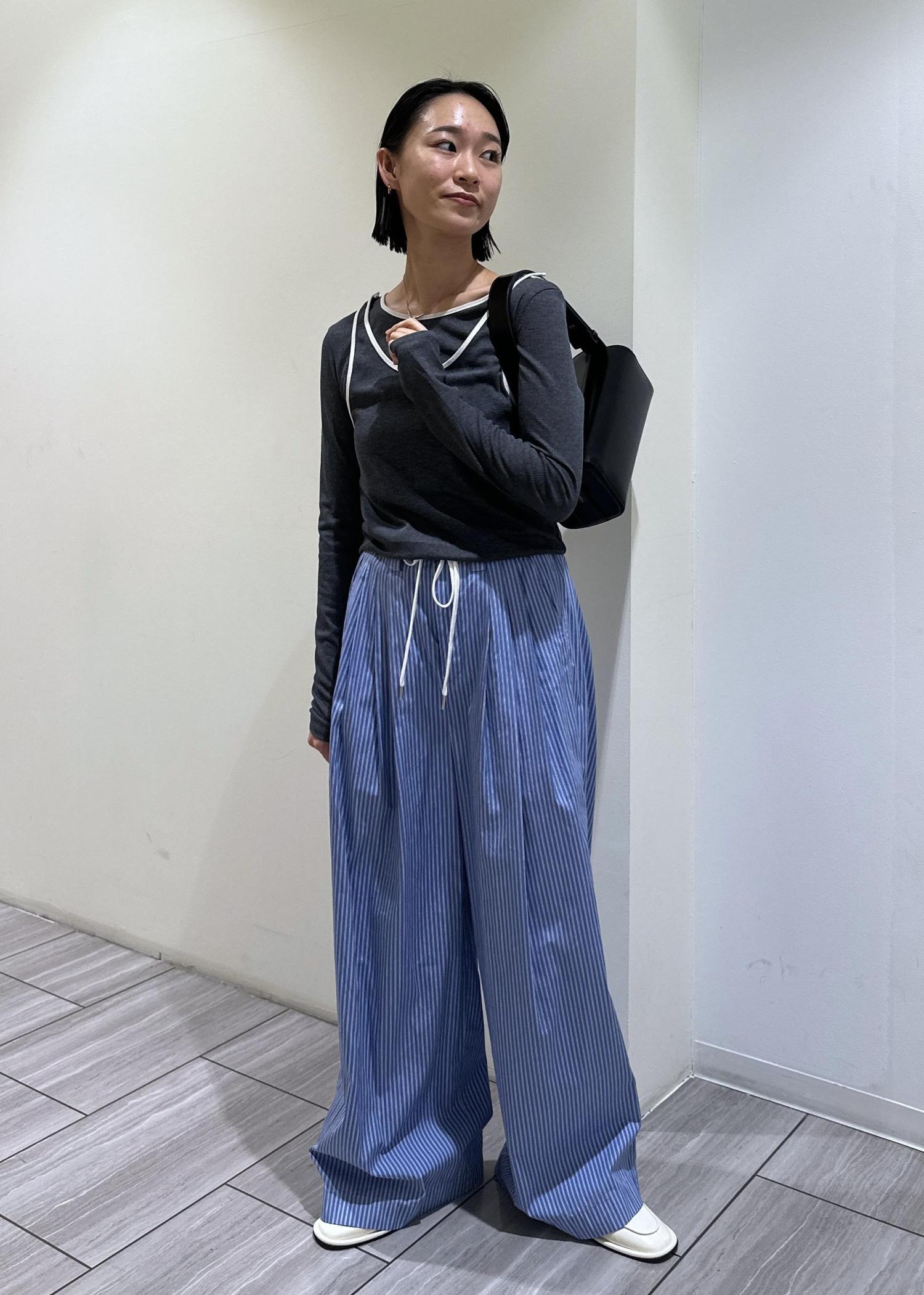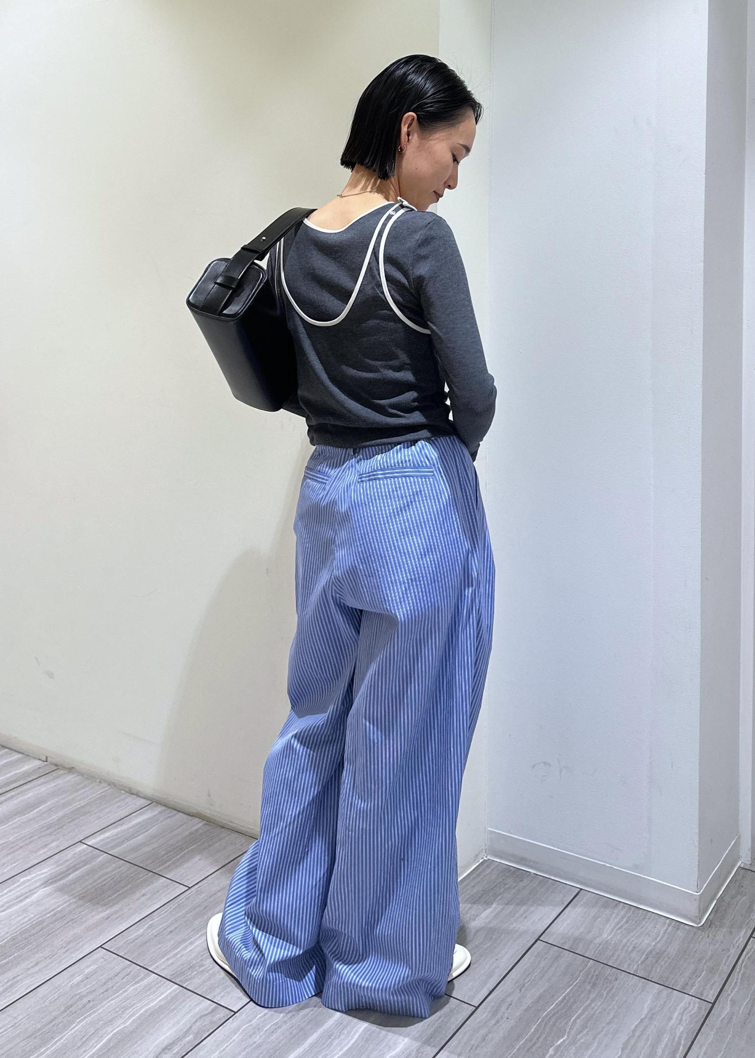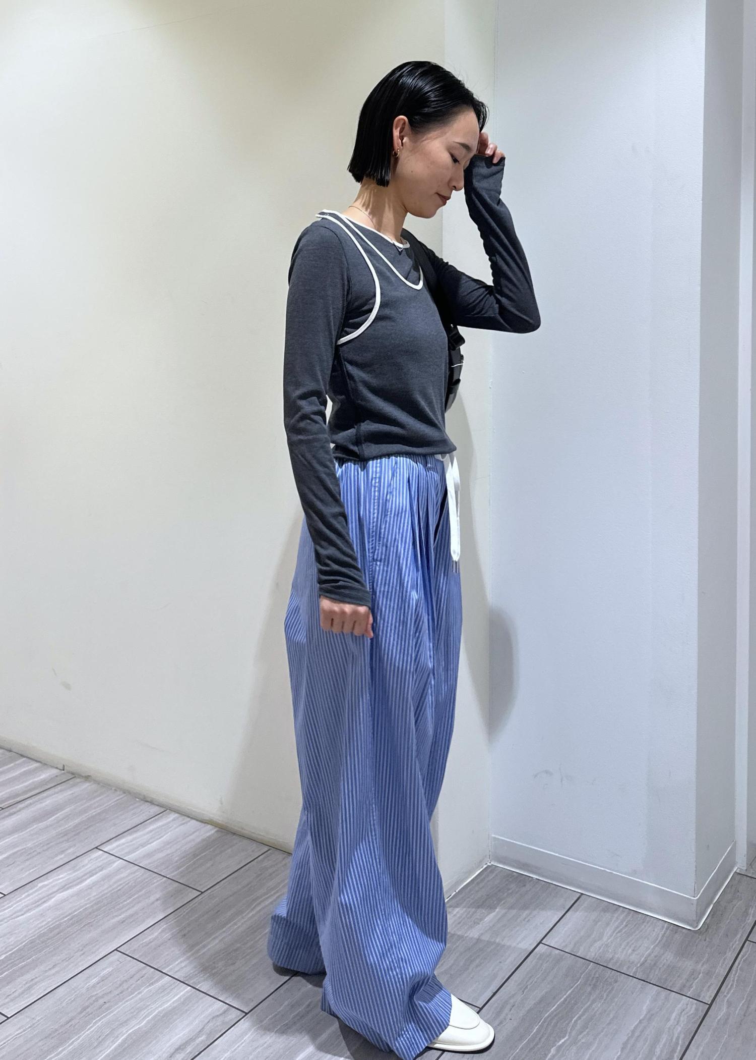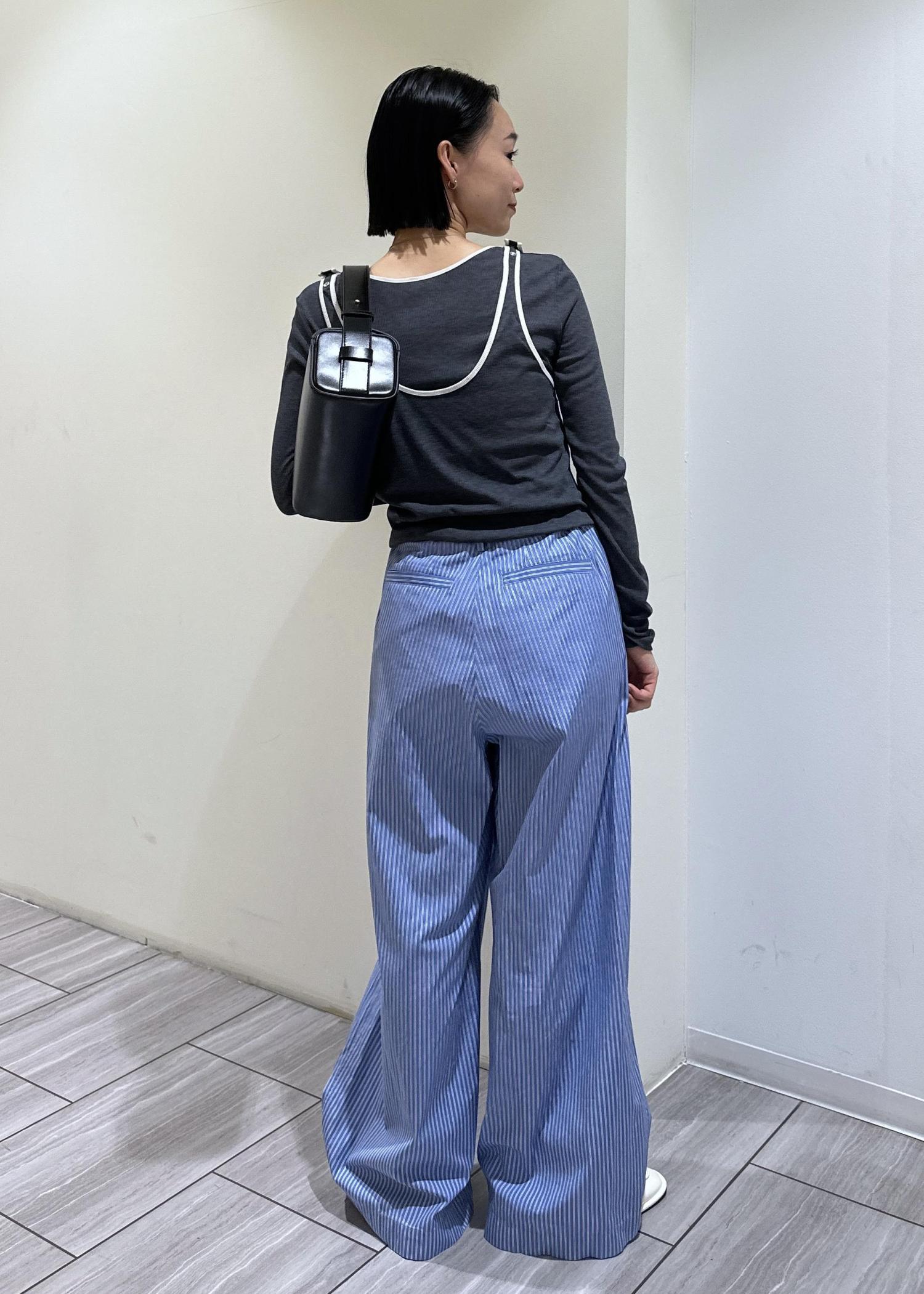 ADAM ET ROPÉ FEMMEシャツスラックスサックス / 36¥25,850レビューシャツ素材のパンツ。しっかりワイドなシルエットで綺麗とカジュアルを兼ね備えた優れもの。ウエストは紐で調節出来ます!