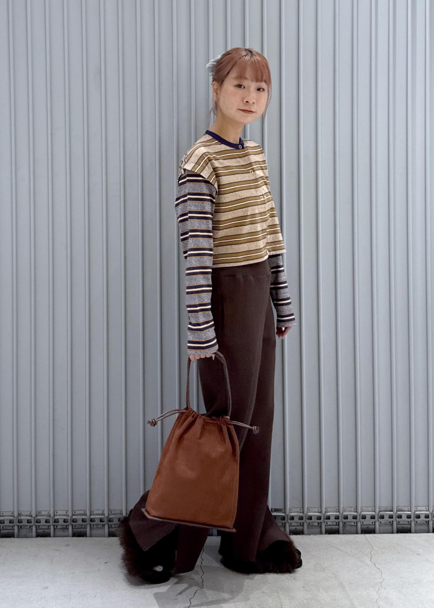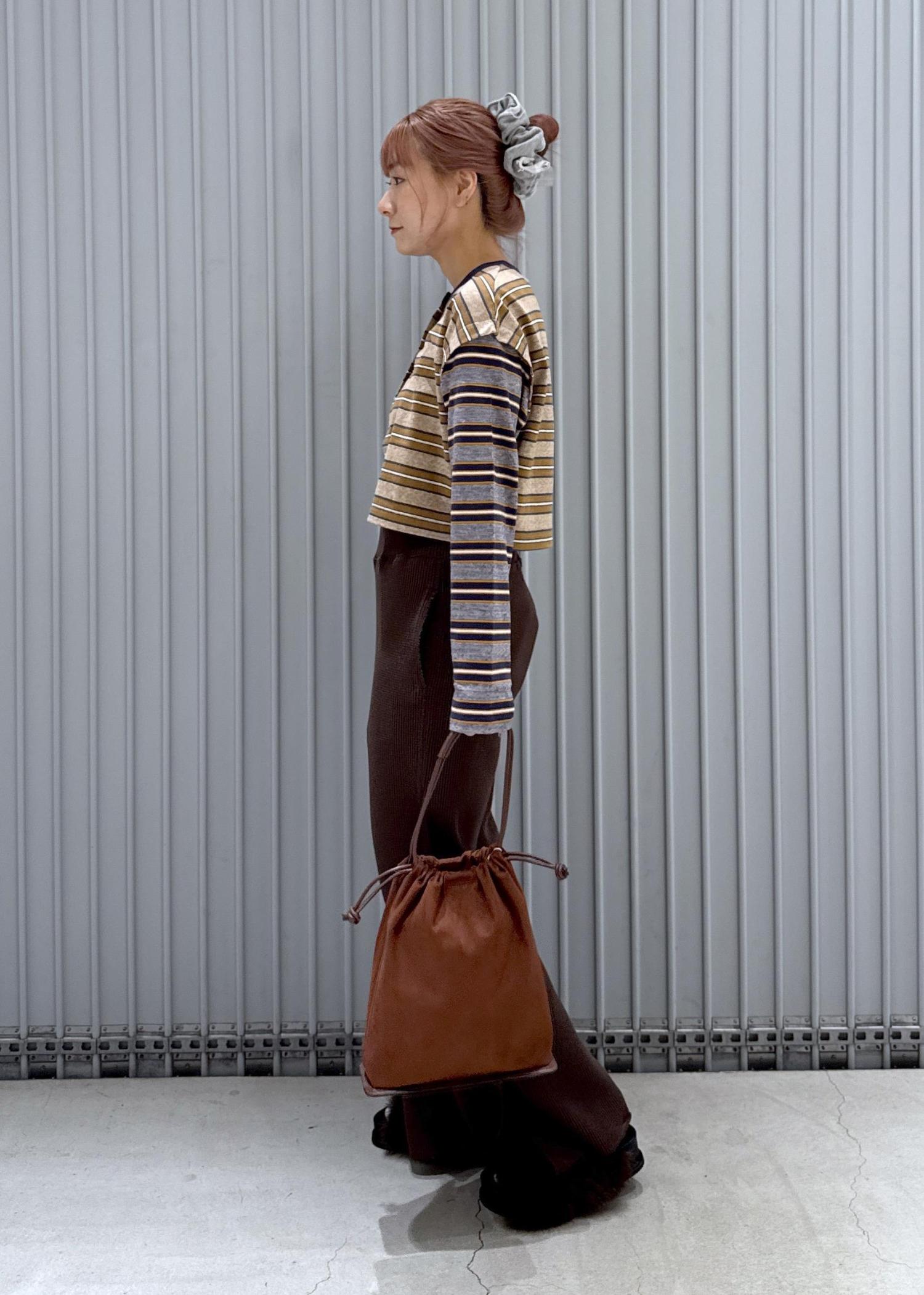 ADAM ET ROPÉ FEMME【サステナブル】アーティフシャルレザー巾着バッグレンガ / F¥13,860レビュー長財布も入る縦型です!