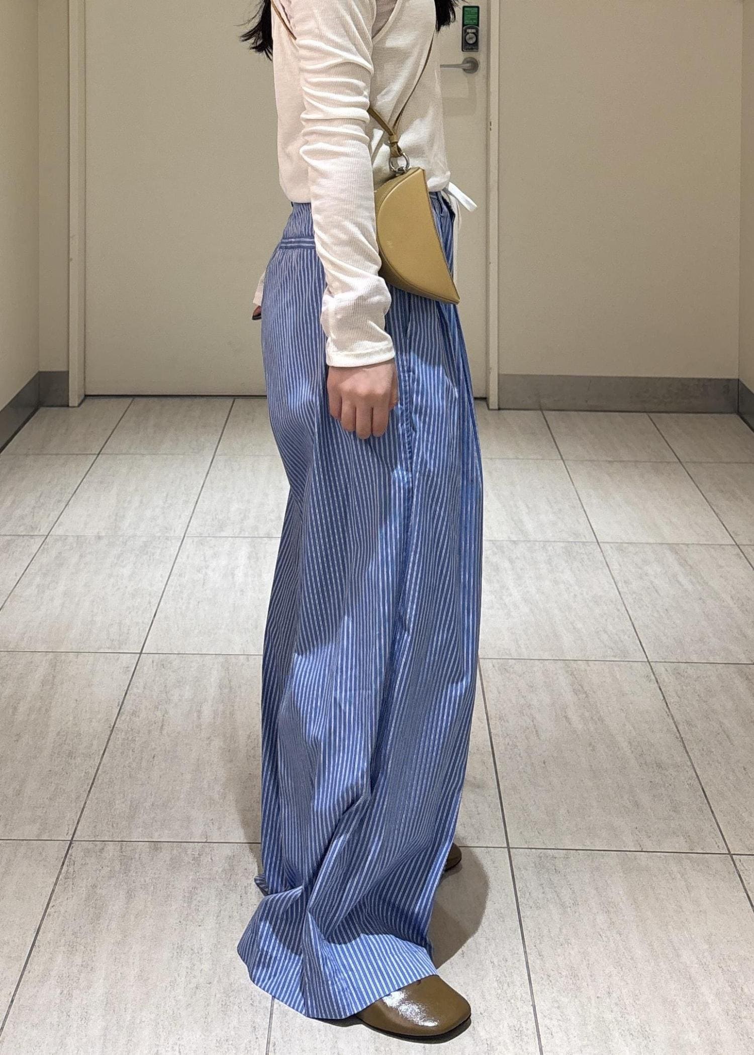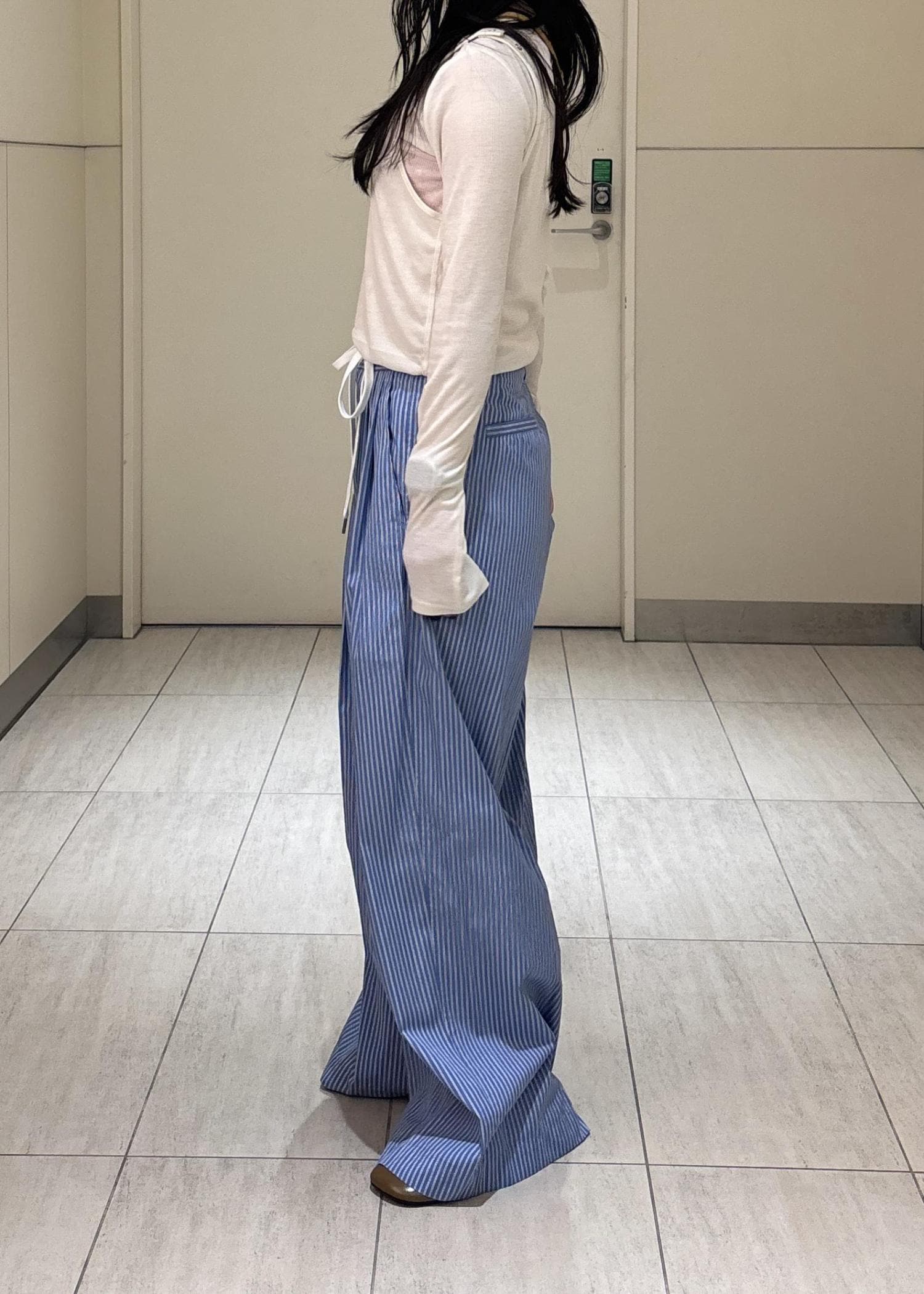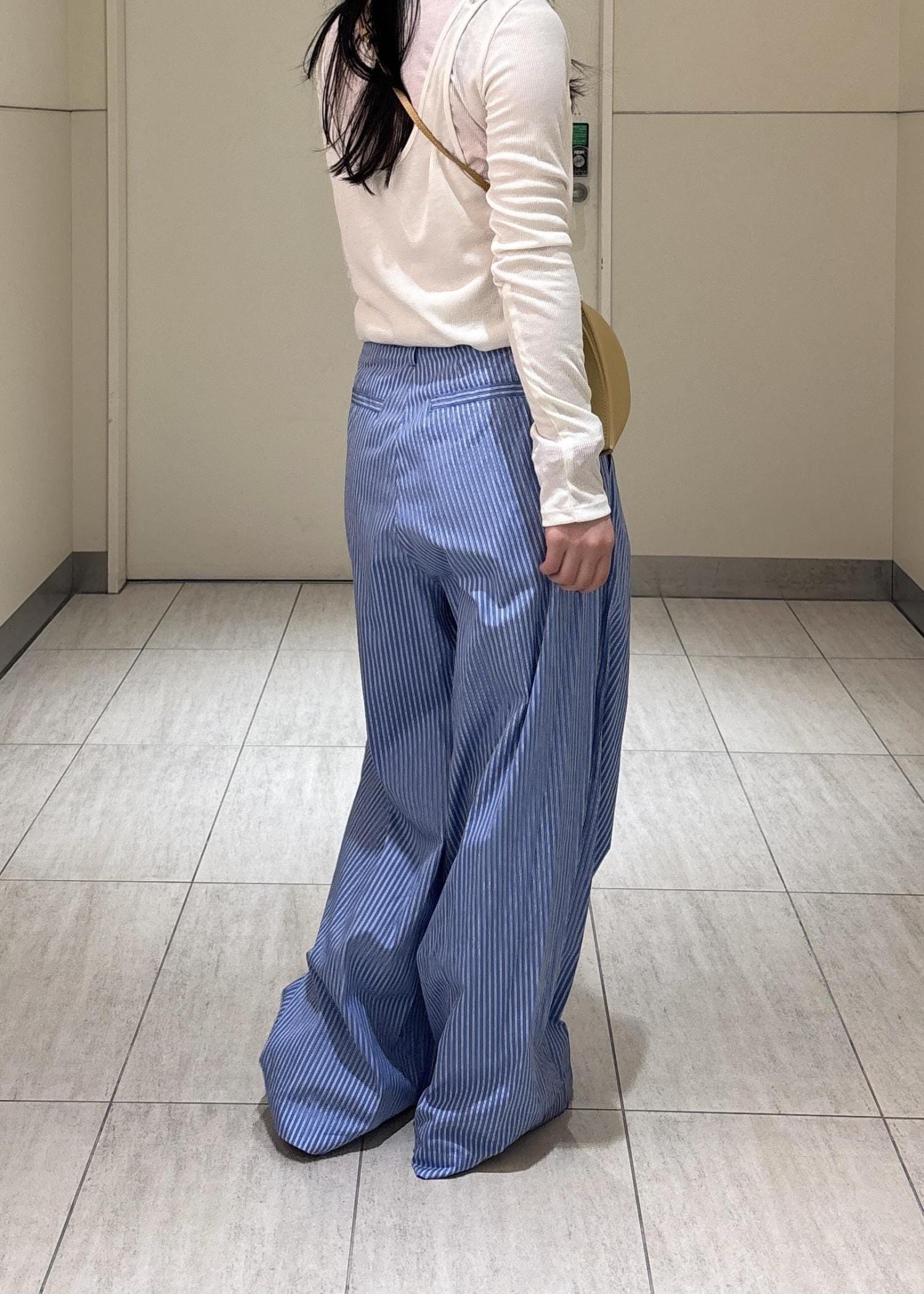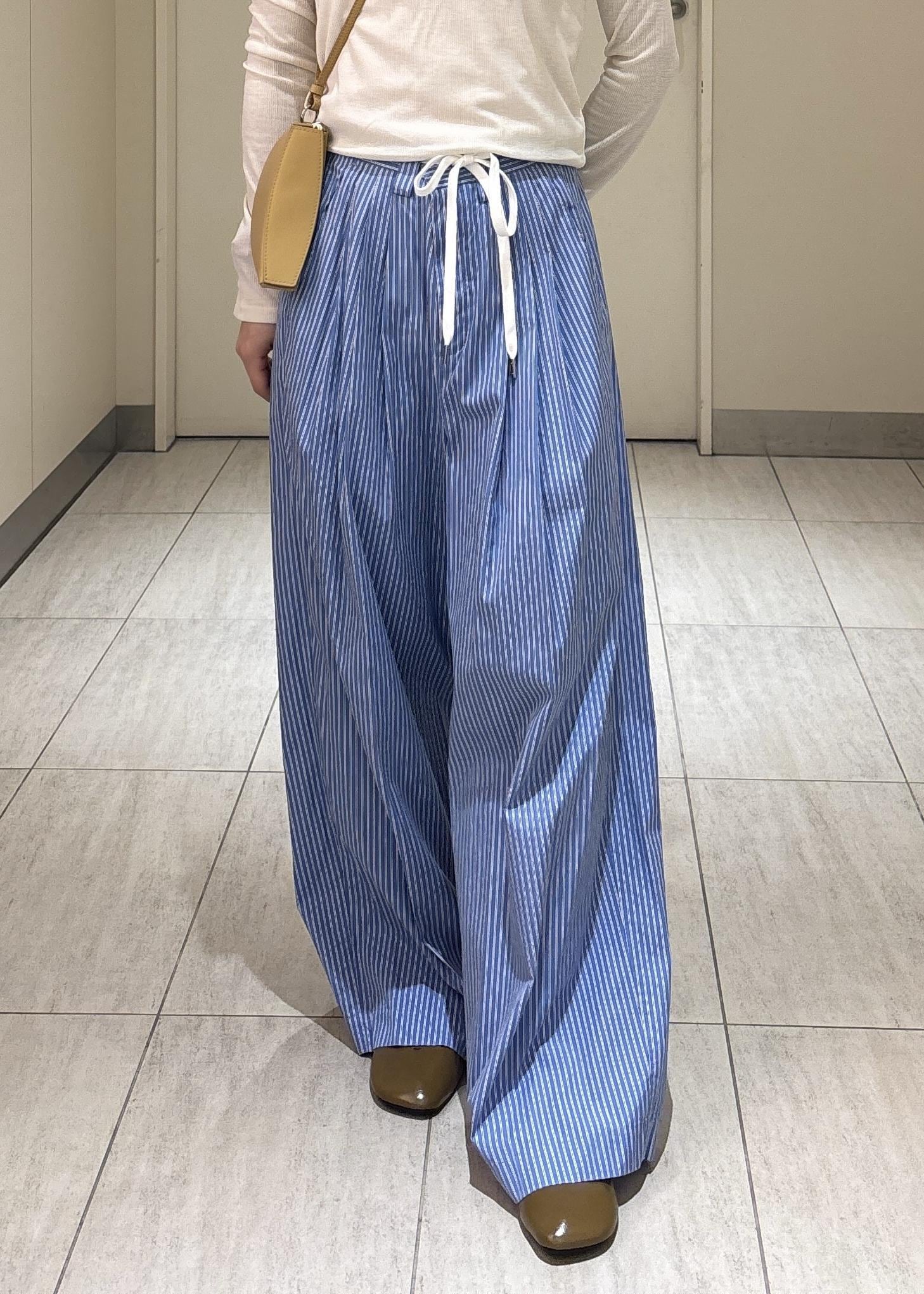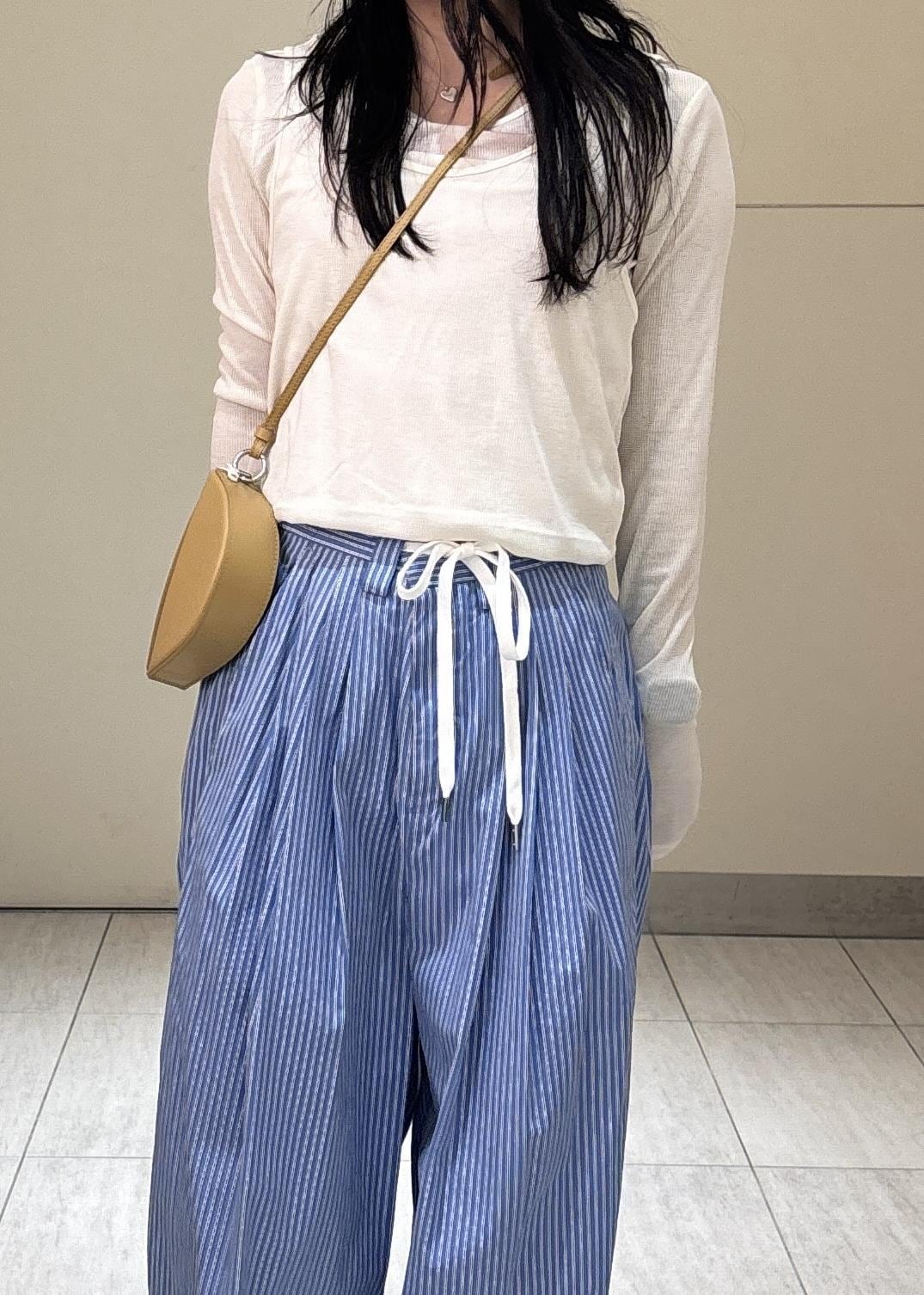ADAM ET ROPÉ FEMMEシャツスラックスサックス / 36¥25,850レビューシャツ素材のパンツです。156cmで36サイズを着用しておりますが、丈長めなのでヒールを履くと床につかないくらいの長さです。ウエスト部分は紐で調整可能です!