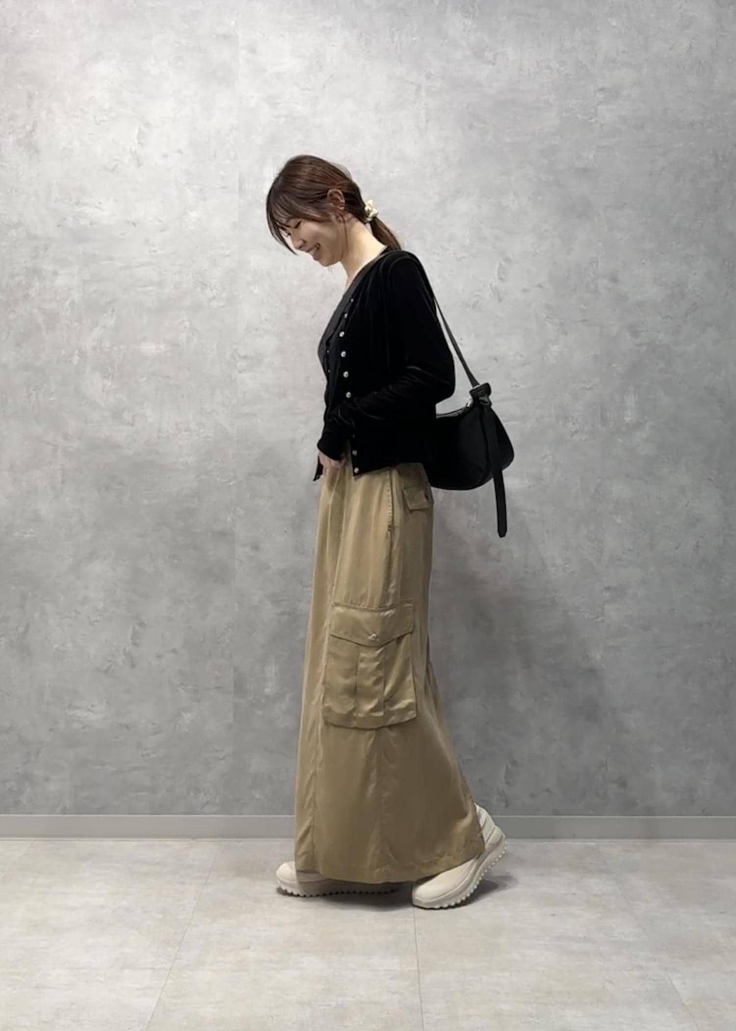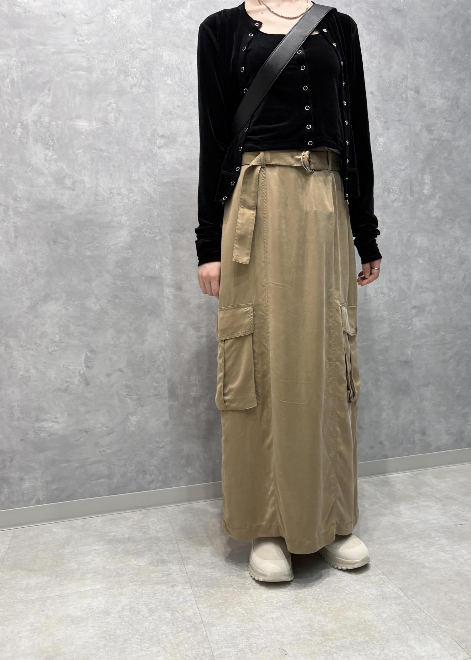 スカートも同じく新作アイテム。カジュアルなデザインですが素材に光沢感があり落ち感のある作りなので女性らしく着用していただけます^ ^