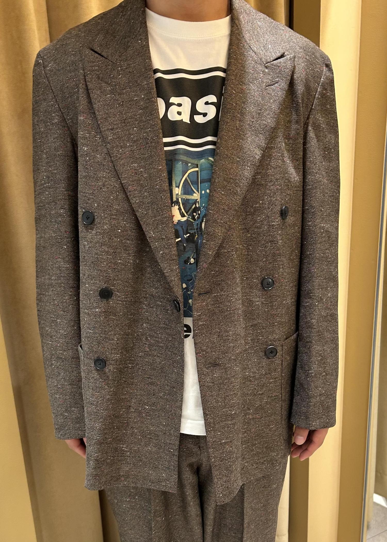 ADAM ET ROPÉ HOMMEハードクロス ダブルブレストジャケット / セットアップ対応ダークブラウン系 / M¥52,800レビュー高級感と上品さが特徴のジャケットです。サイズ感は手の甲がかかるくらいで身幅もゆとりがあります。ピークドラペルがエレガントな雰囲気を演出してくれます。
