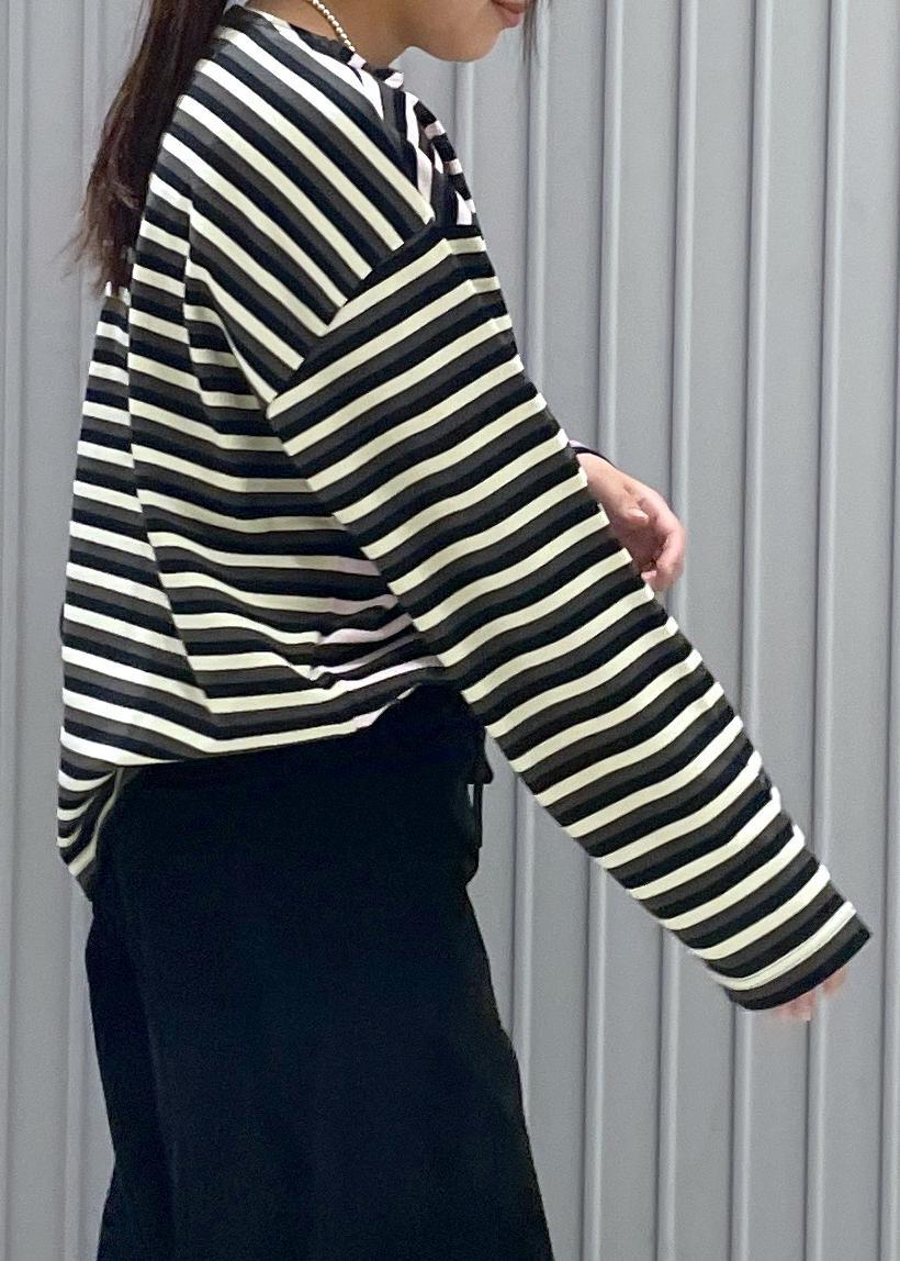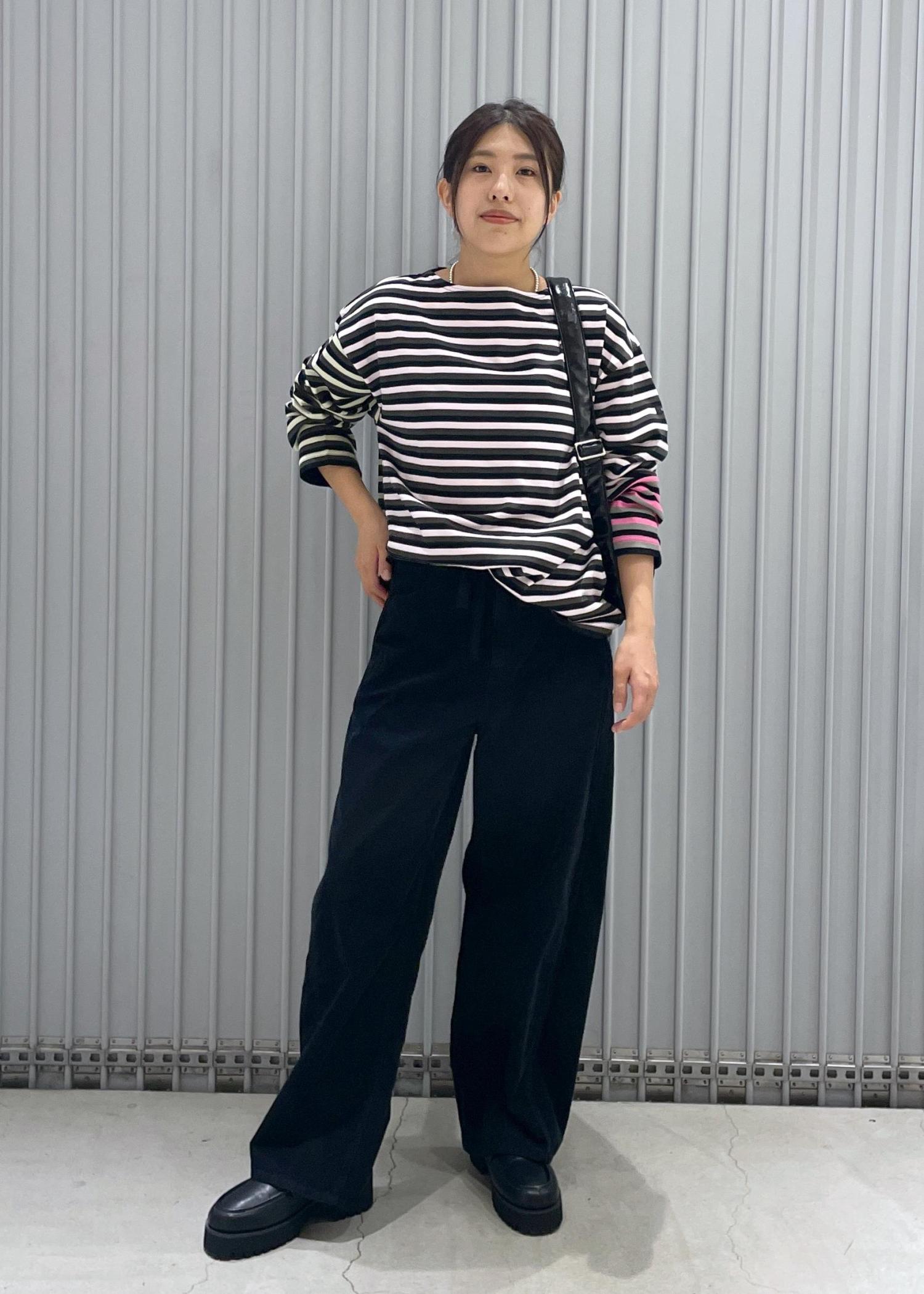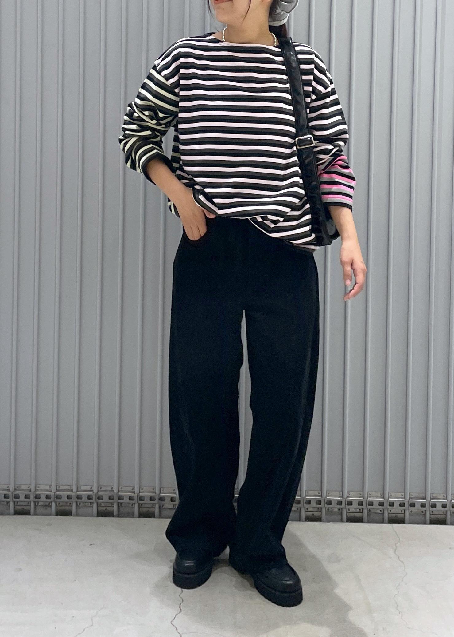ボートネックなのでシャツをレイヤードできても良さそうです。