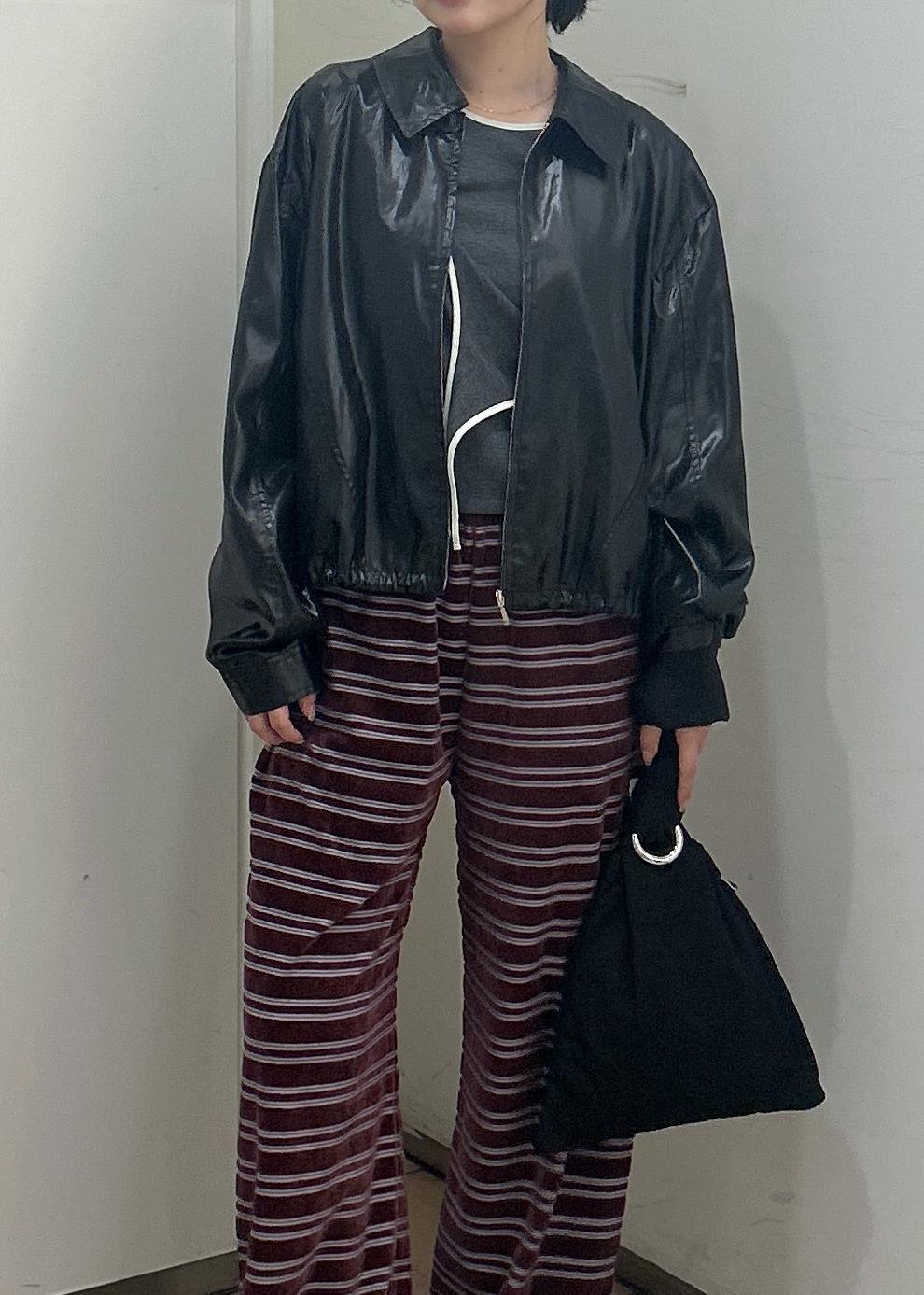 ADAM ET ROPÉ FEMMEレザーライクサテンブルゾンブラック / F¥15,840レビュー薄手のためとても軽く持ち運びもしやすいです。